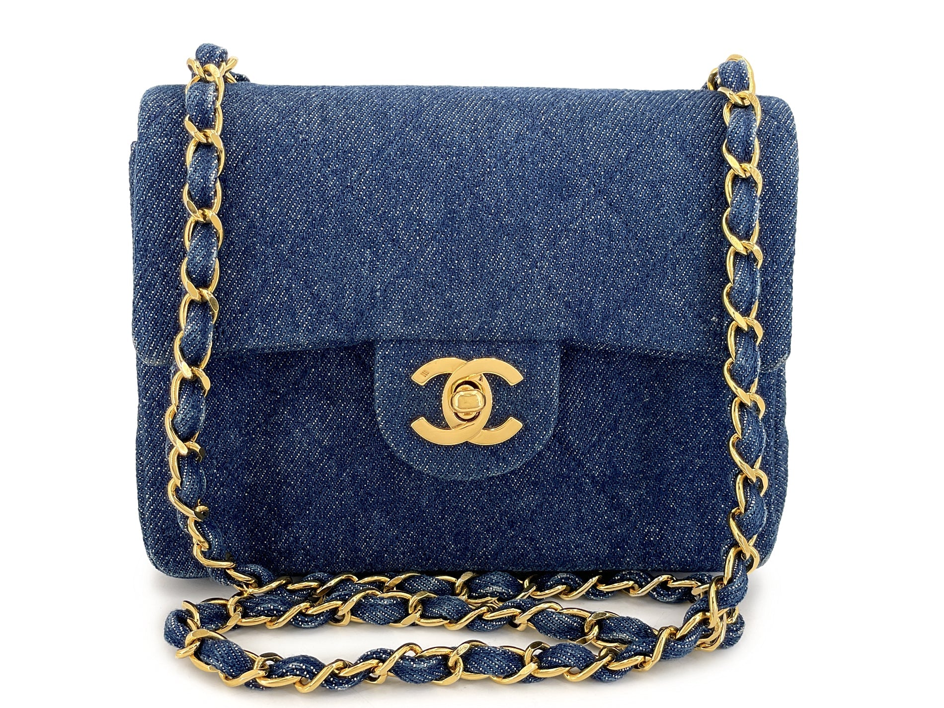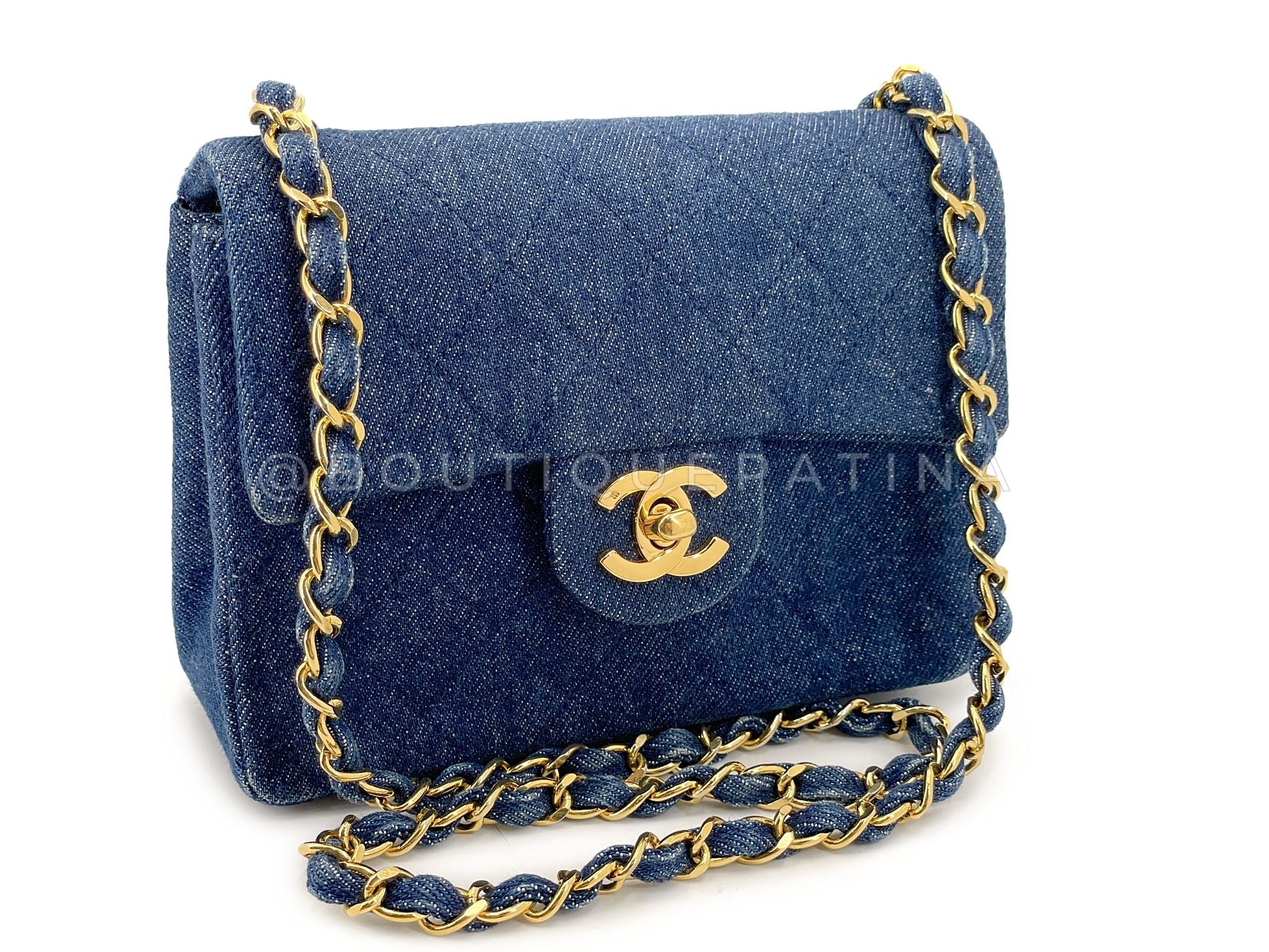 Chanel 1990 Vintage Denim Square Mini Flap Bag 24k GHW OL2