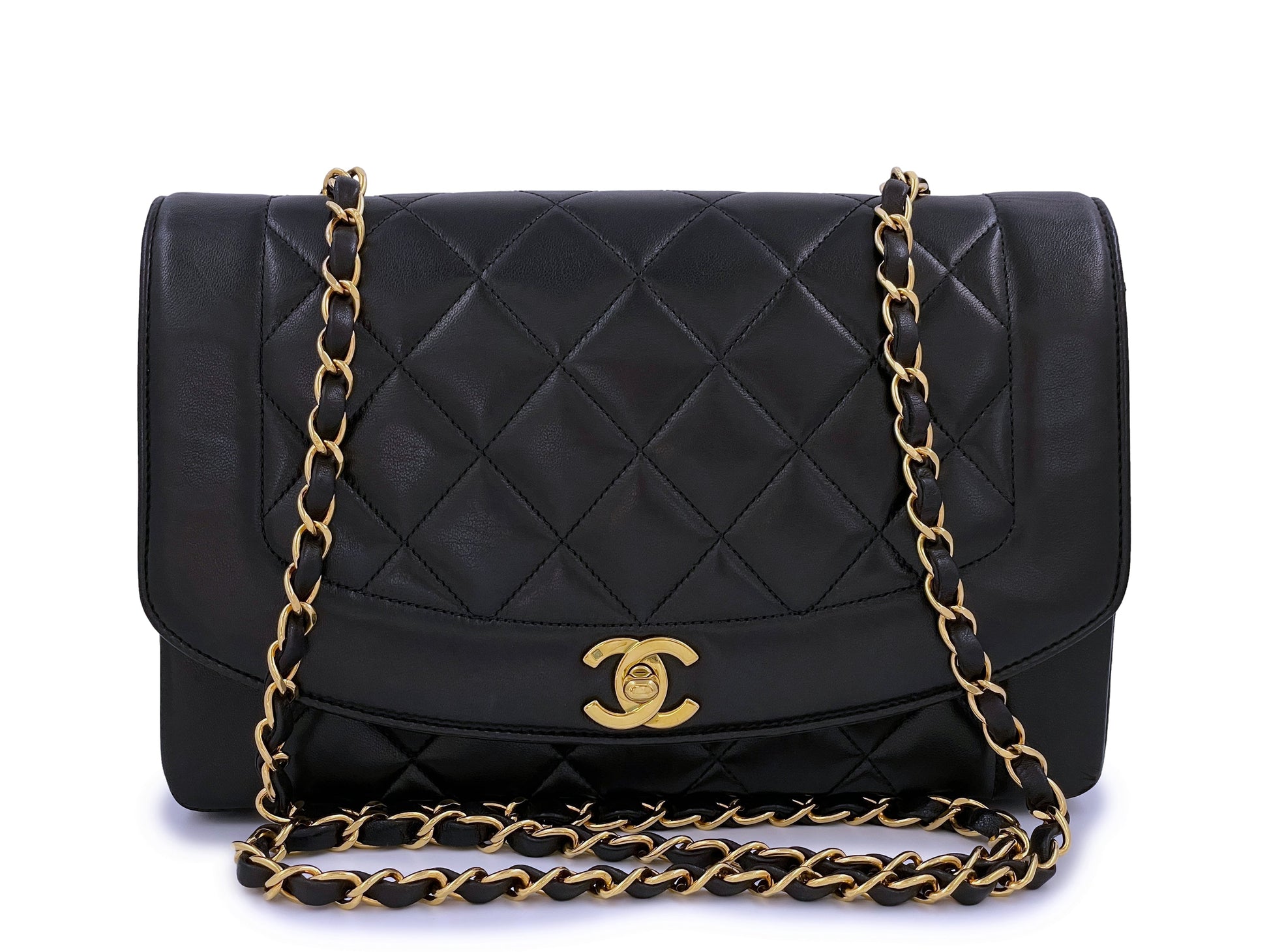Chanel 1991 Vintage Black Classic Medium Diana Flap Bag 24k GHW Lambskin