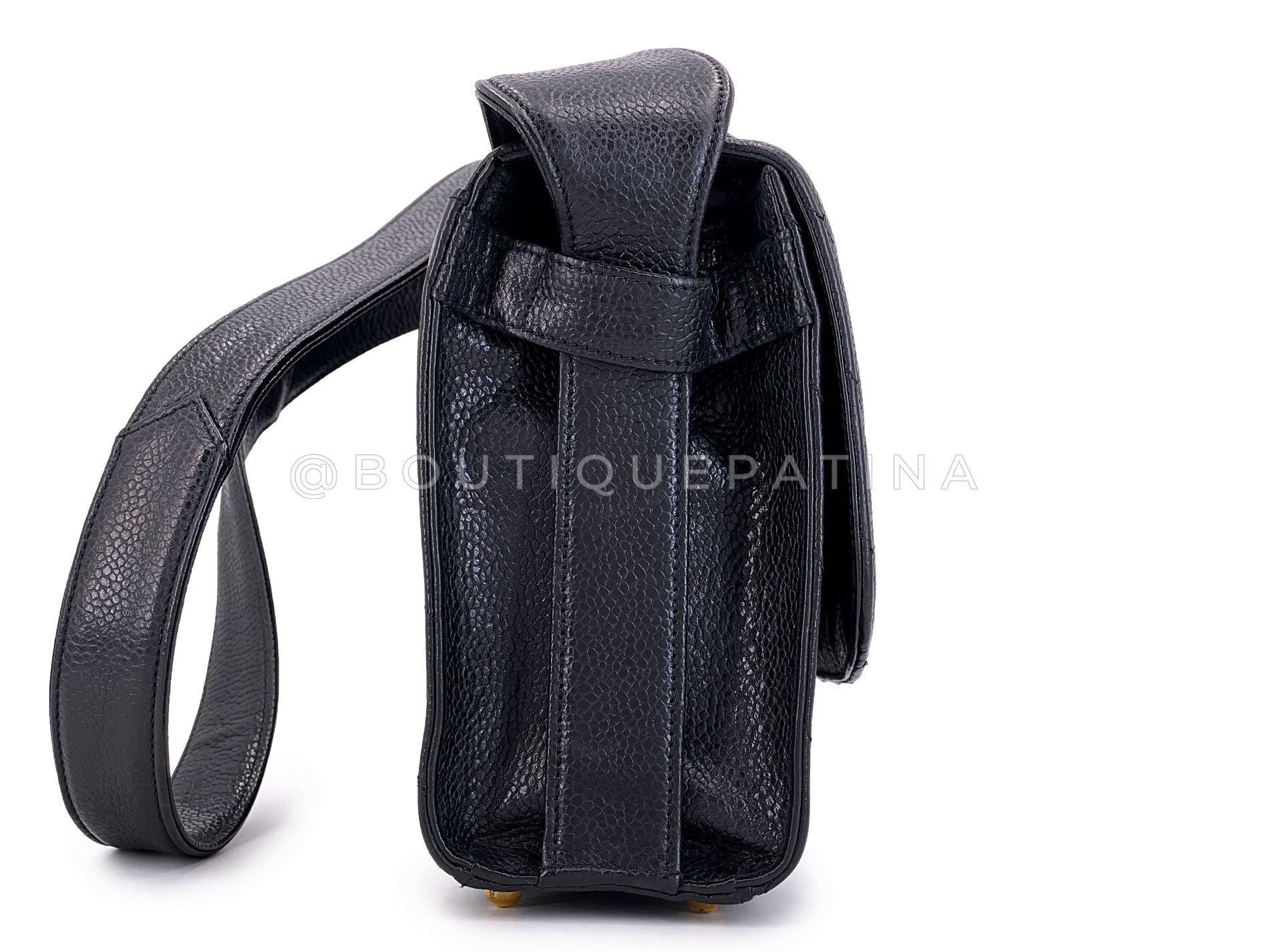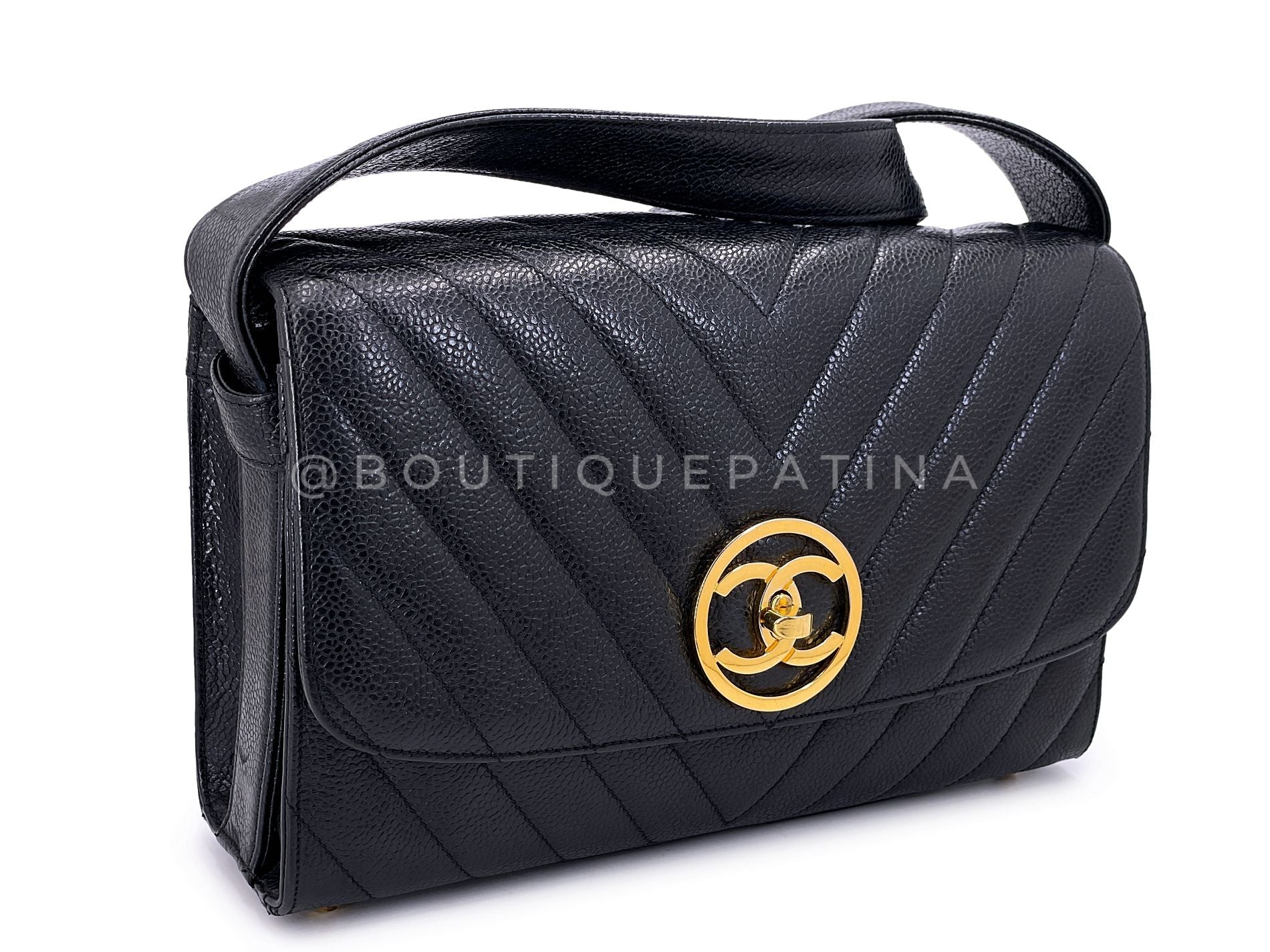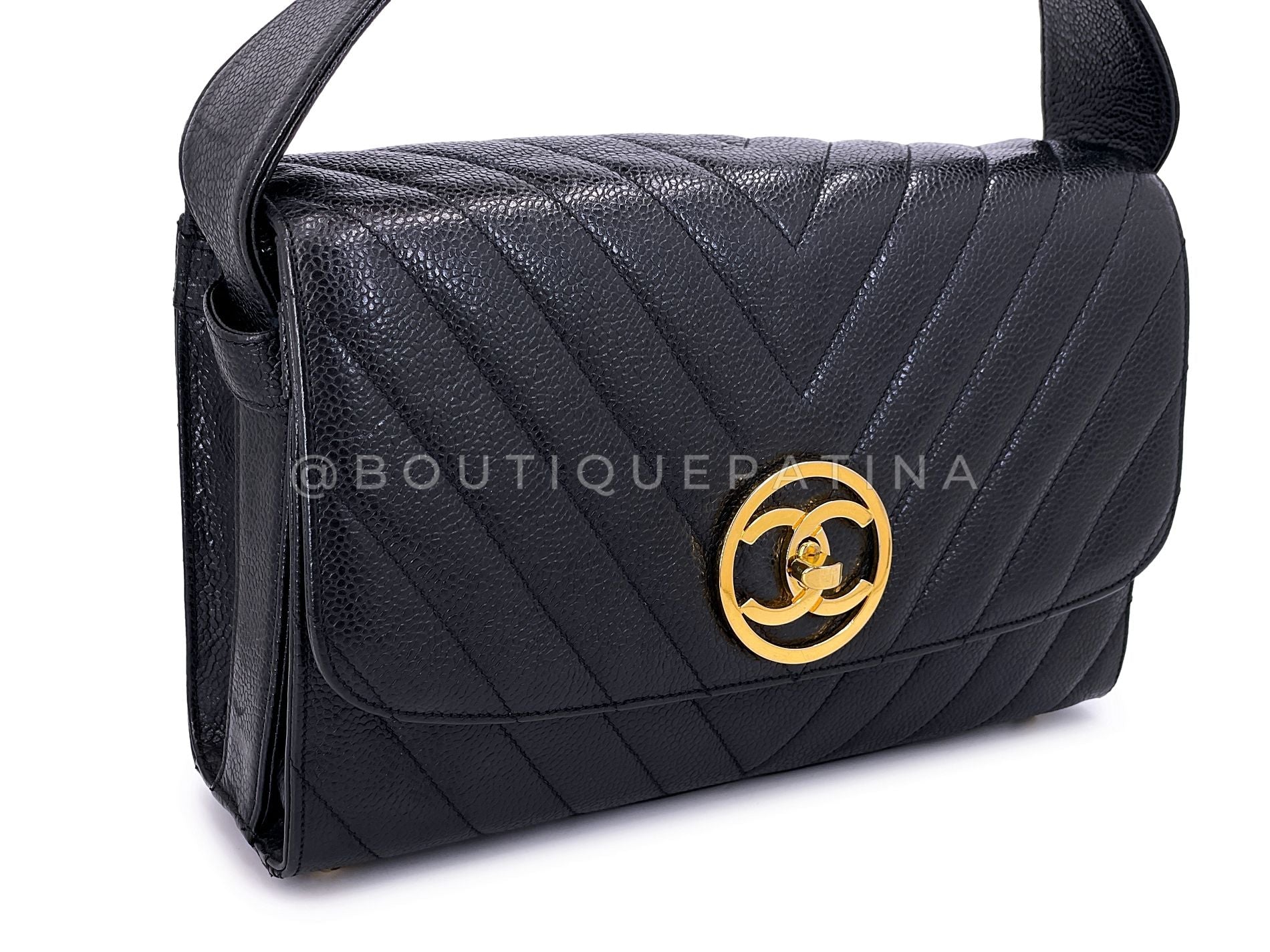 Chanel 1992 Black Vintage Chevron Caviar Encircled CC Flap Bag 24k GHW 2XV