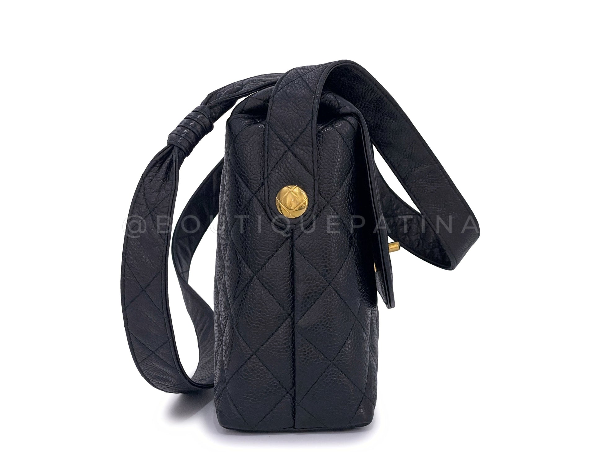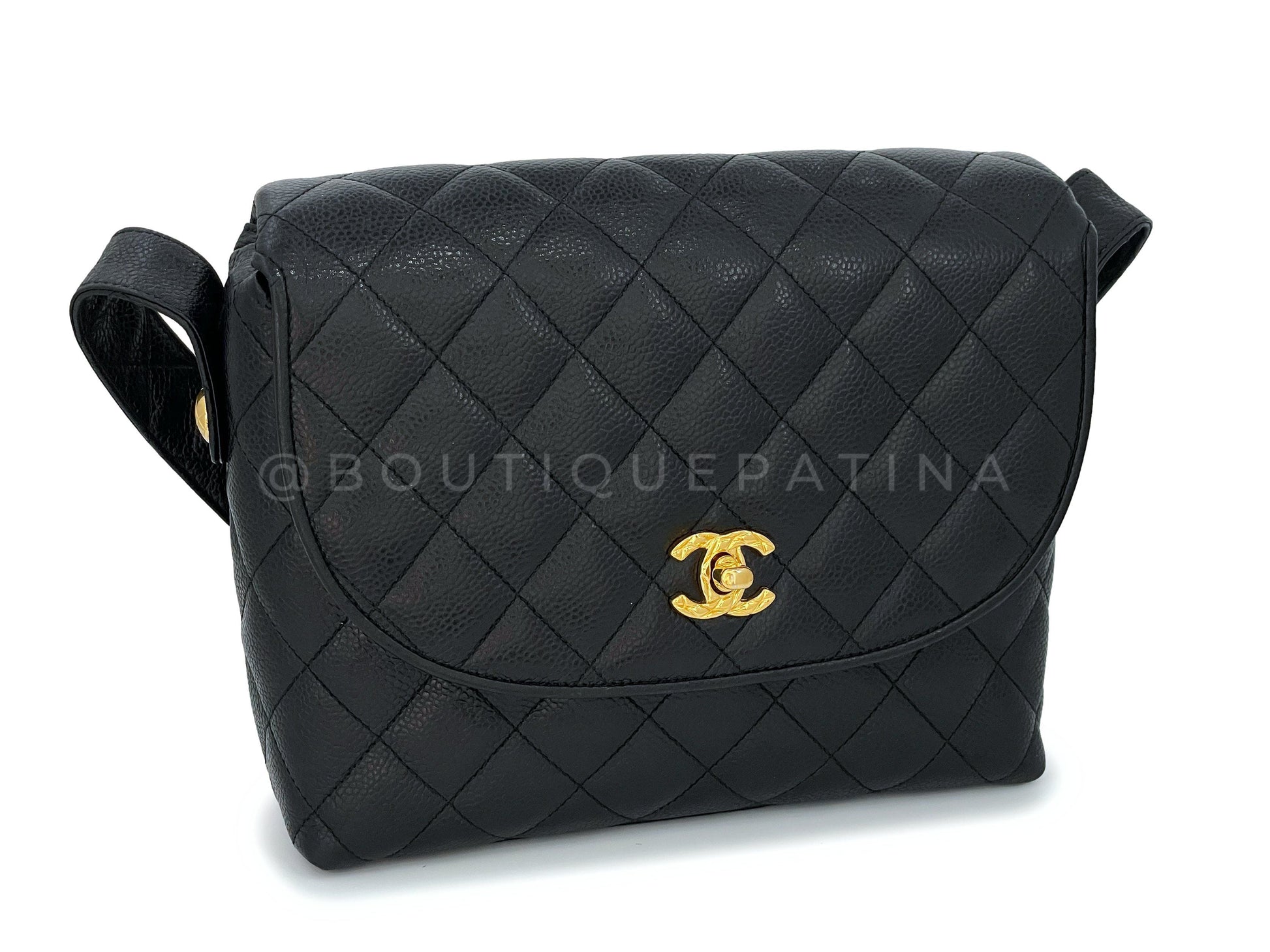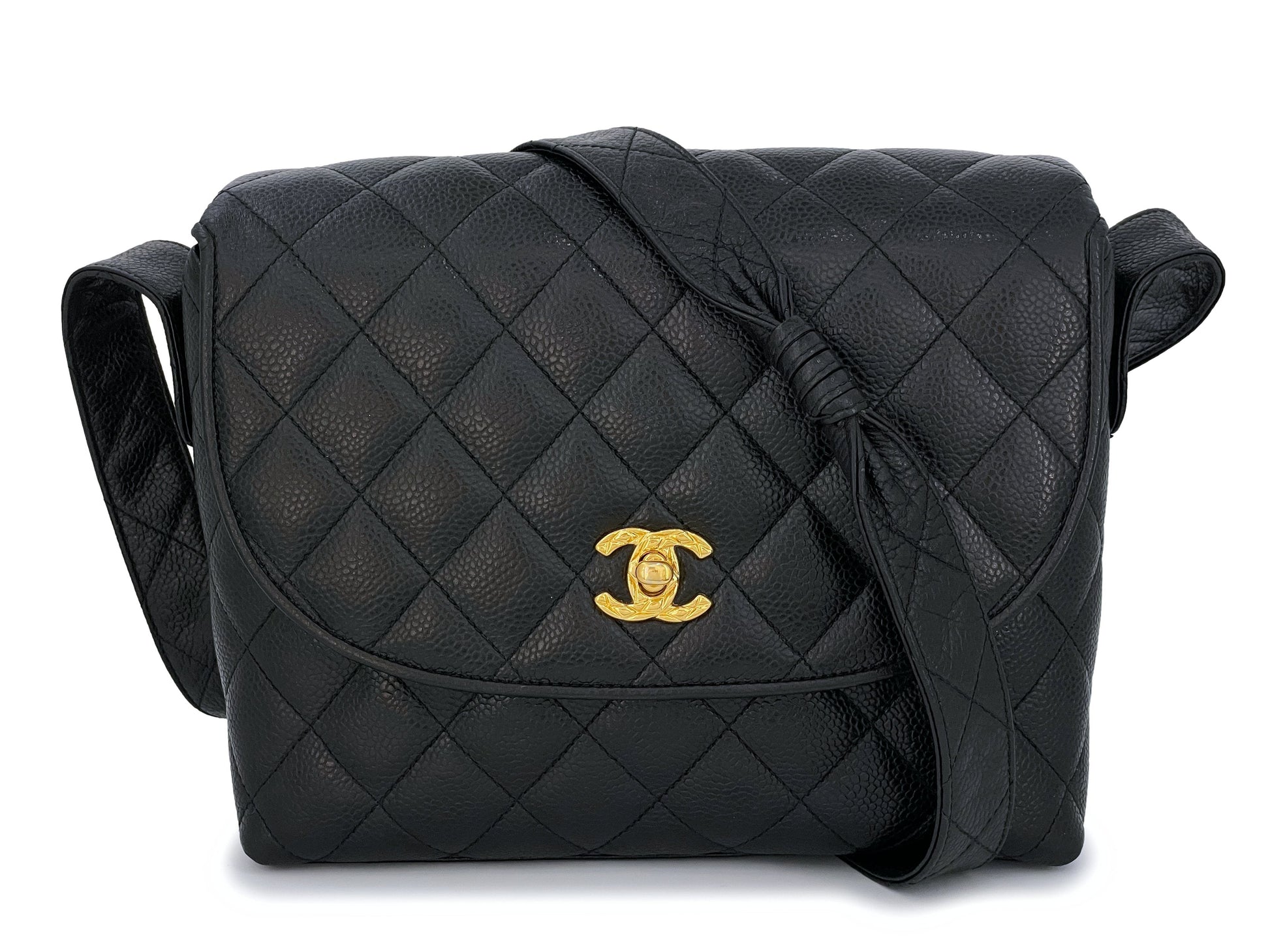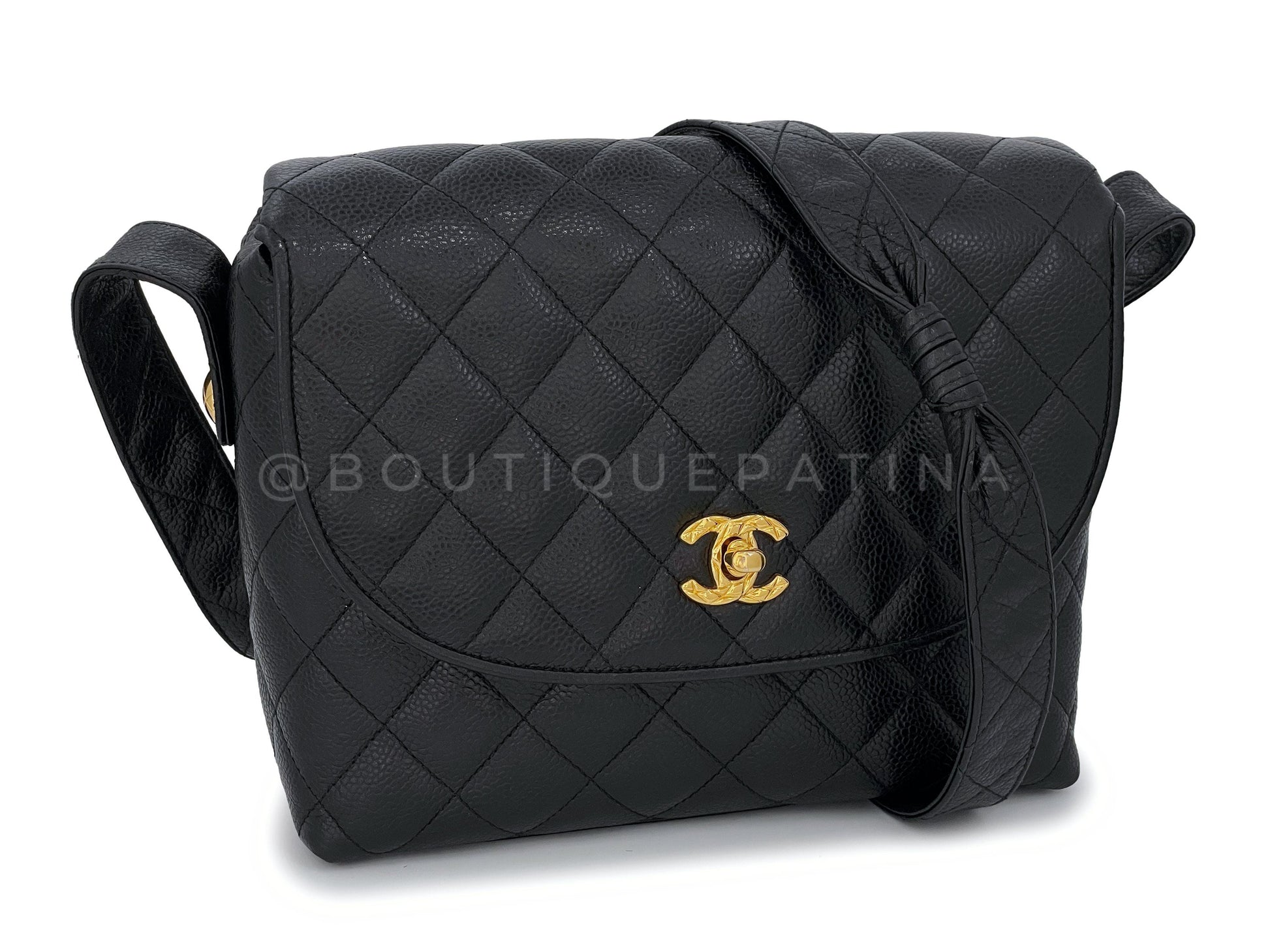 Chanel 1994 Vintage Black Caviar Etched CC Messenger Flap Bag 24k GHW