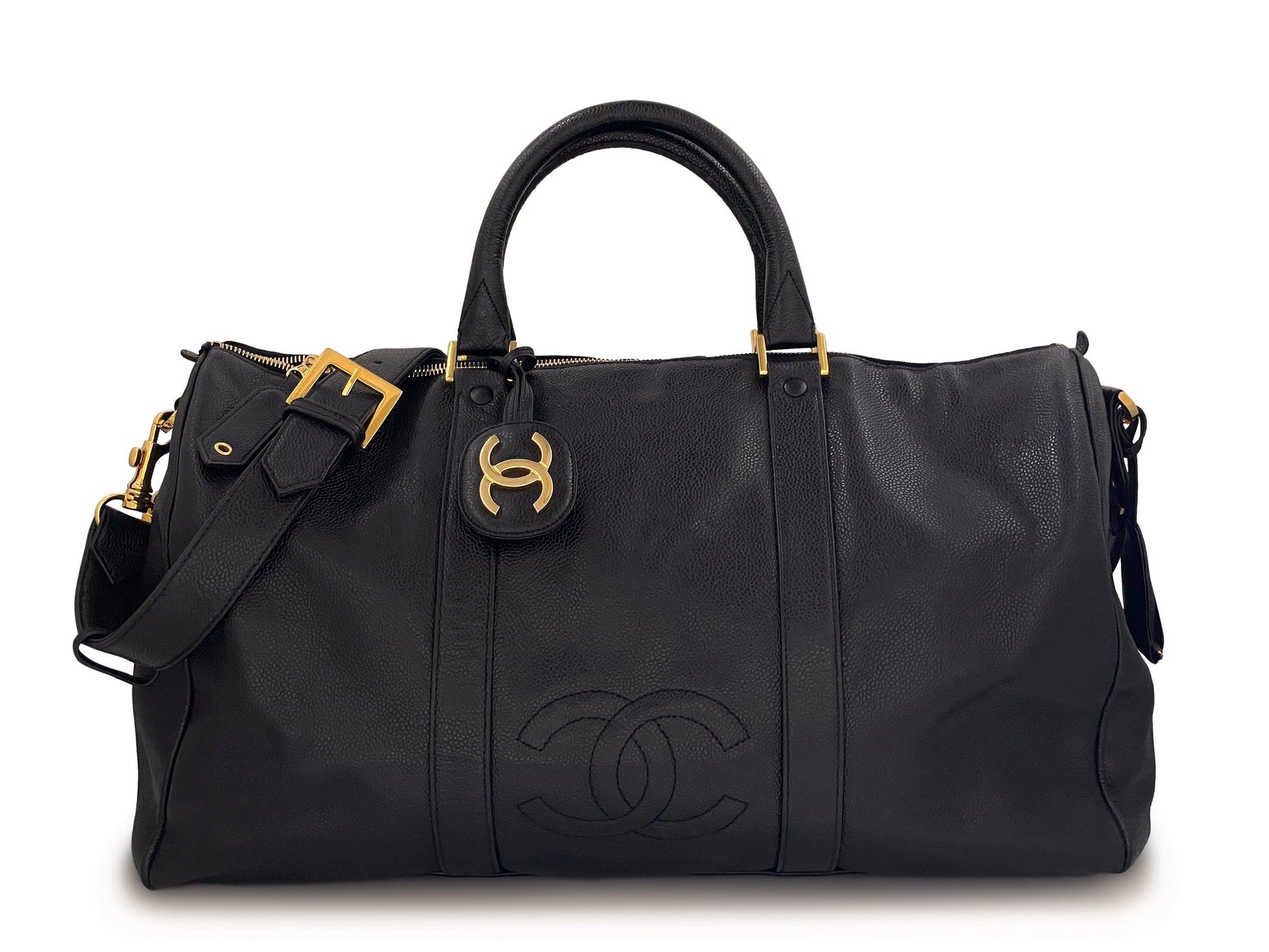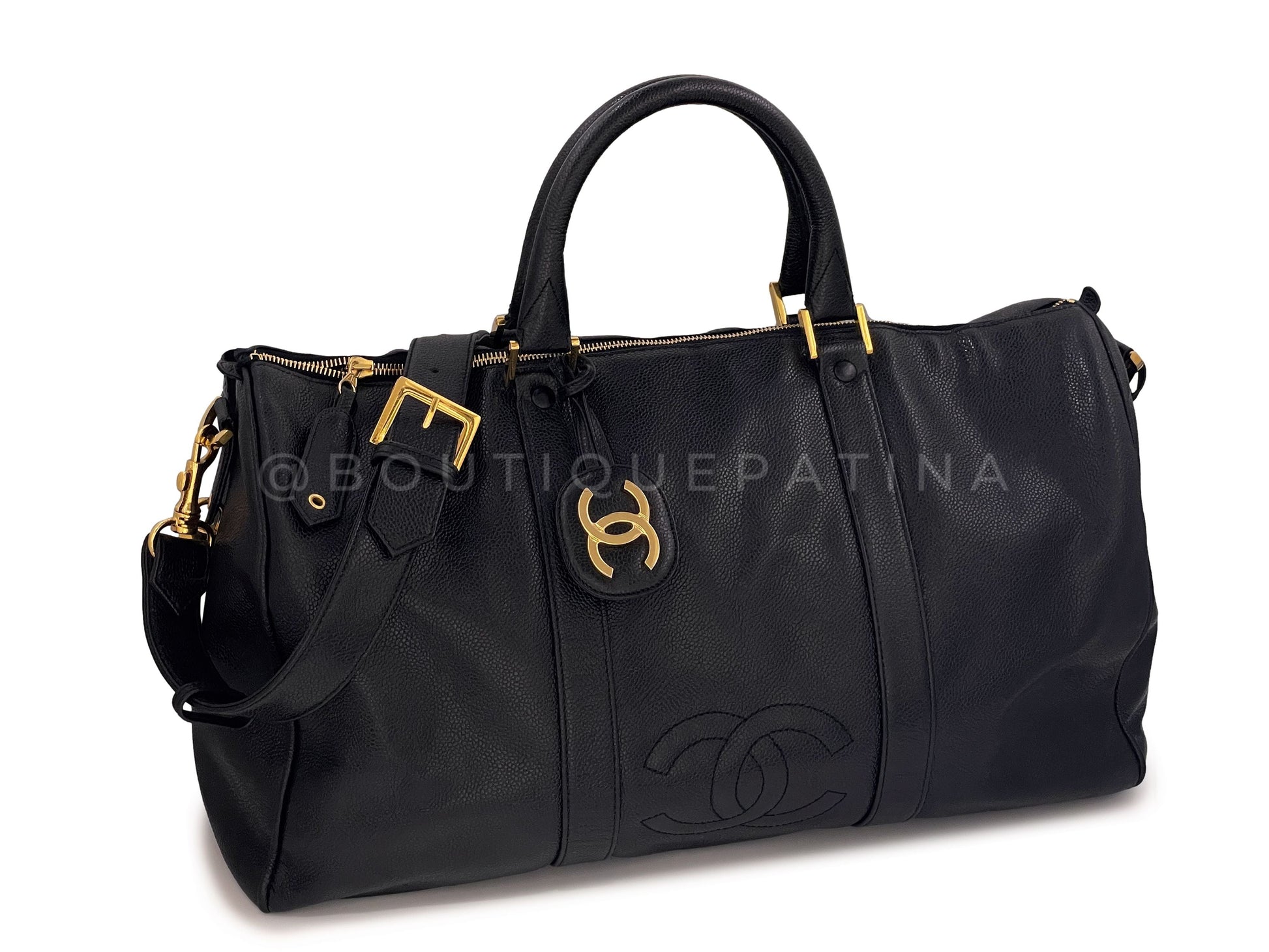Chanel 1994 Vintage Black Caviar Large Duffle Duffel Bag Weekender