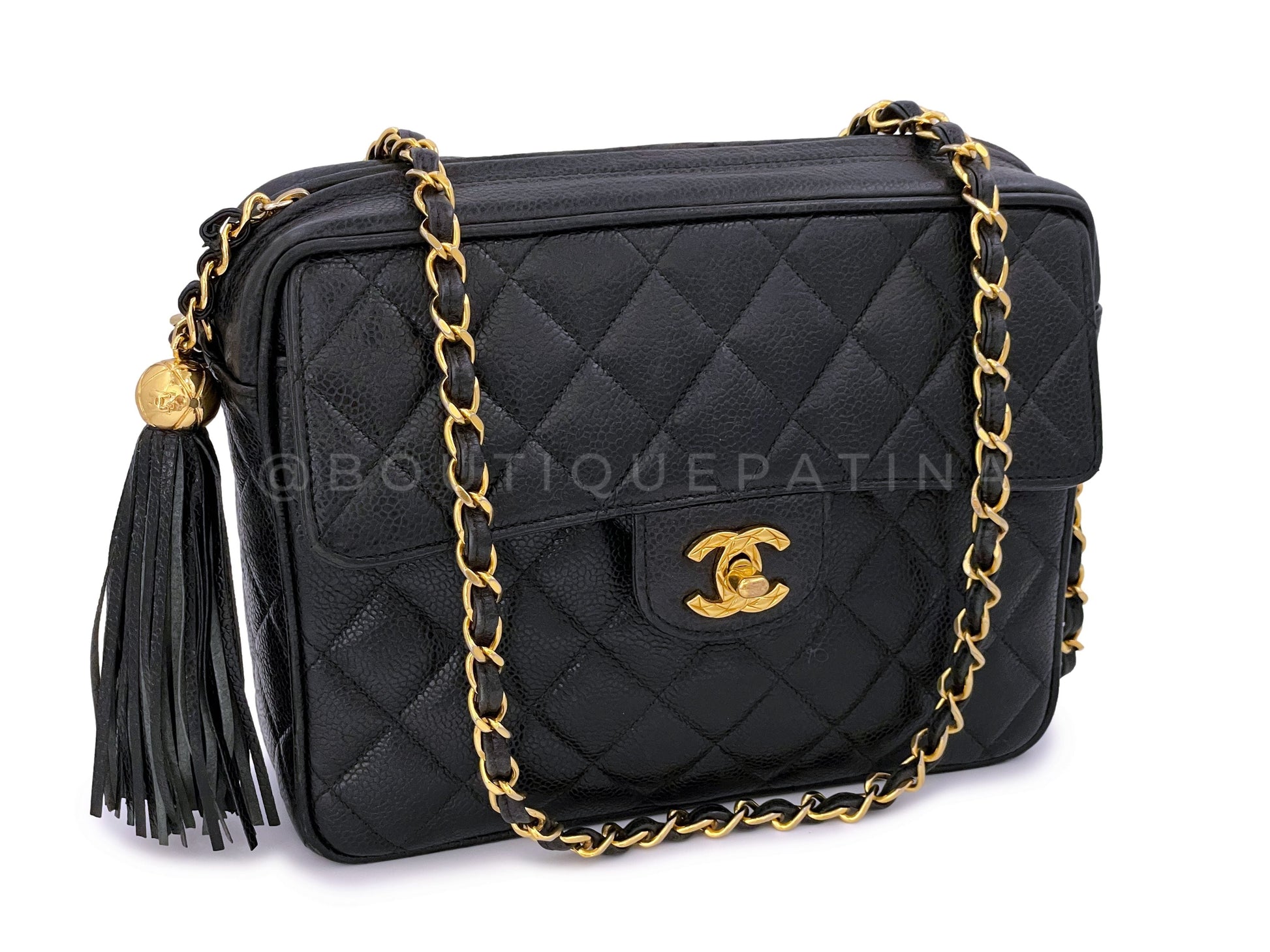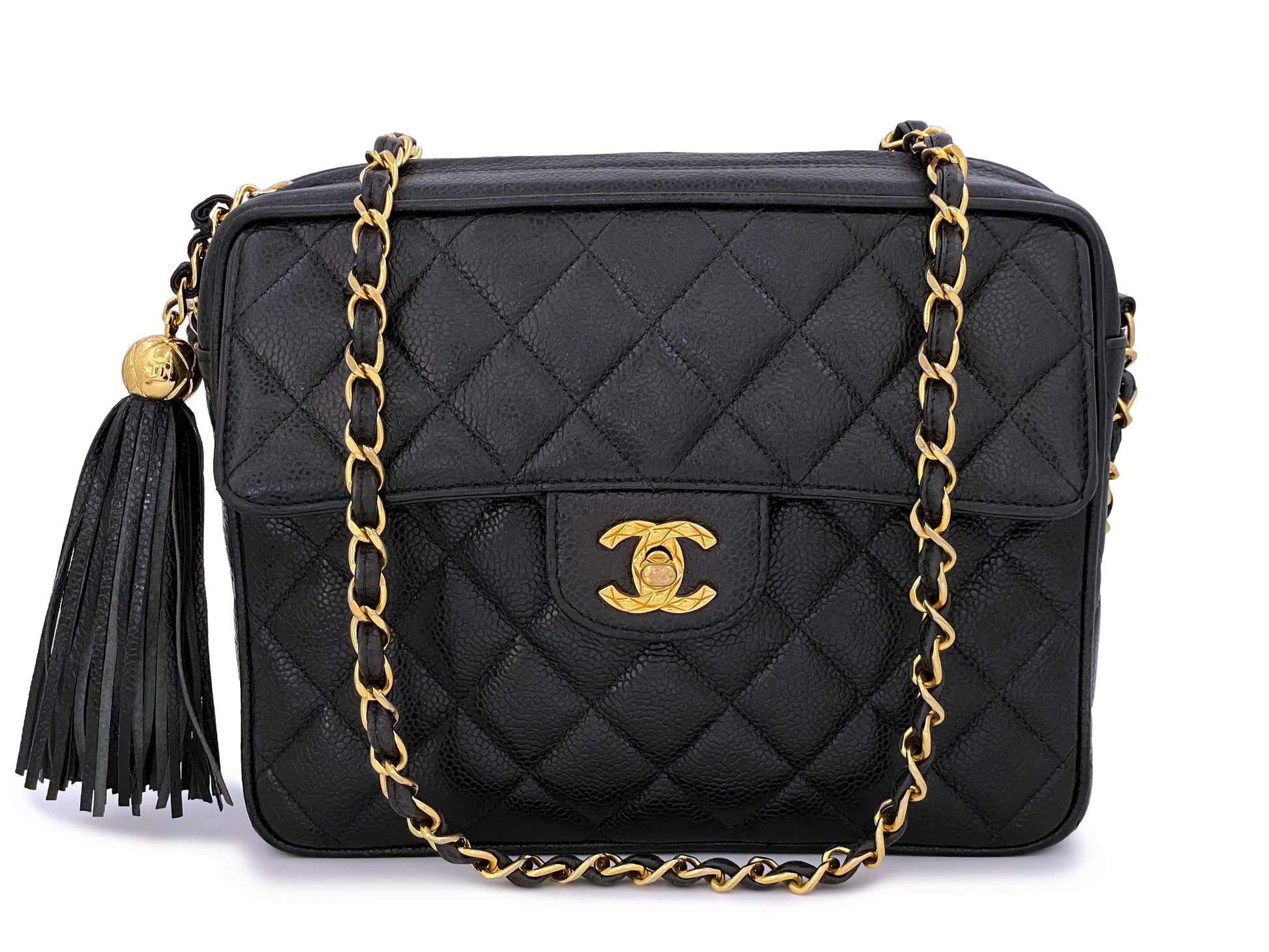 Chanel 1994 Vintage Black Caviar Small Flap Camera Case Bag 24k GHW
