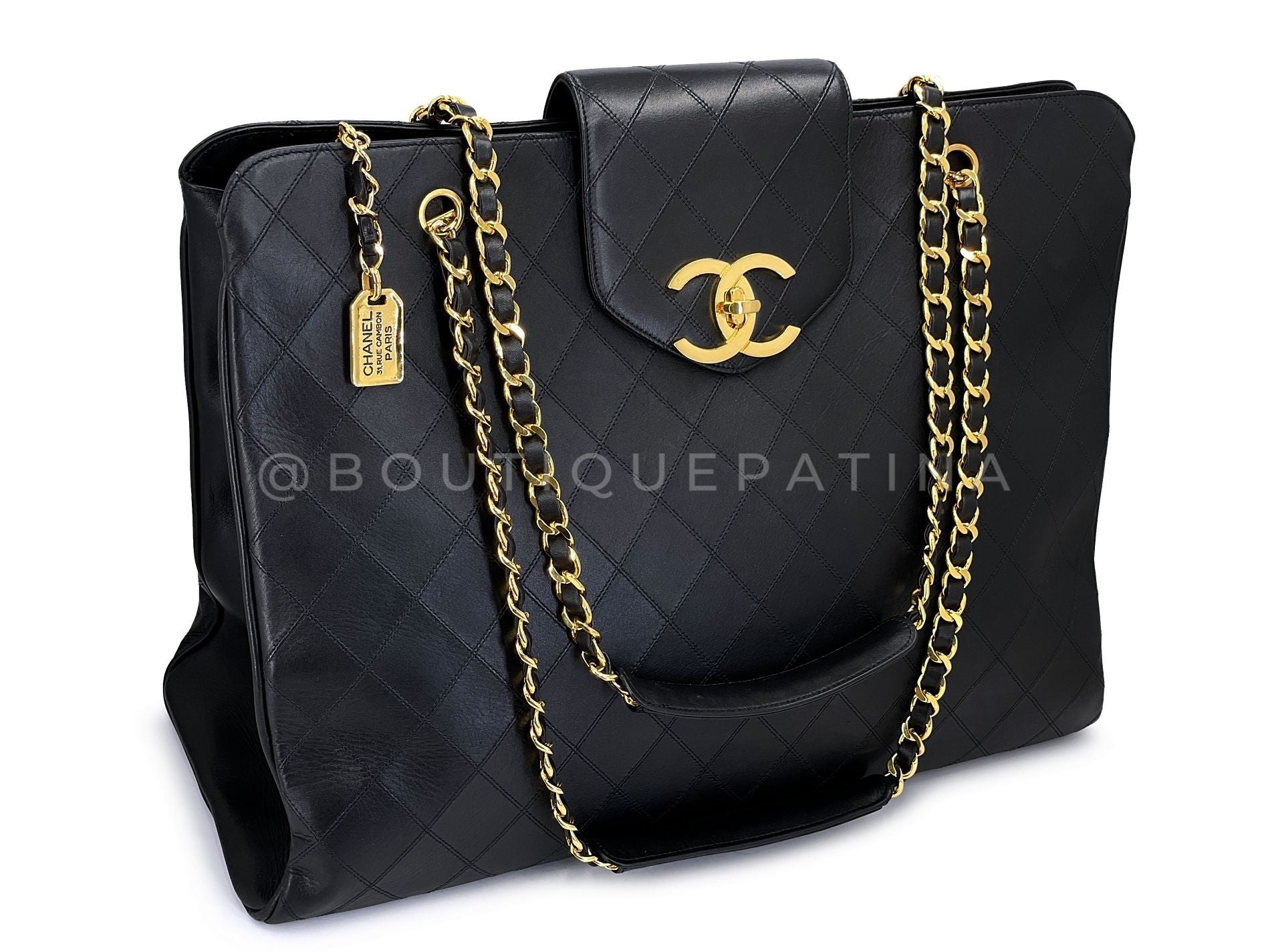 Chanel 1994 Vintage Black Quilted Supermodel XL Weekender Tote Bag 24k GHW WR2