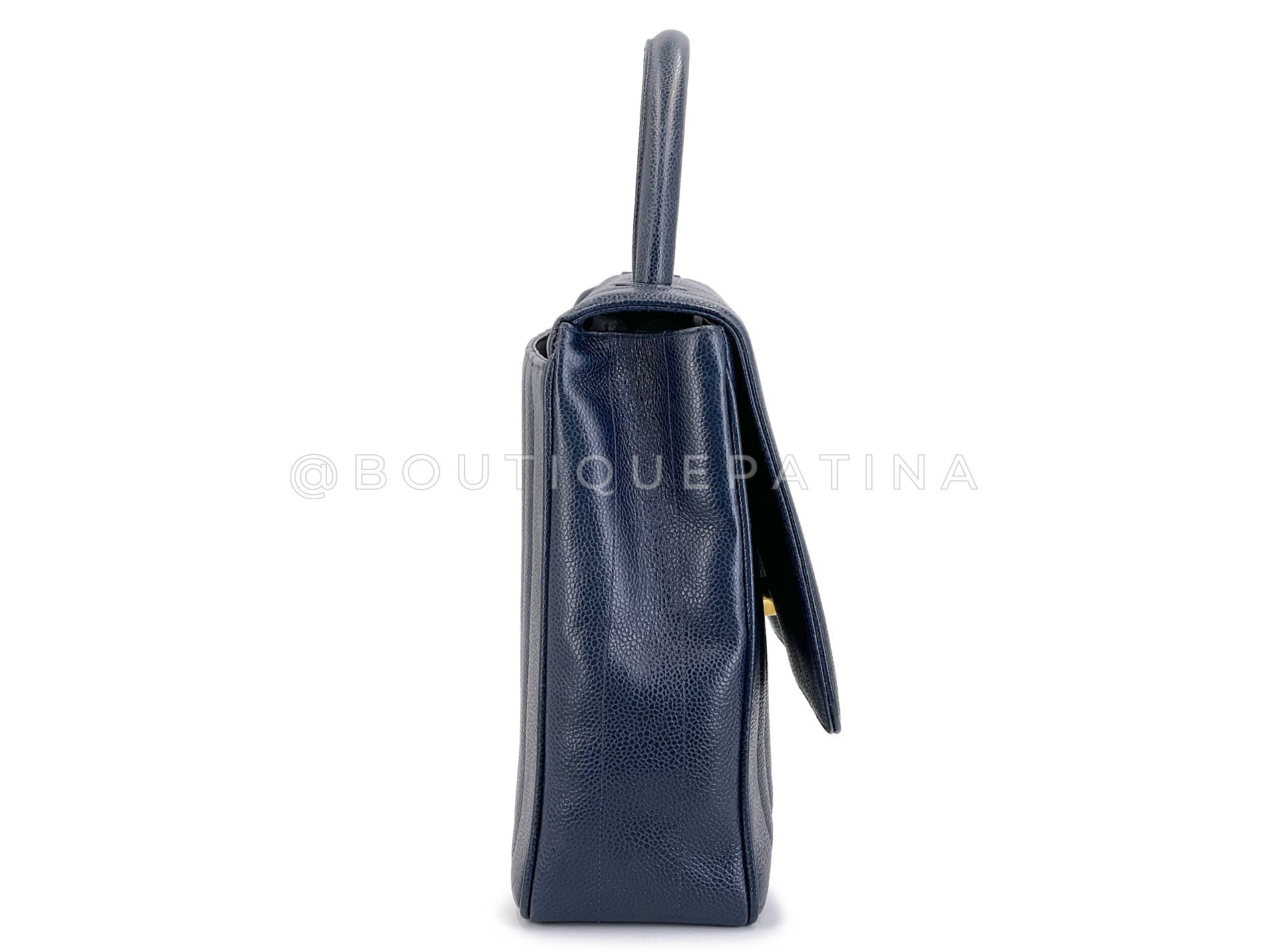 Chanel 1994 Vintage Navy Blue-Black Caviar Jumbo Logo Mademoiselle Kelly Bag 24k GHW JWT