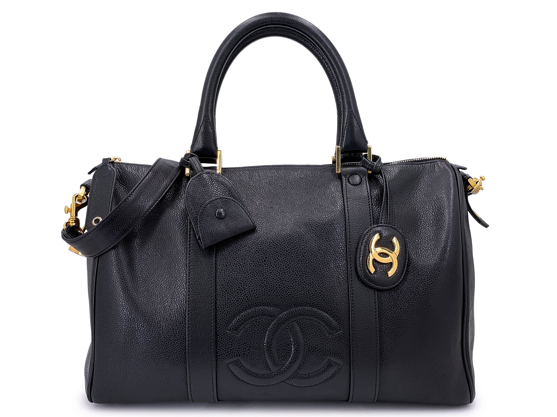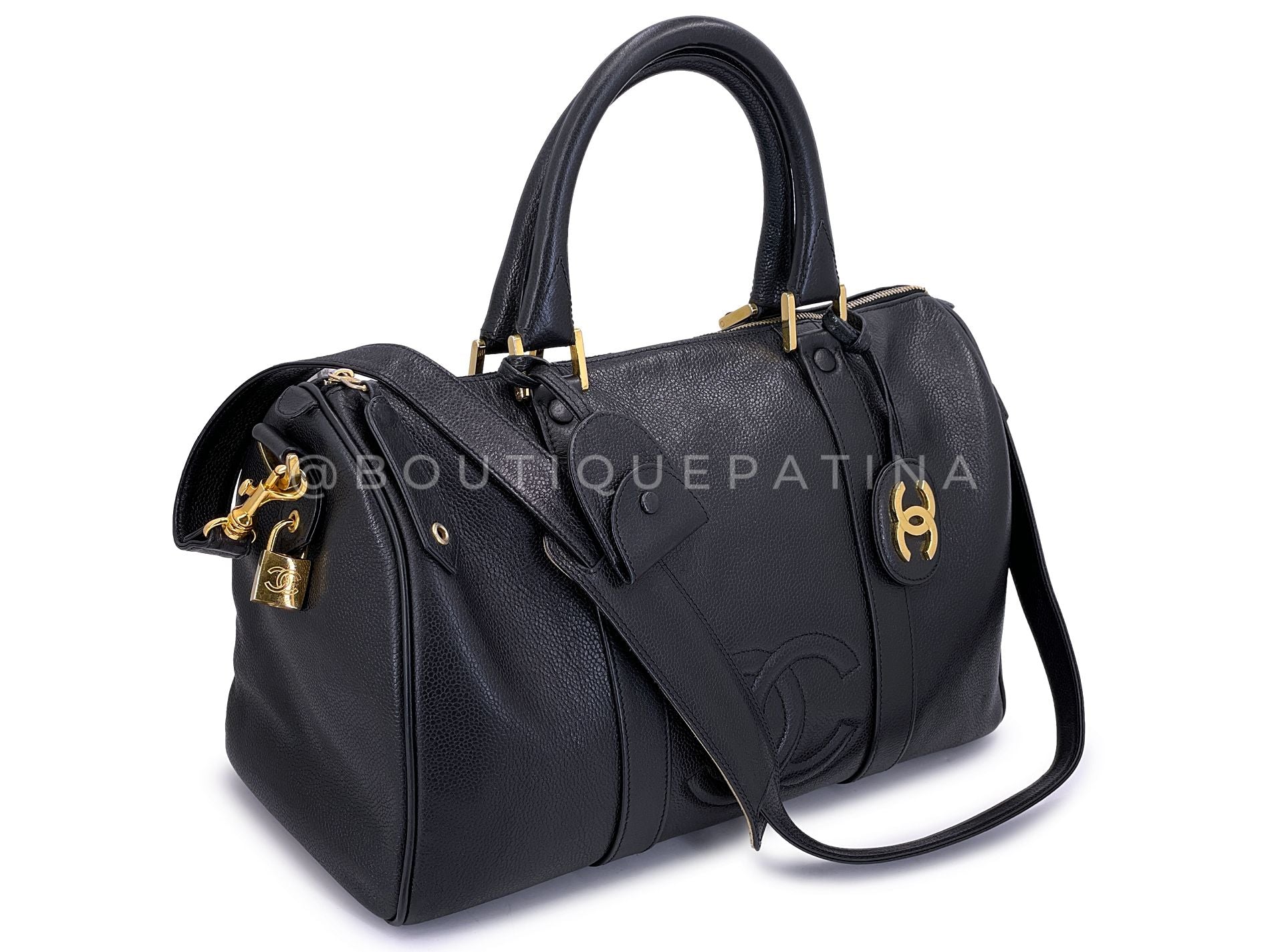 Chanel 1996 Vintage Black Caviar Duffle Duffel Bowler Bag Small 24k GHW OHL