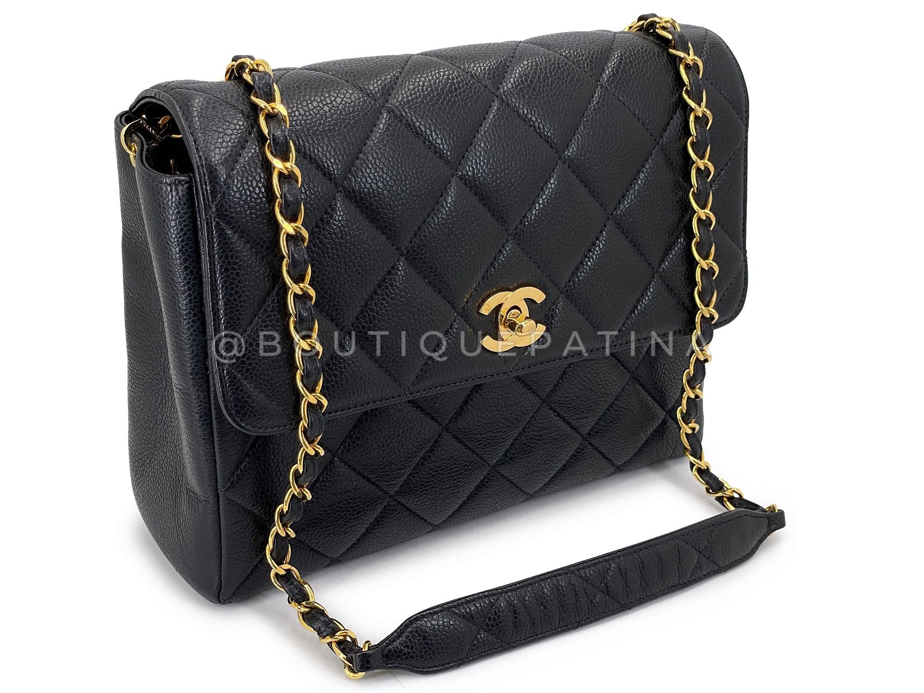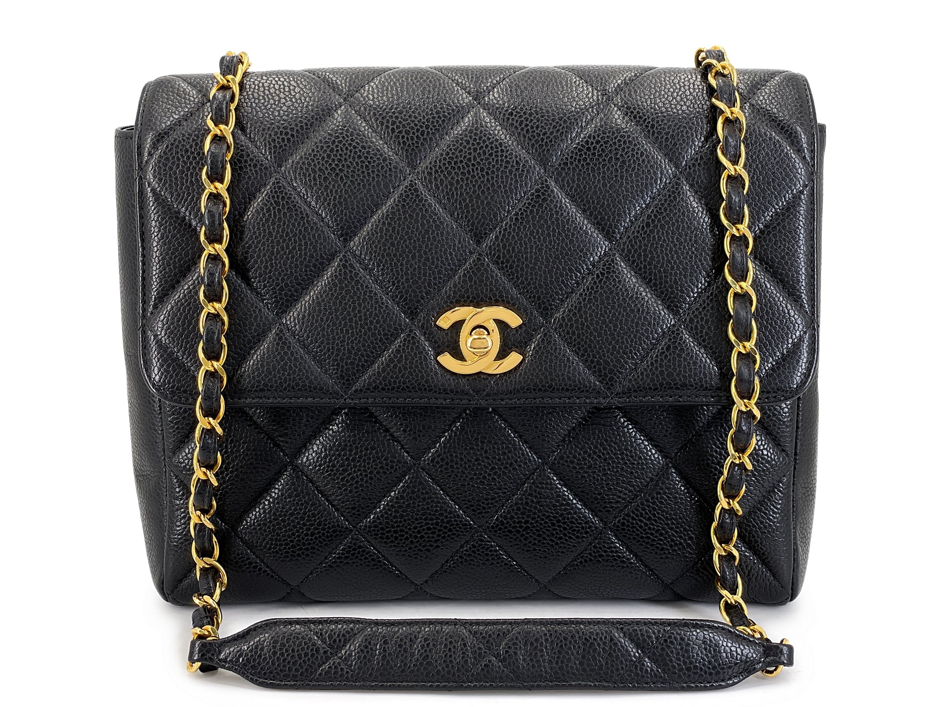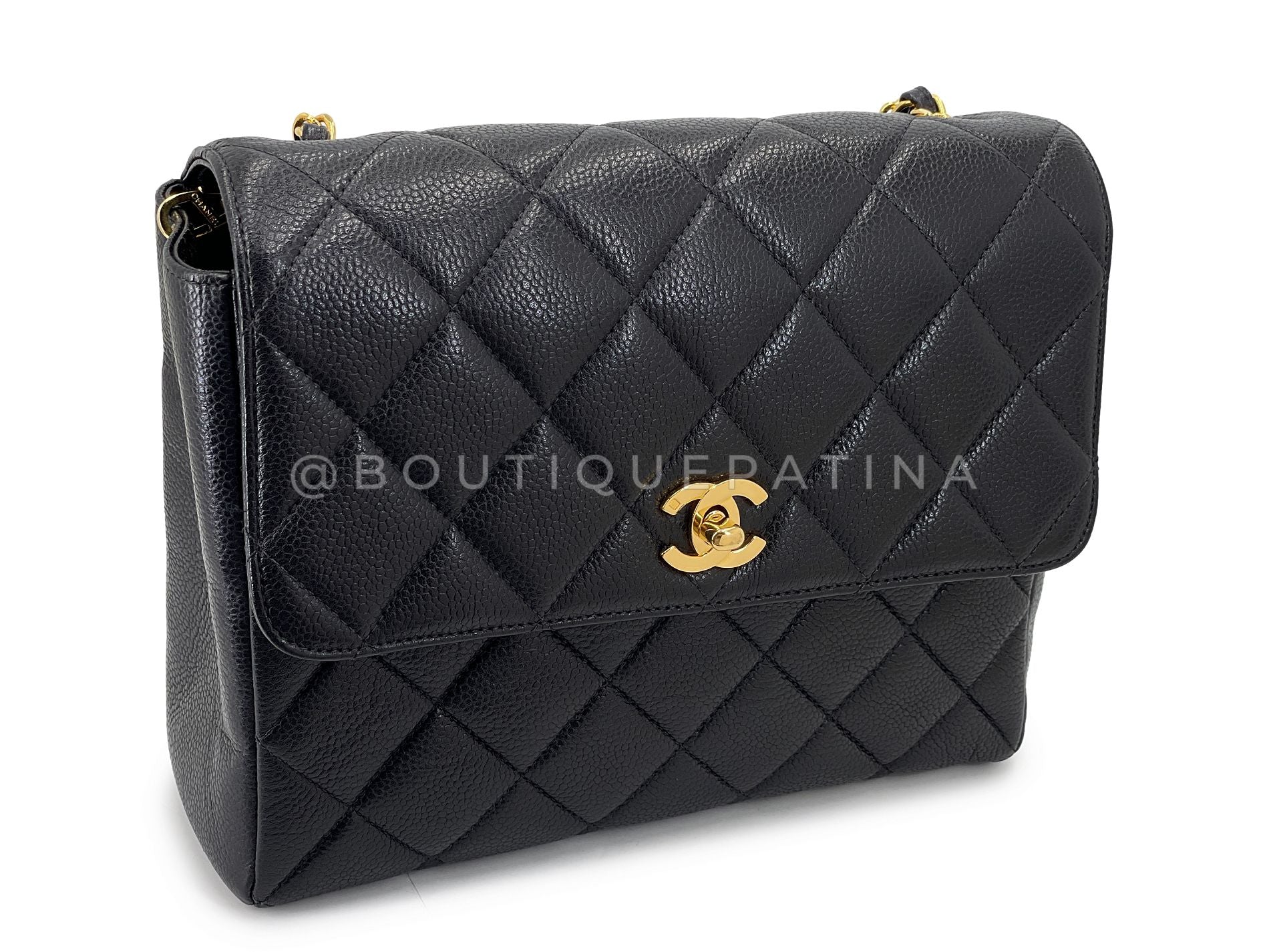 Chanel 1996 Vintage Black Caviar Square Crossbody Flap Bag 24k GHW O7P