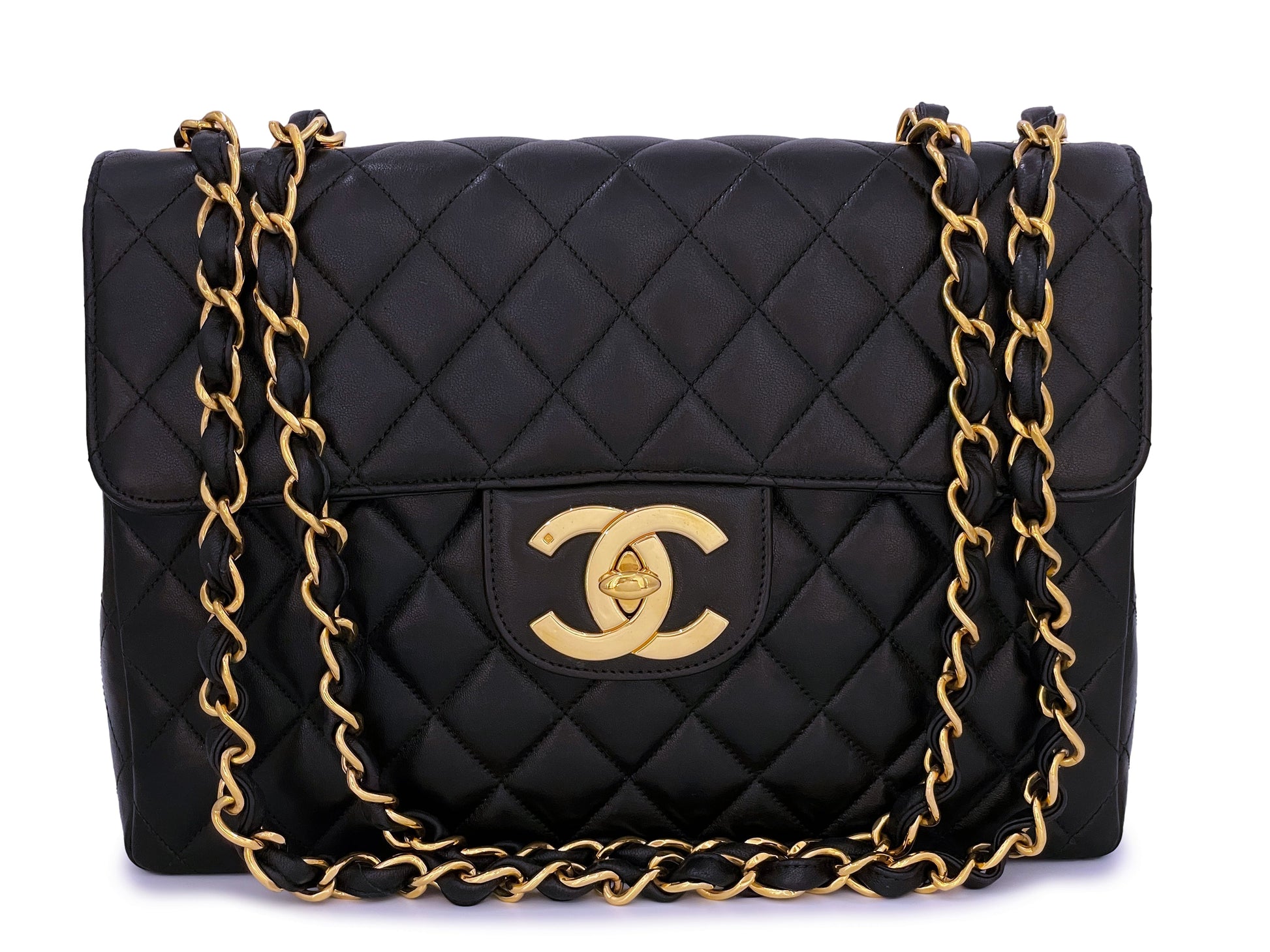 Chanel 1997 Vintage Black Jumbo Classic Flap Bag 24k GHW Lambskin
