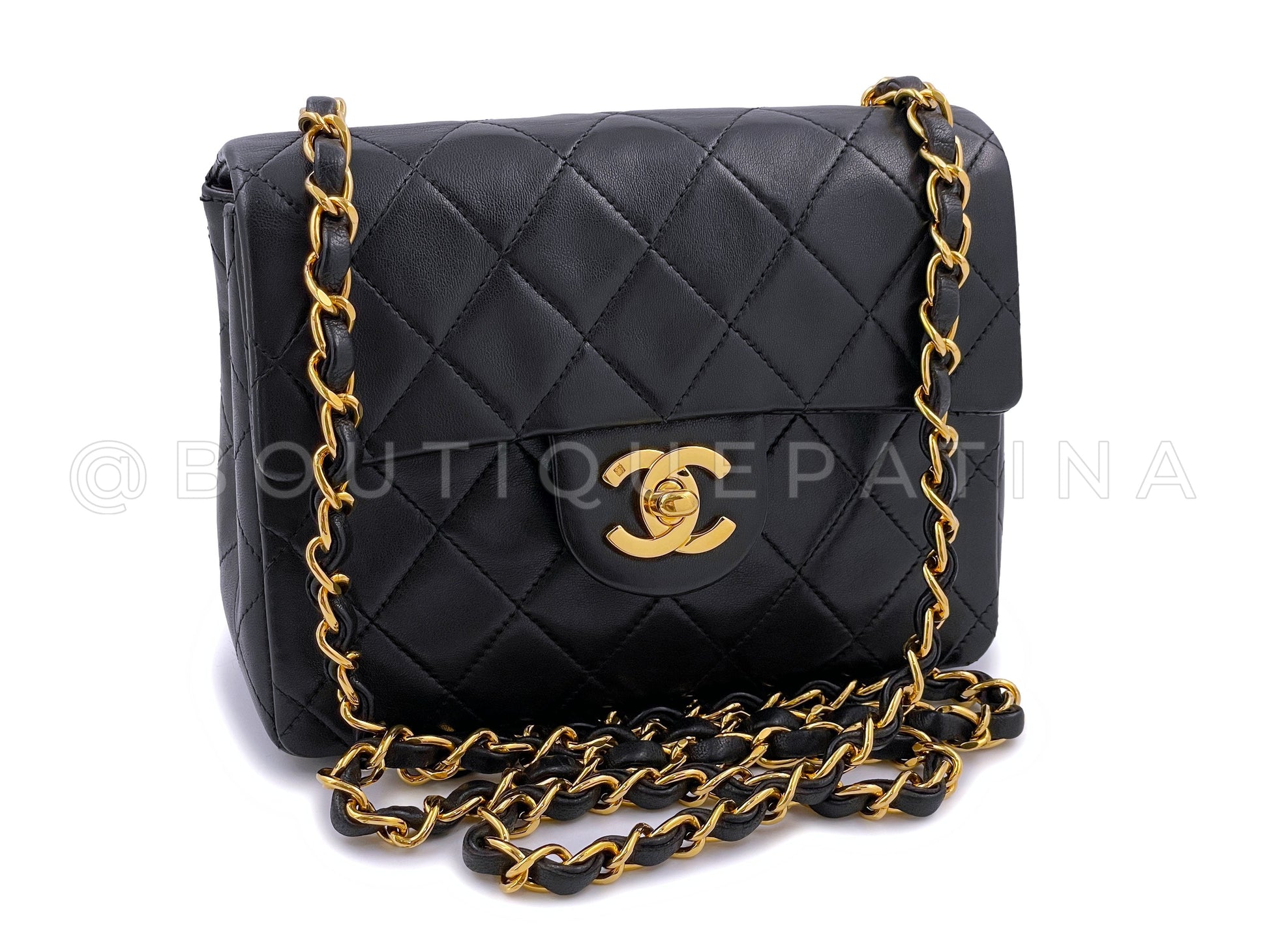 Chanel Vintage Black Square Mini Flap Bag 24k GHW