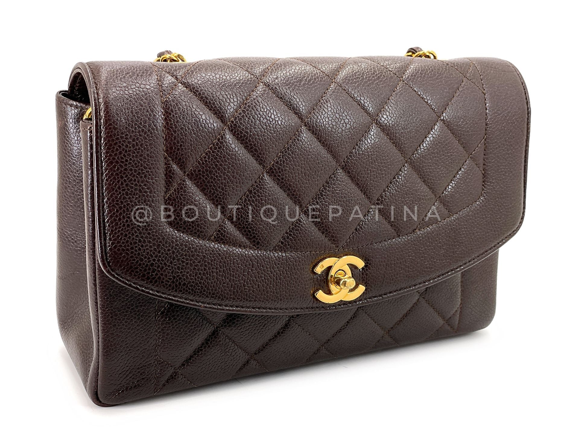 Chanel 1997 Vintage Brown Caviar Medium Diana Flap Bag 24k GHW 2C4