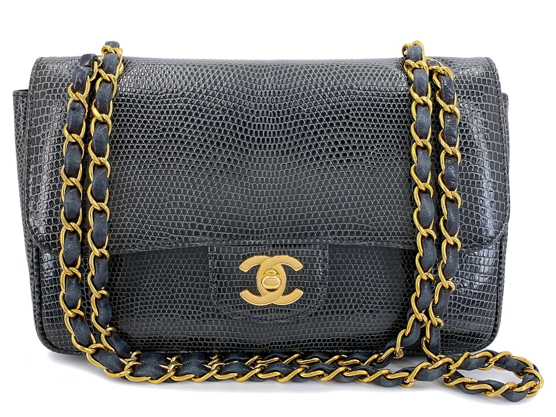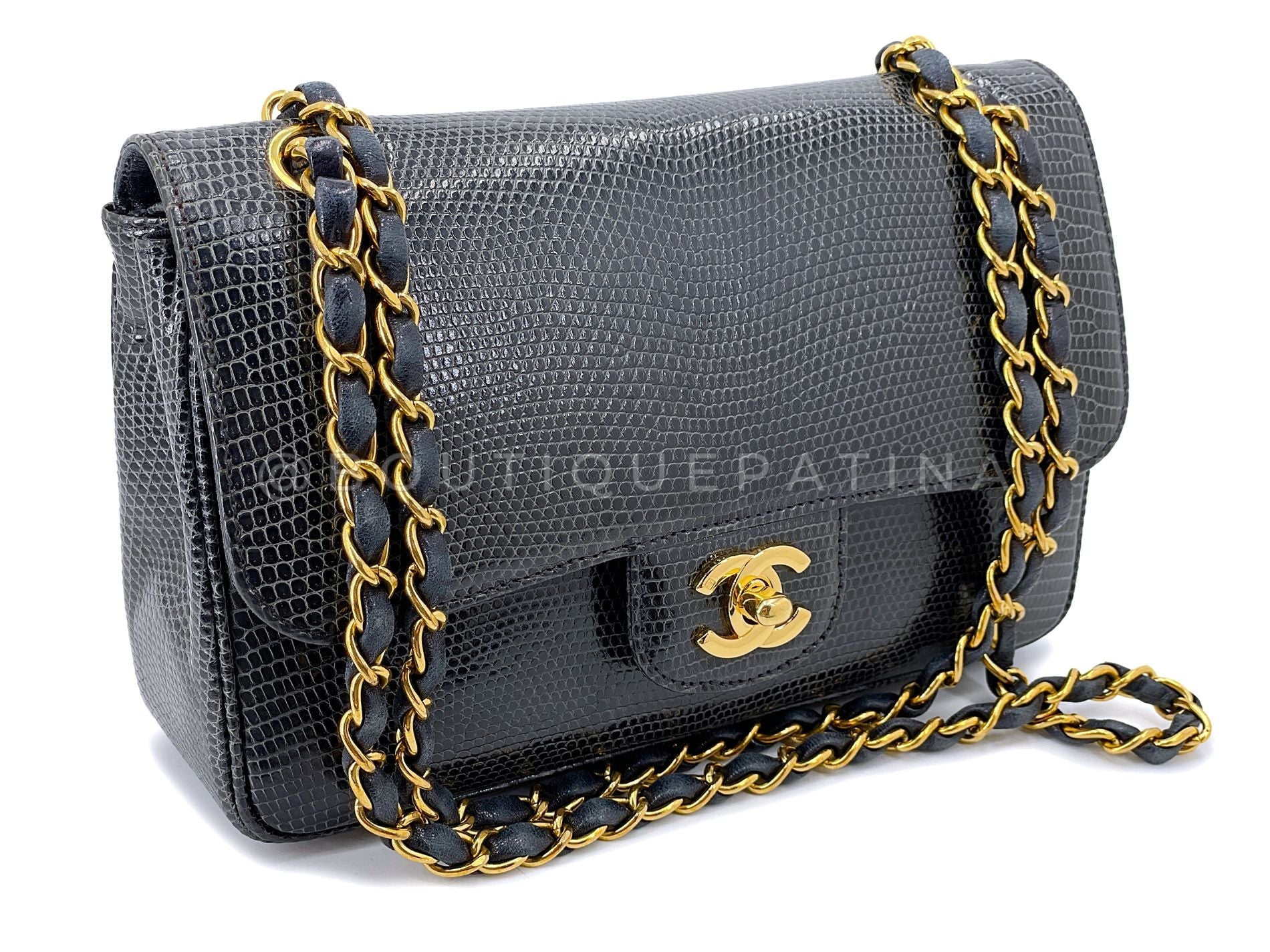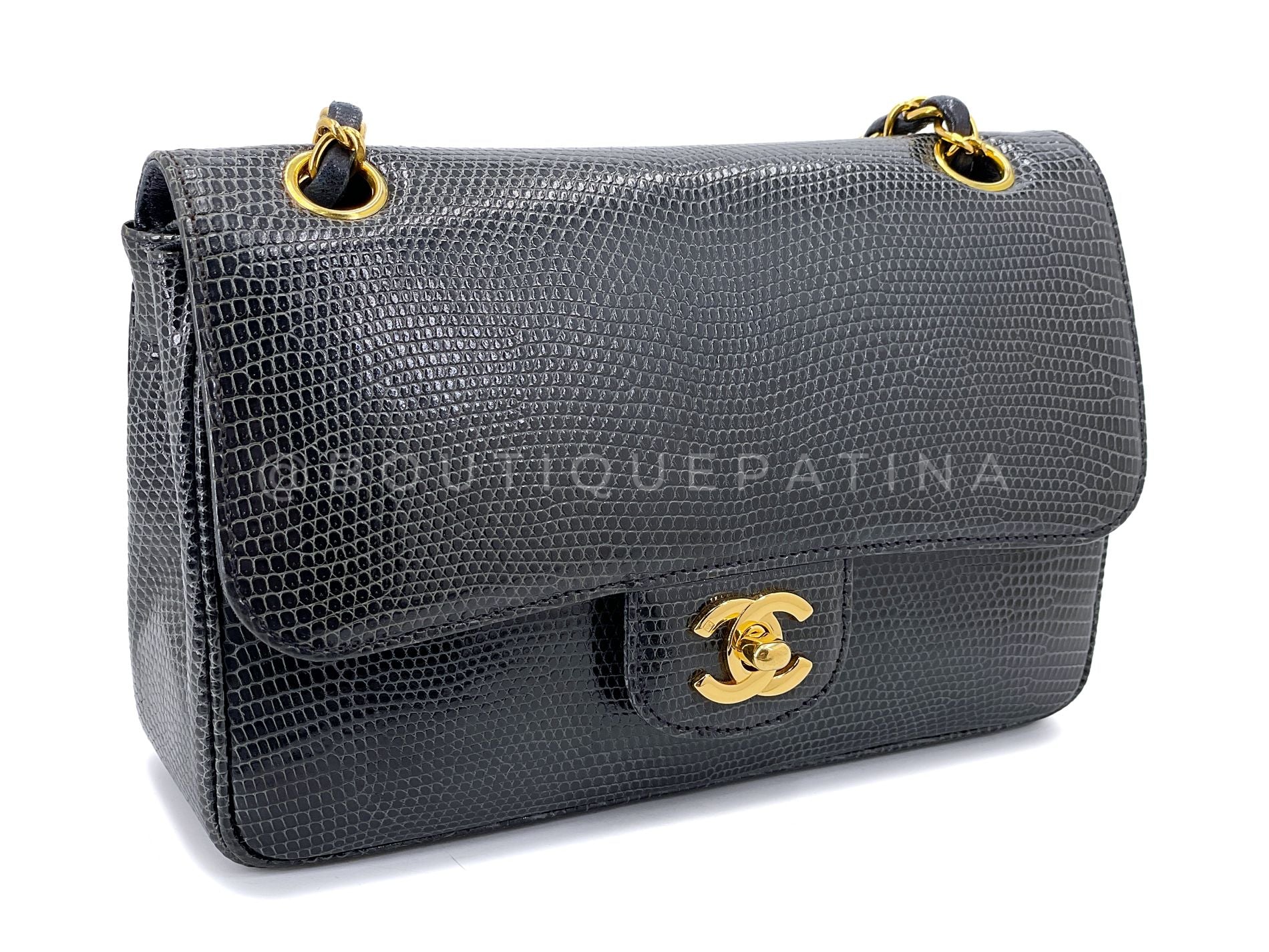 Chanel 1997 Vintage Charcoal Gray Lizard Small Classic Flap Bag 24k GHW