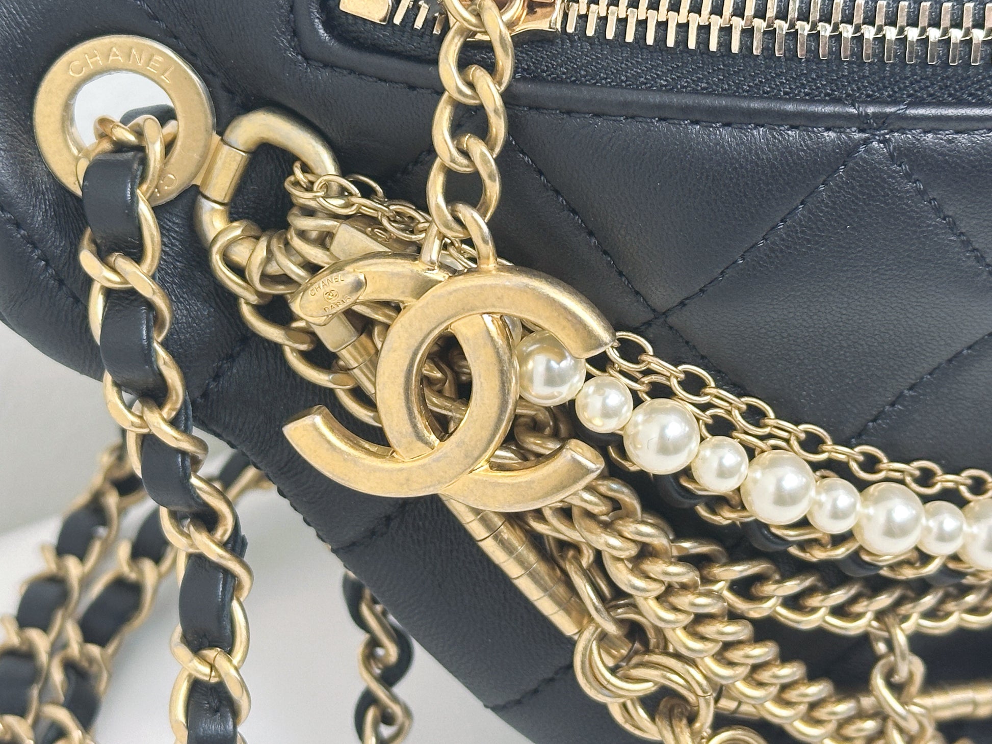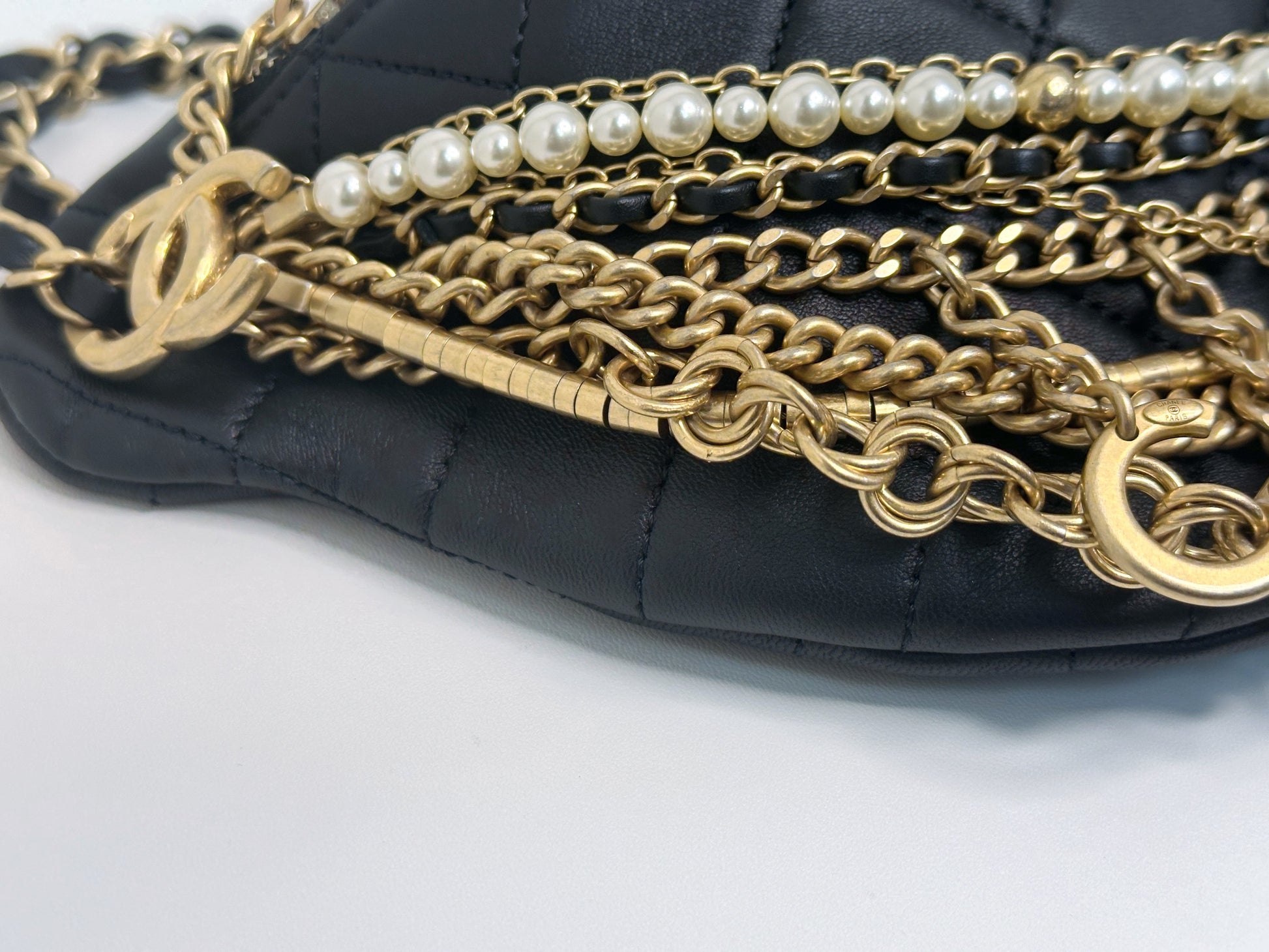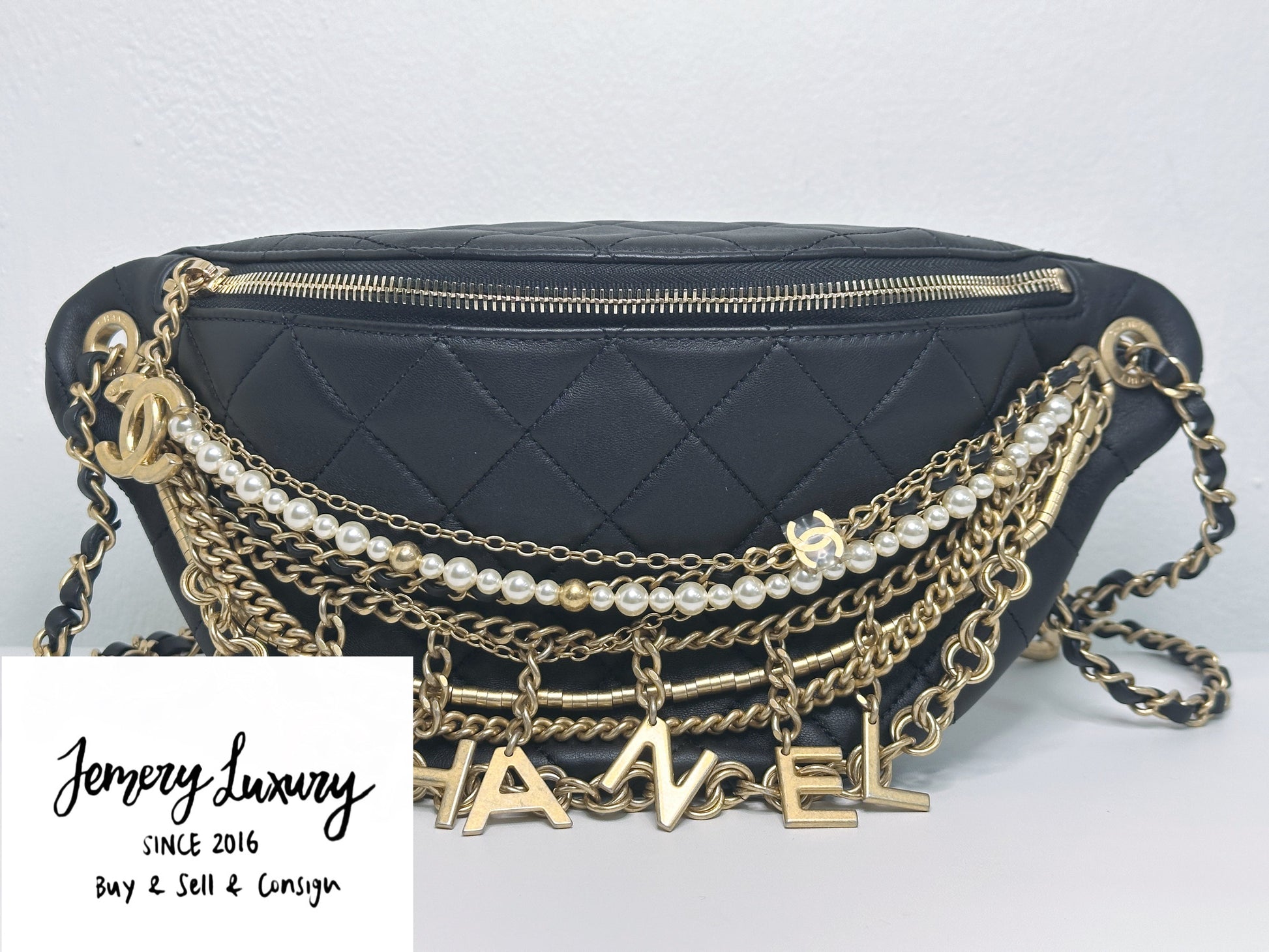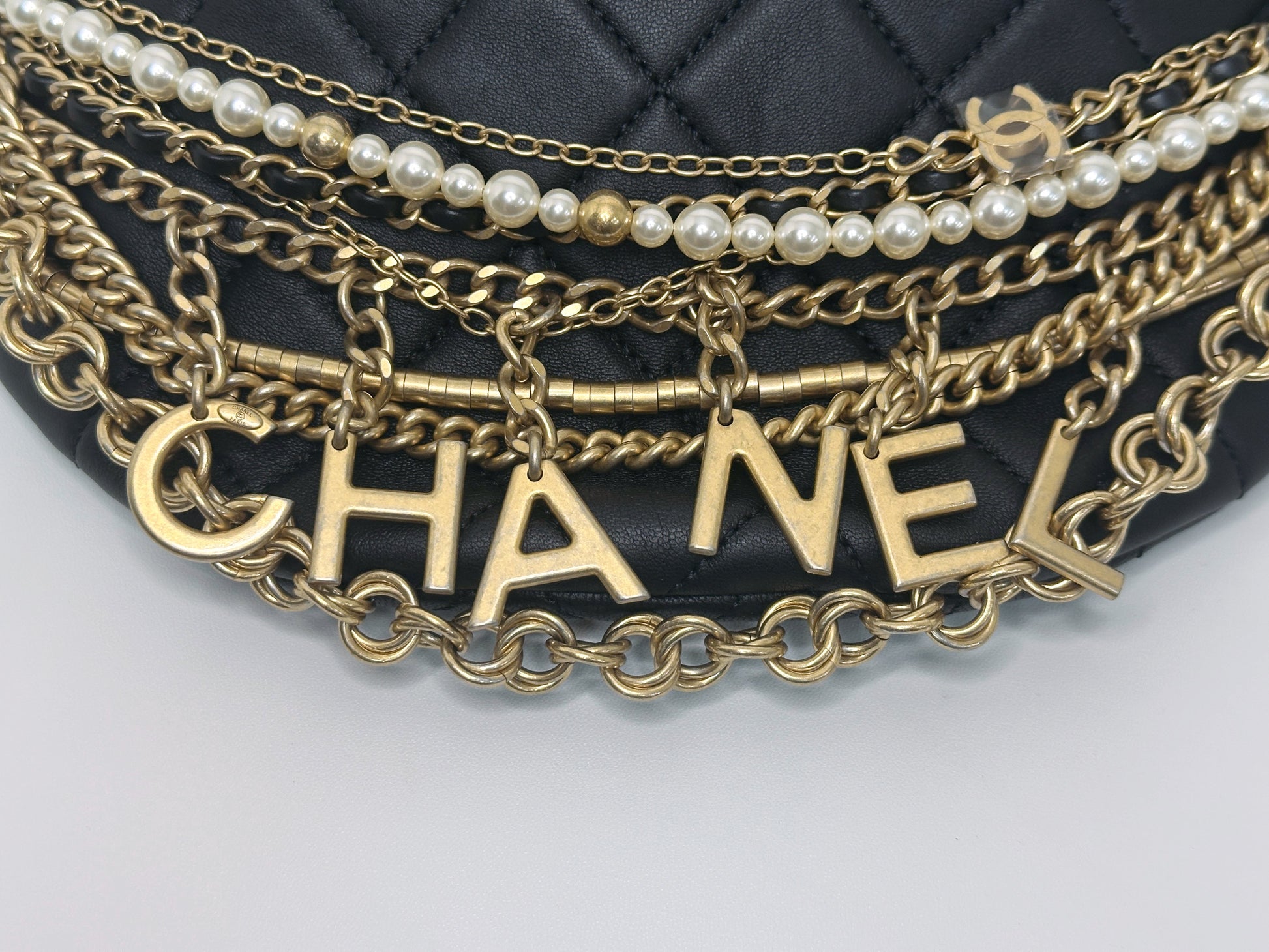 CHANEL 19A BLACK ALL ABOUT CHAINS PEARL FANNY PACK BAG GHW 2806 holo card