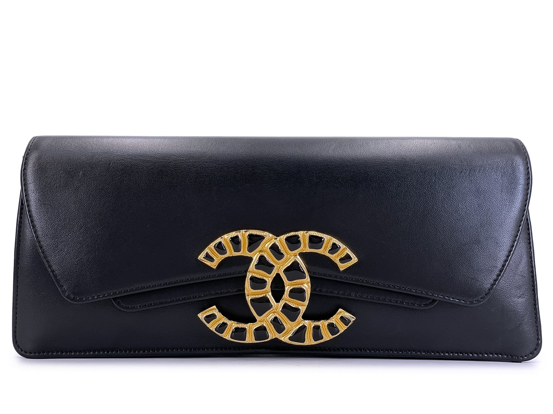 We love this Chanel 19A Egypt Black Jumbo Clutch Bag Crocodile CC Paris-New York as seen on Karl Lagerfeld's runway.