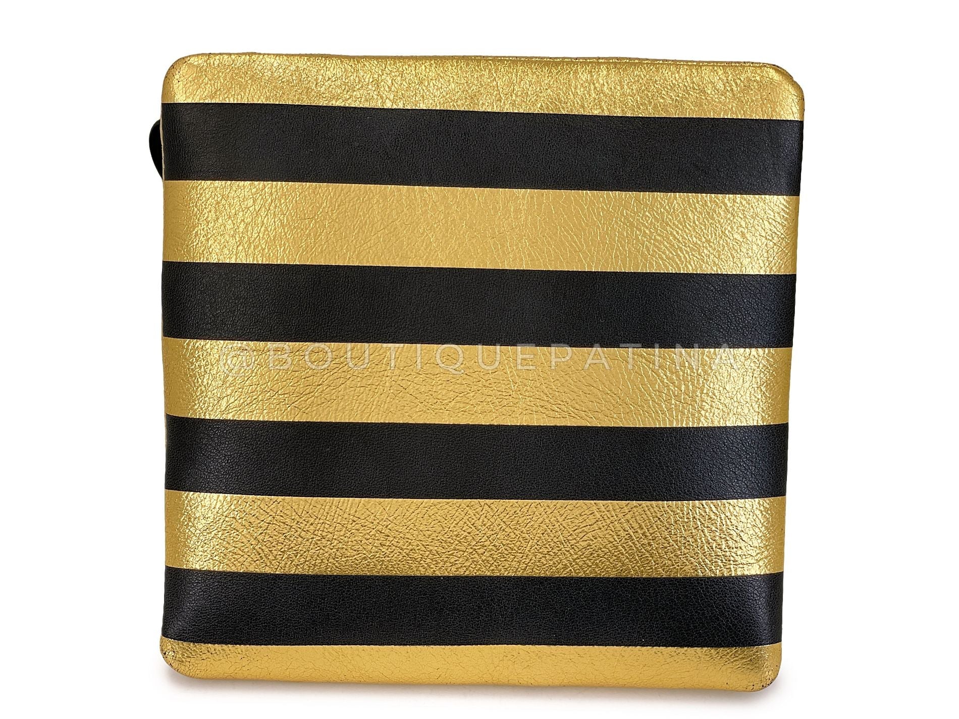 Chanel 19A Egypt Gold Black Leather Pyramid Evening Minaudière Clutch Bag Paris-New York OE9