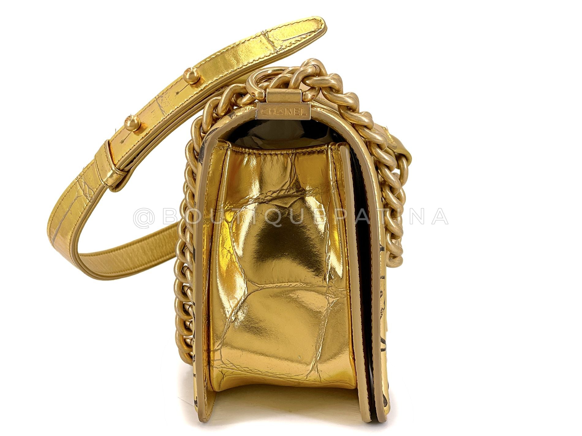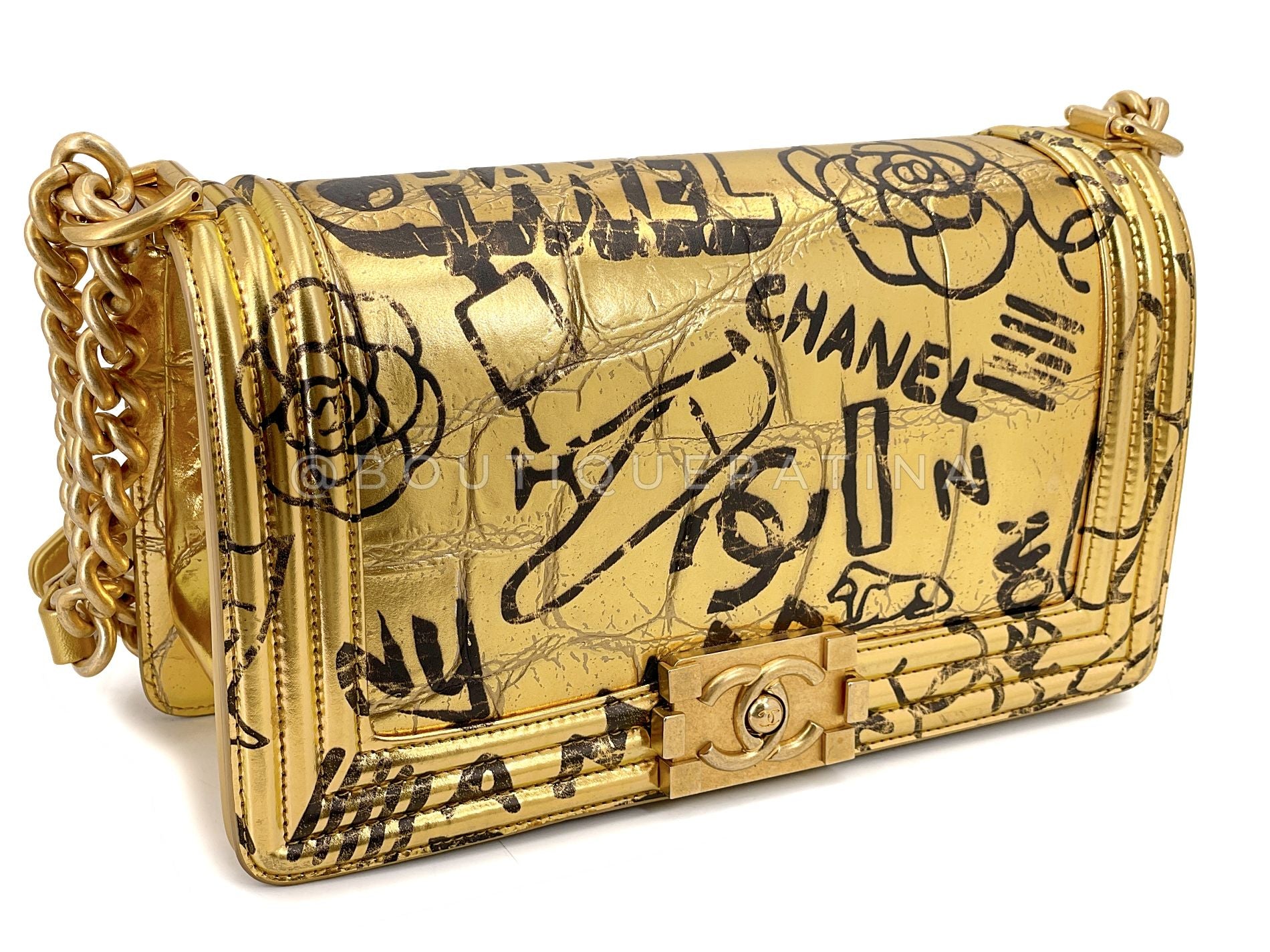 Chanel 19A Egypt Gold Crocodile Print Graffiti Boy Bag Medium GHW Paris-New York in the classic 10 inch medium boy flap is a great combination of bold and stylish.