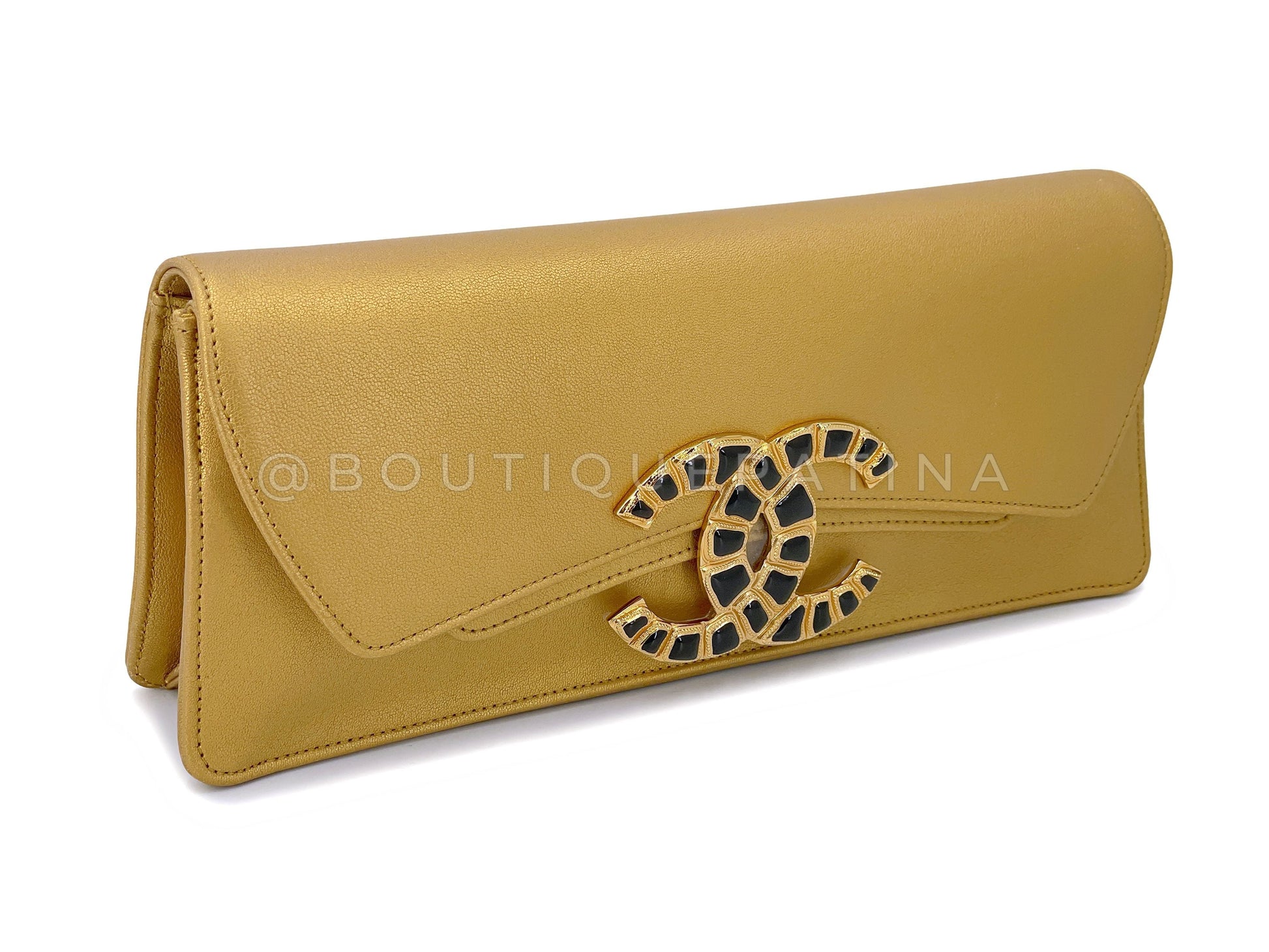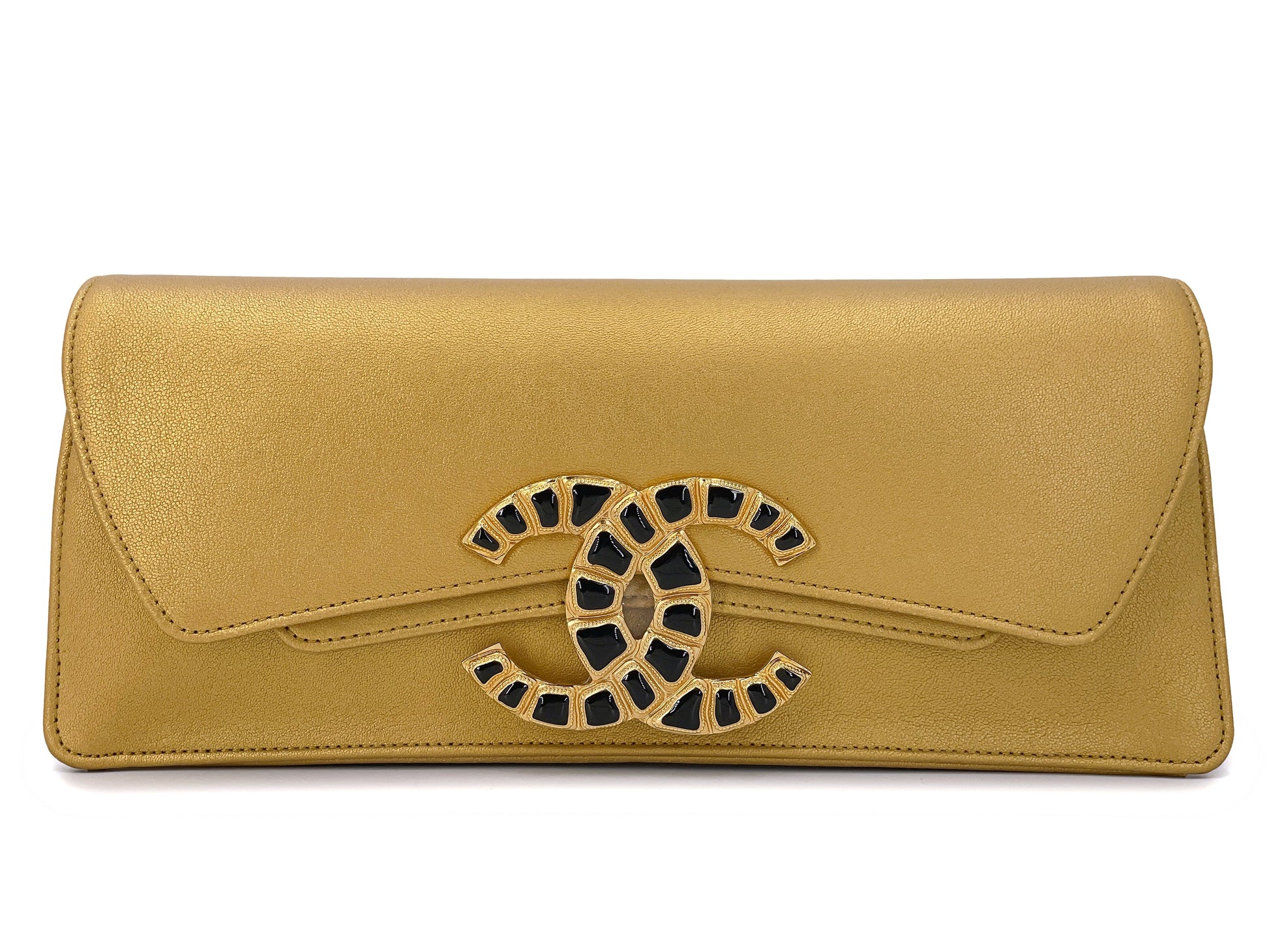 We love this Chanel 19A Egypt Pale Gold Jumbo Clutch Bag Crocodile CC Paris-New York as seen on Karl Lagerfeld's runway.