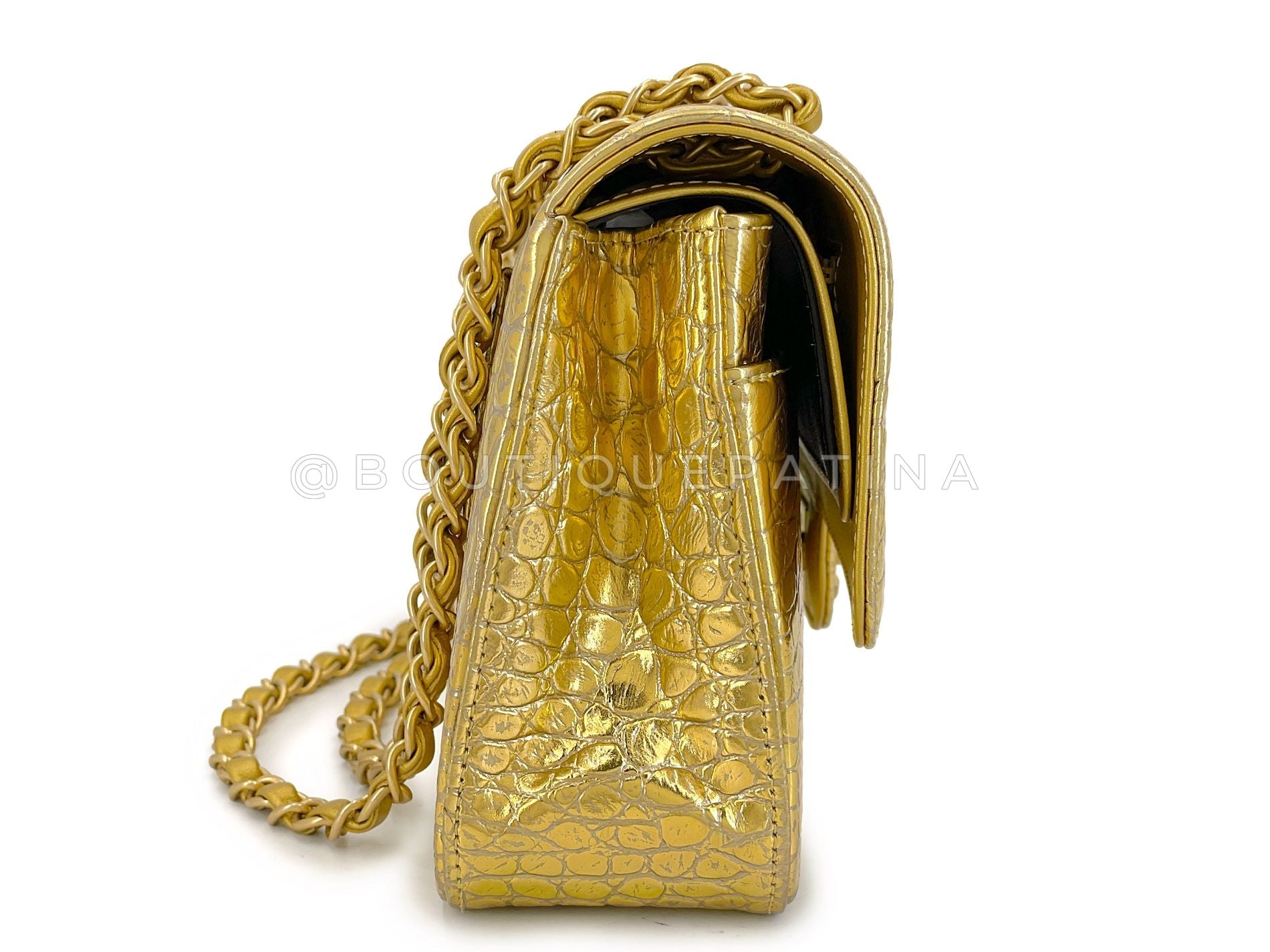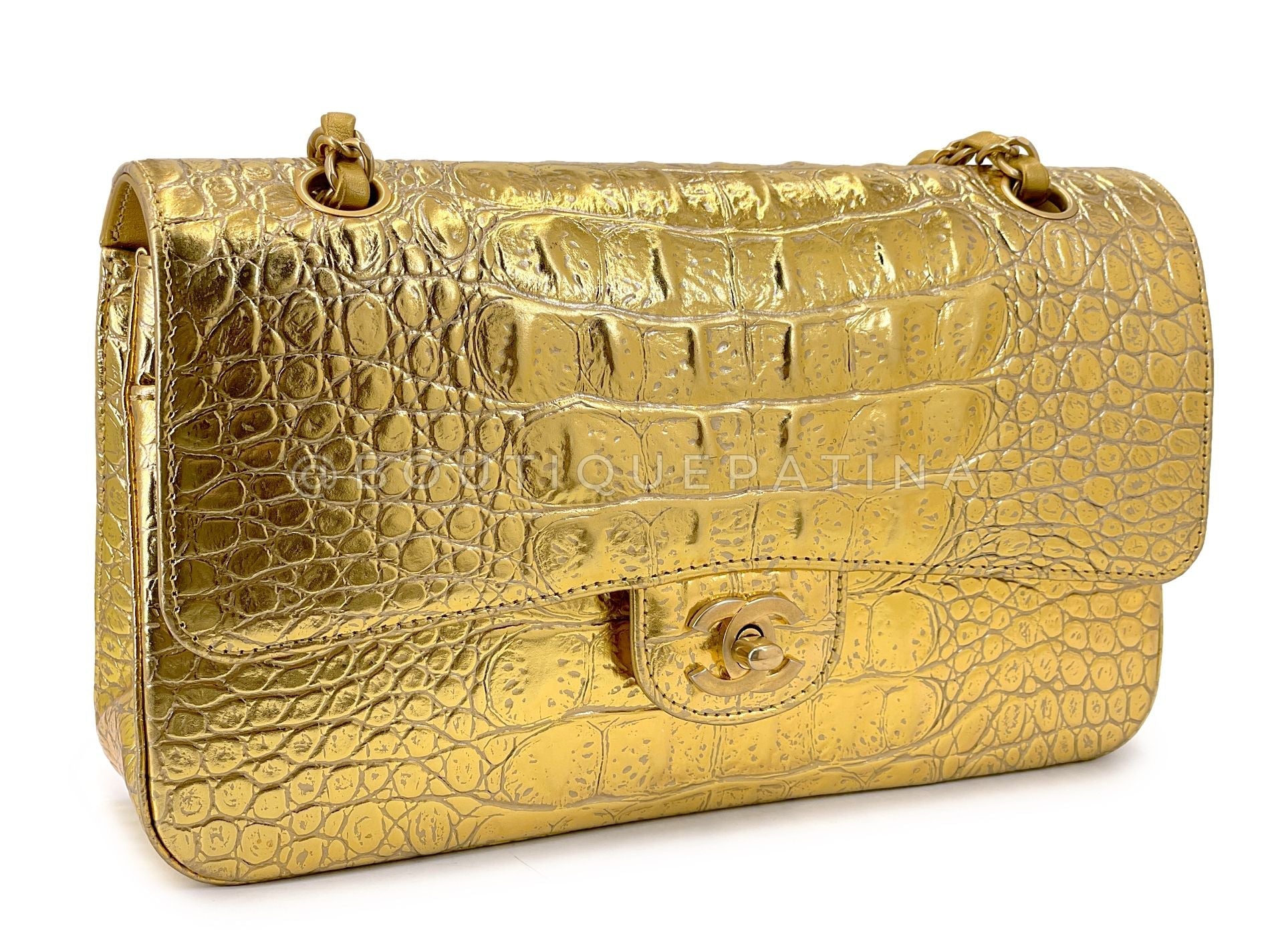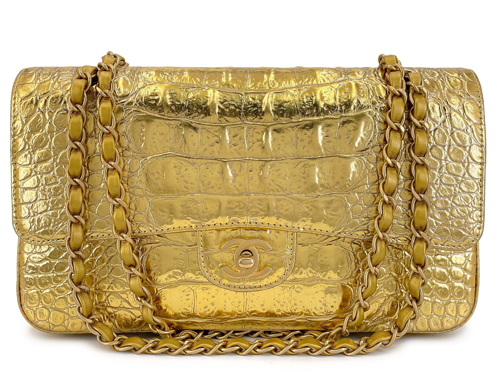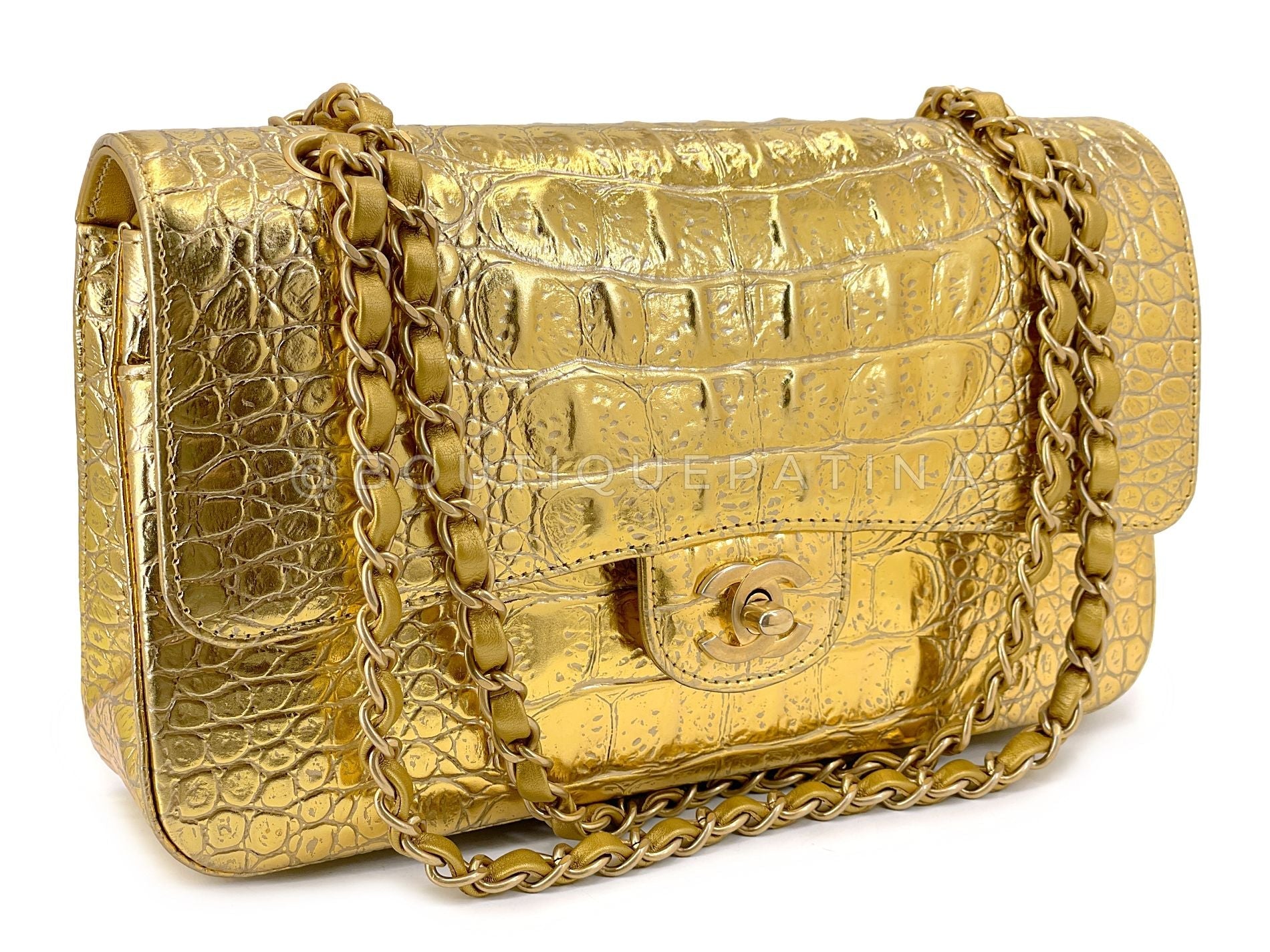 Chanel 19A Gold Crocodile Print Egyptian Medium Classic Double Flap Bag GHW Paris-New York LQL