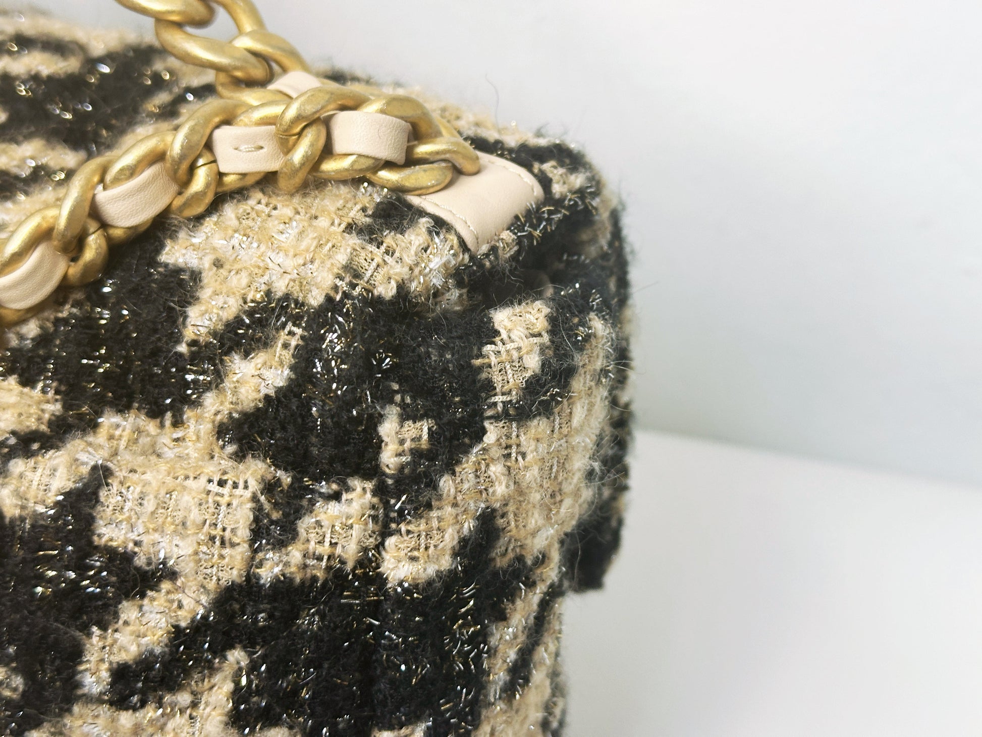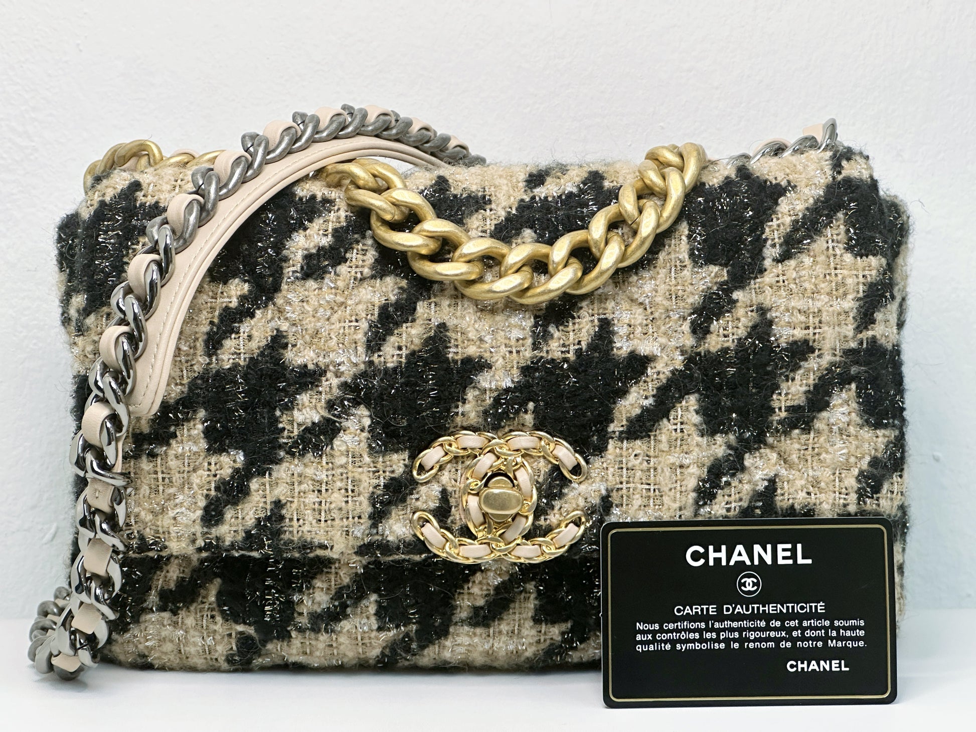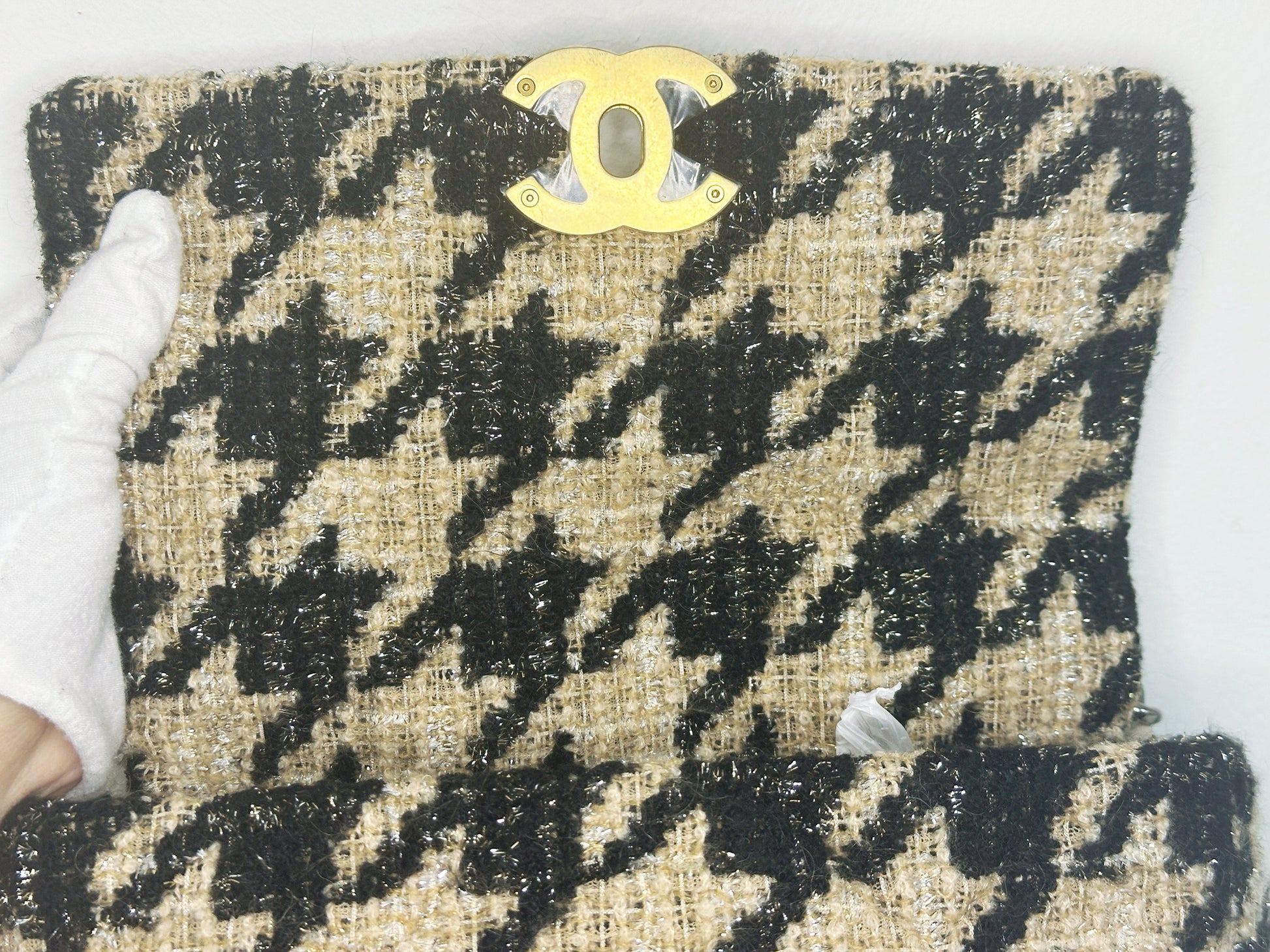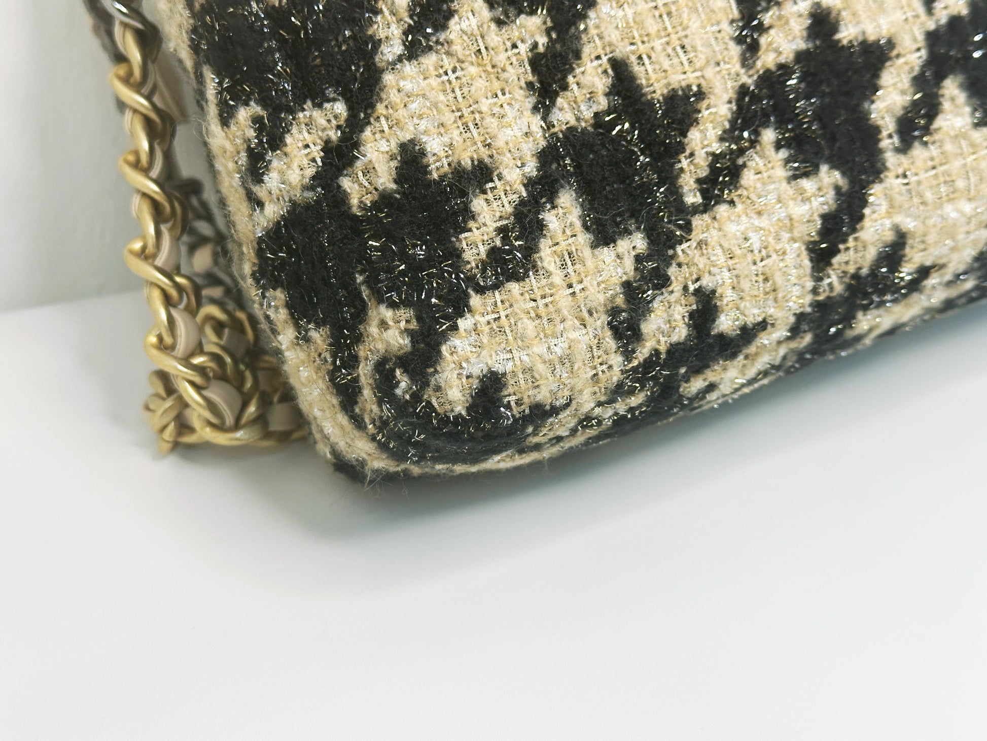 CHANEL 19K HOUNDSTOOTH TWEED 19 Small BEIGE/BLACK 2877 holo card