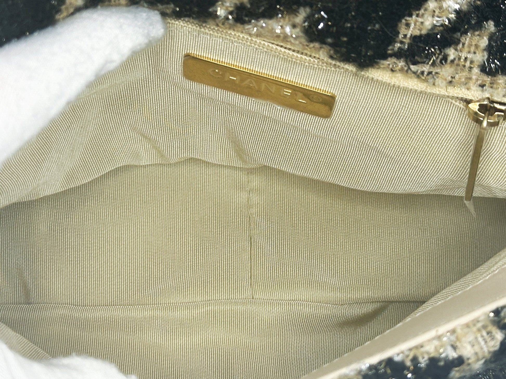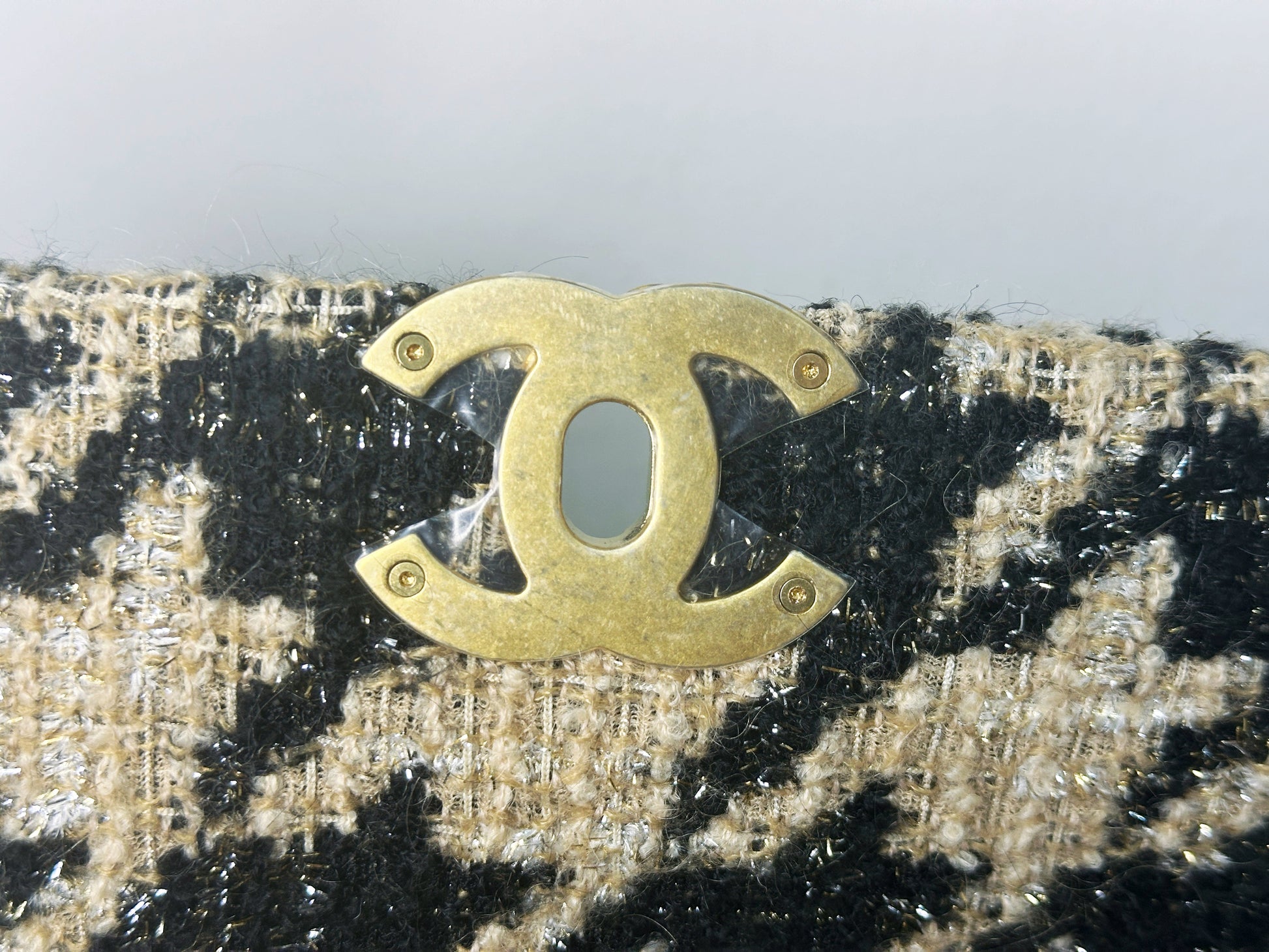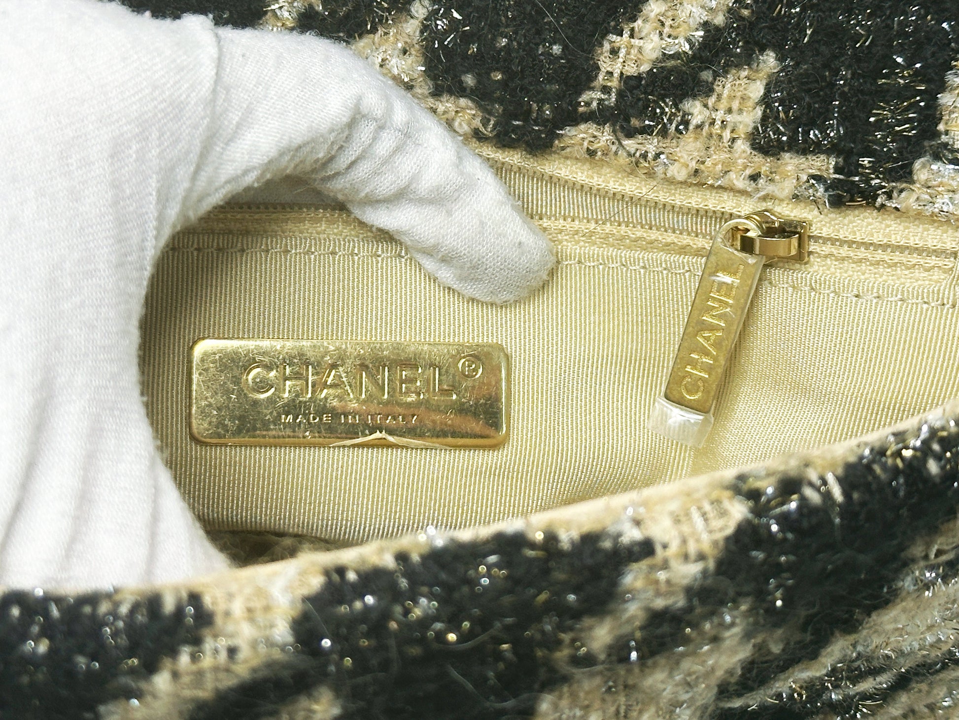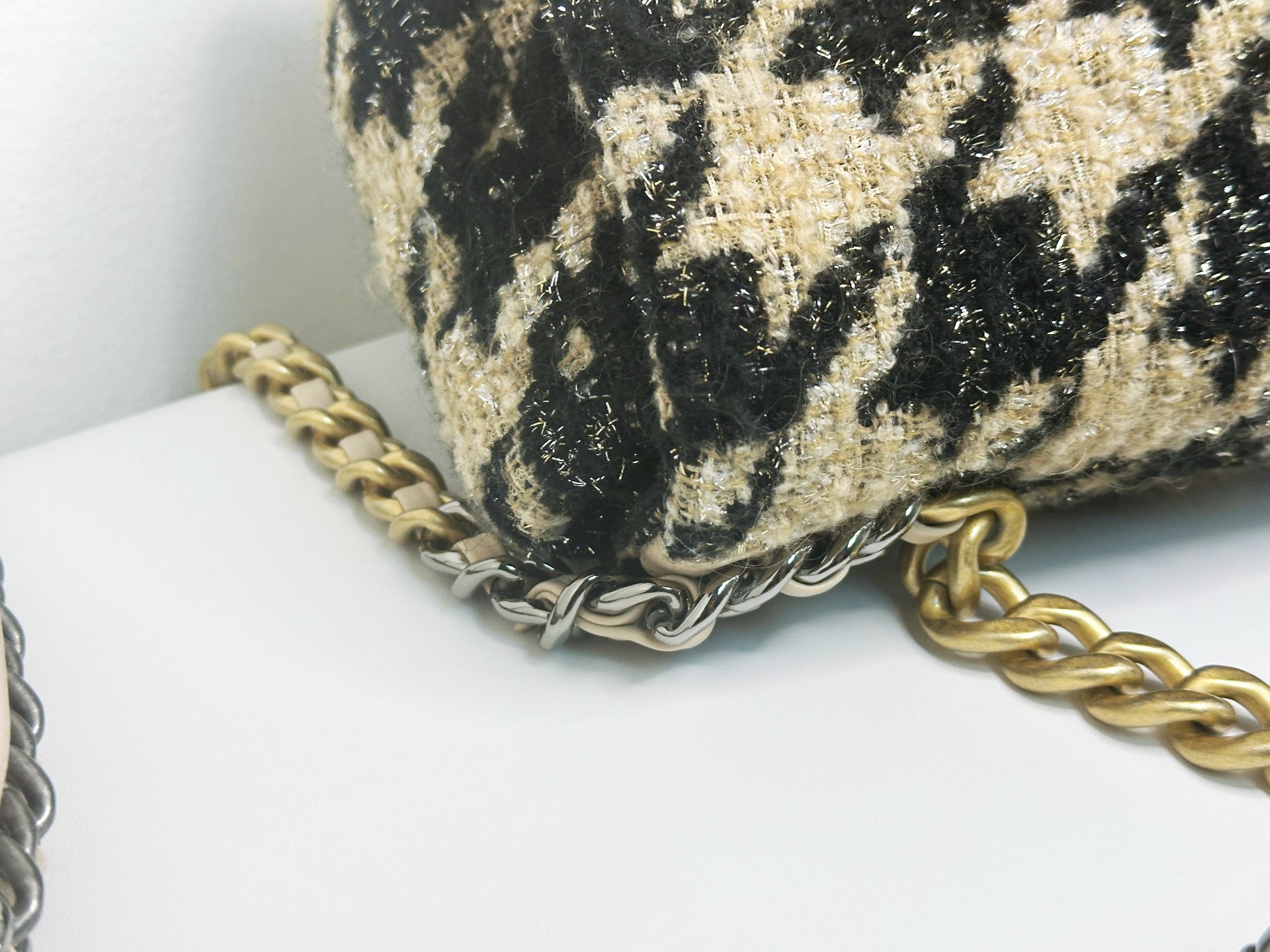 CHANEL 19K HOUNDSTOOTH TWEED 19 Small BEIGE/BLACK 2877 holo card