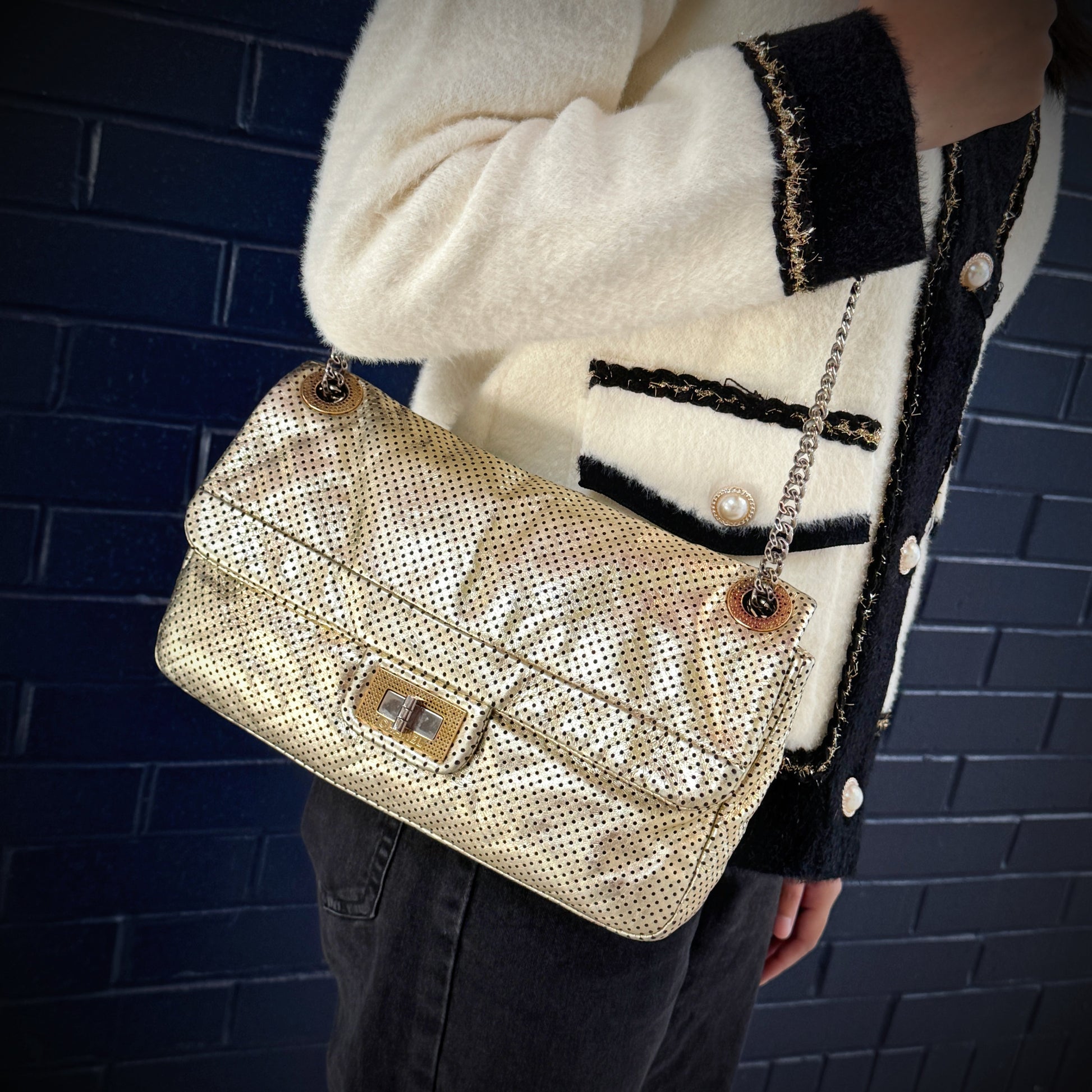 Chanel 2.55 Metallic Leather Drill Flap Bag TWS