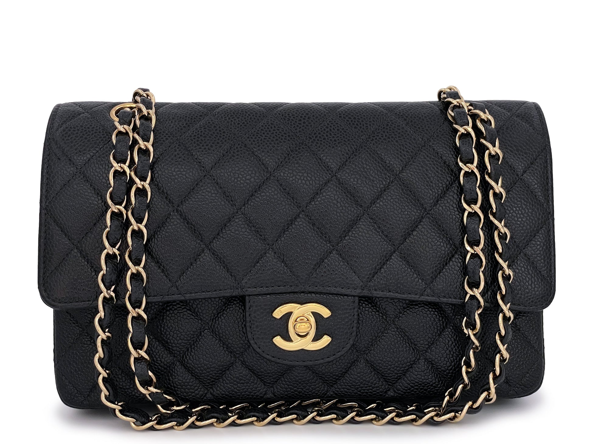 Chanel 2002 Vintage Black Caviar Medium Classic Double Flap Bag 24k GHW