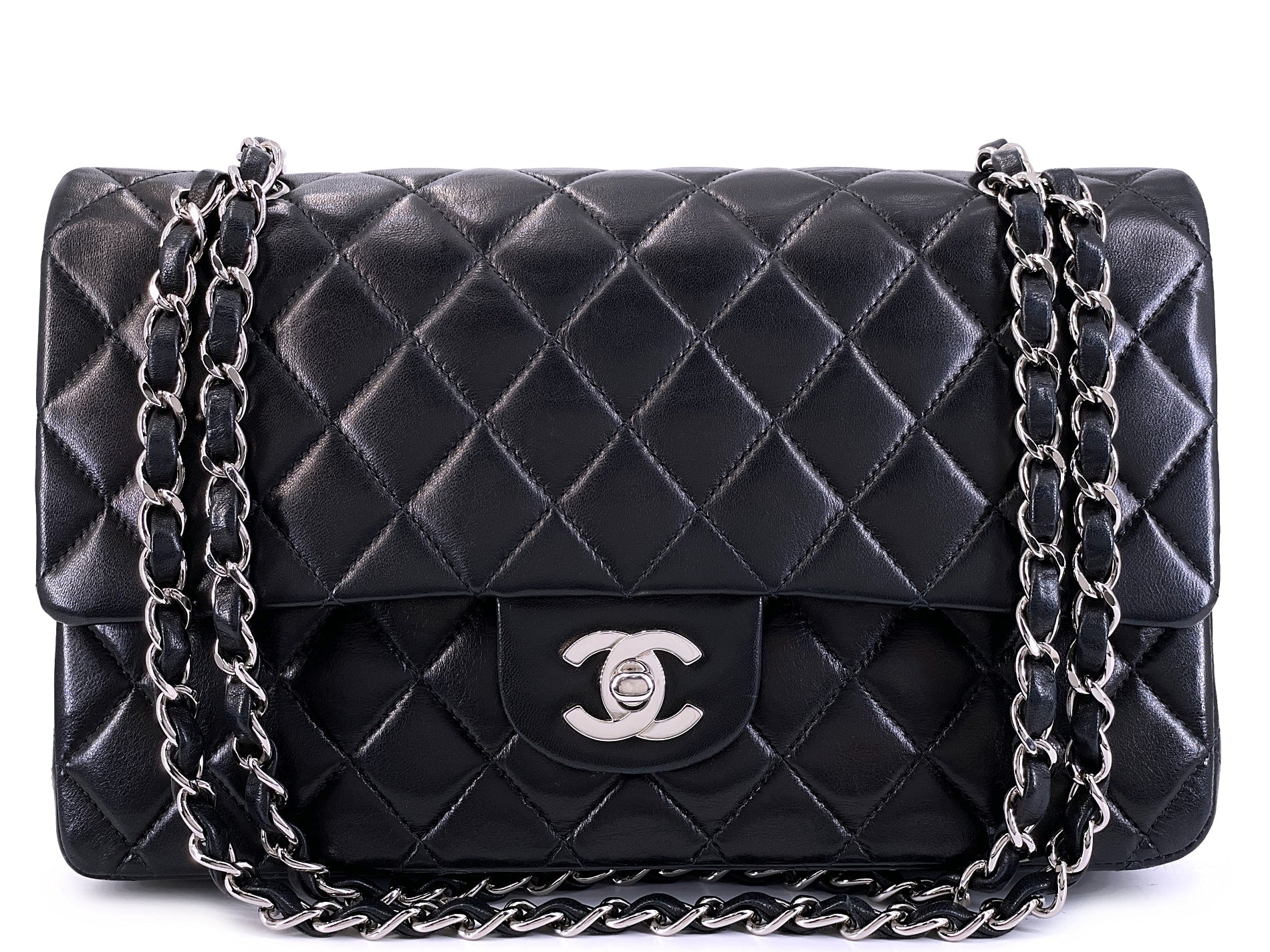 Chanel 2002 Vintage Black Lambskin Medium Classic Double Flap Bag SHW 2LS