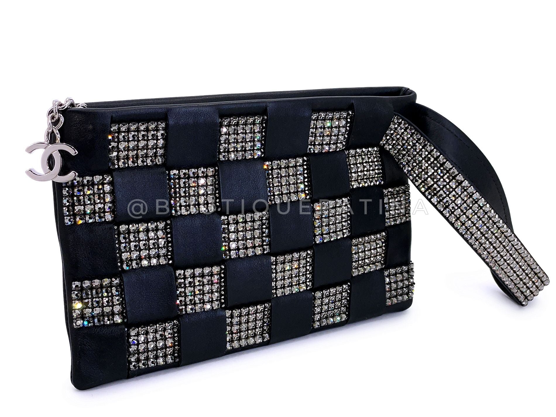 Chanel 2006 Vintage Woven Crystal Evening Clutch Bag SHW DU7