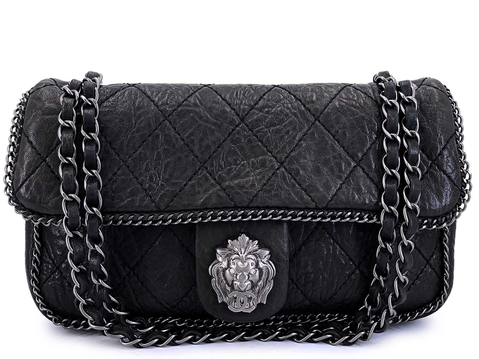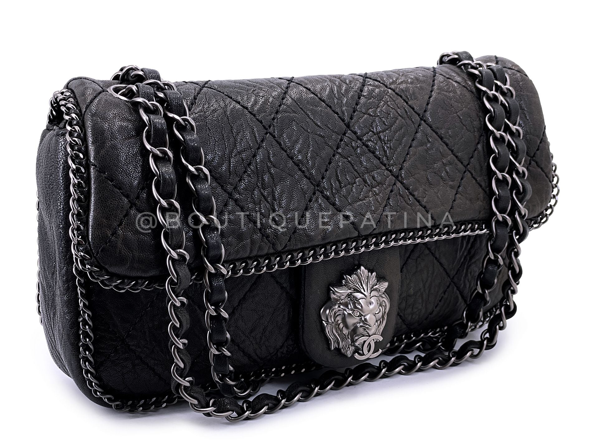Chanel 2007 Vintage Black Leo the Lionhead Lion Flap Bag RHW CZX