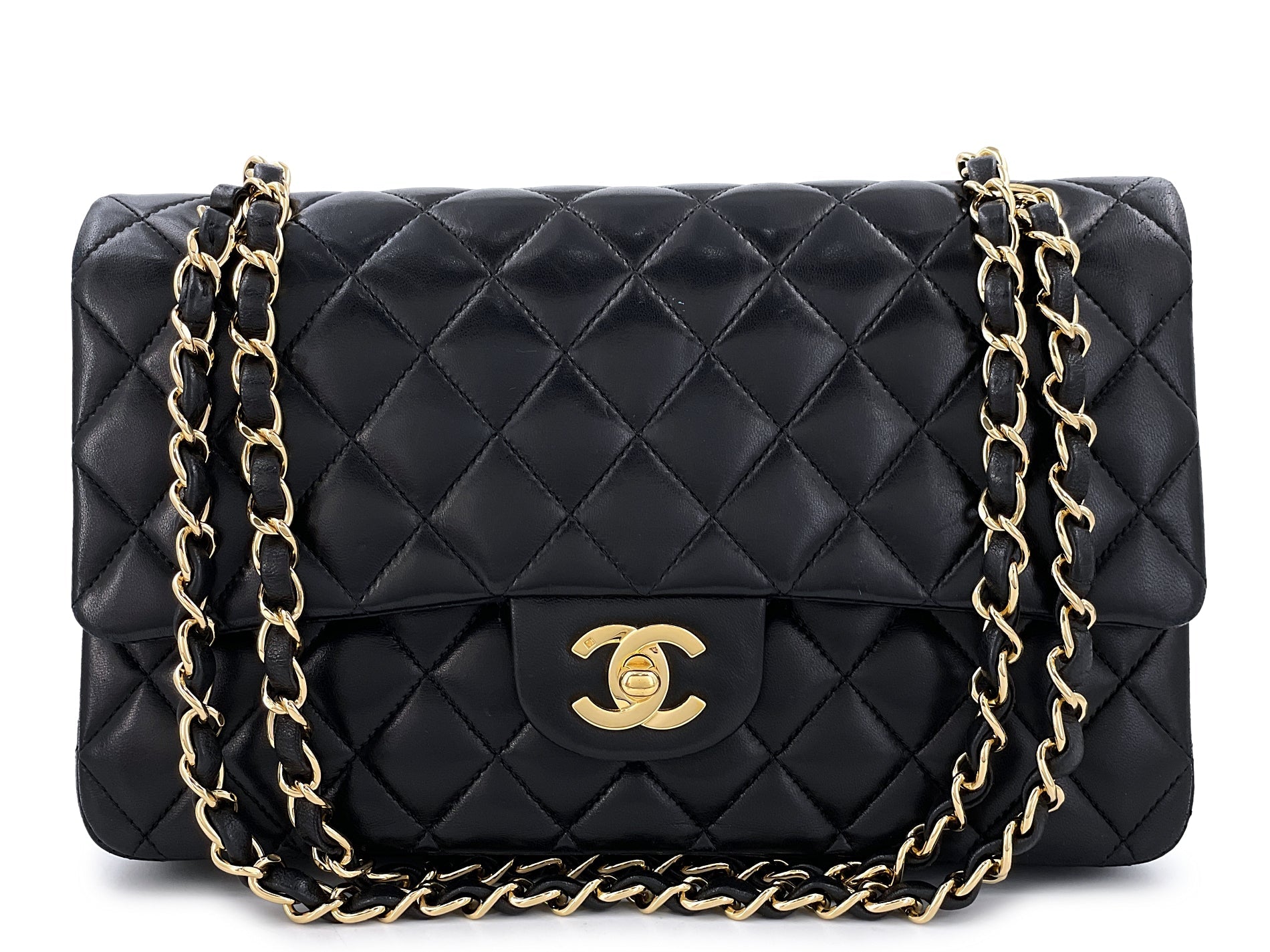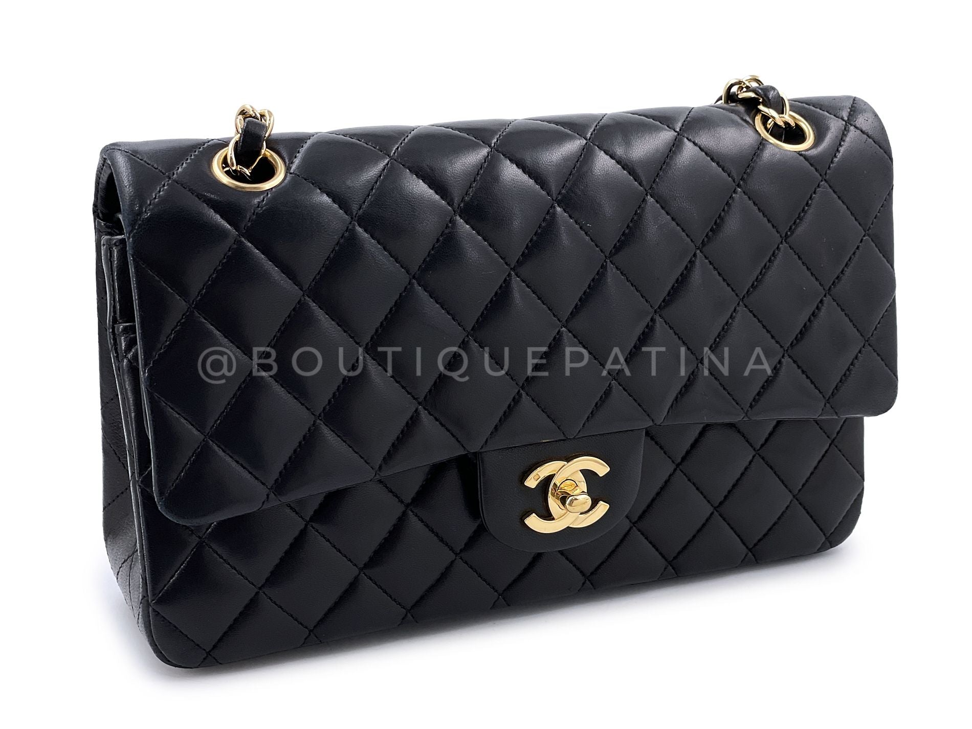 In Black lambskin leather and 24k gold plated hardware. In lambskin leather, the original classic flap in all its glory with its petal soft quilts, true luxury.