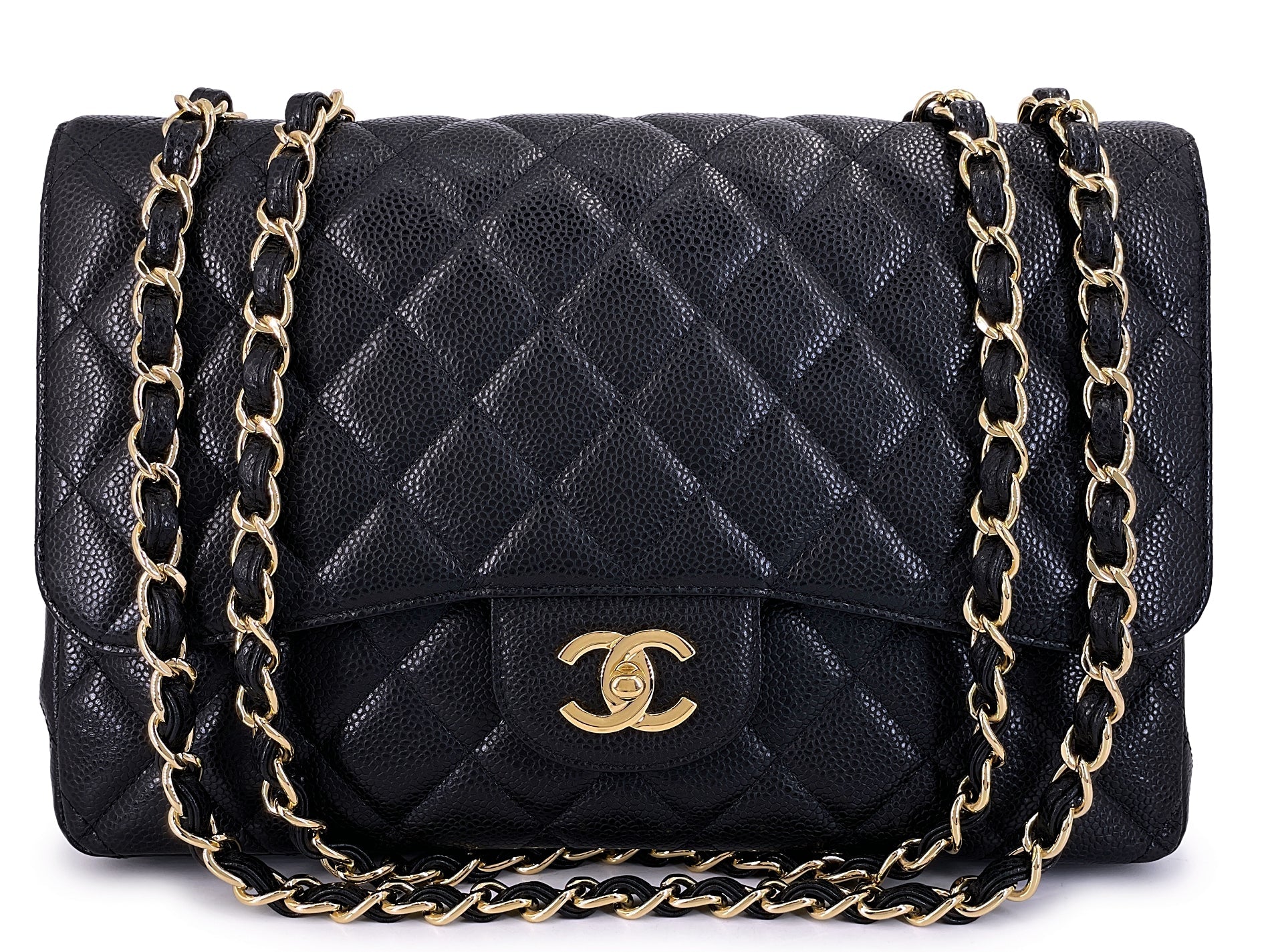 Chanel 2010 Black Caviar Jumbo Classic Flap Bag Single GHW RB5