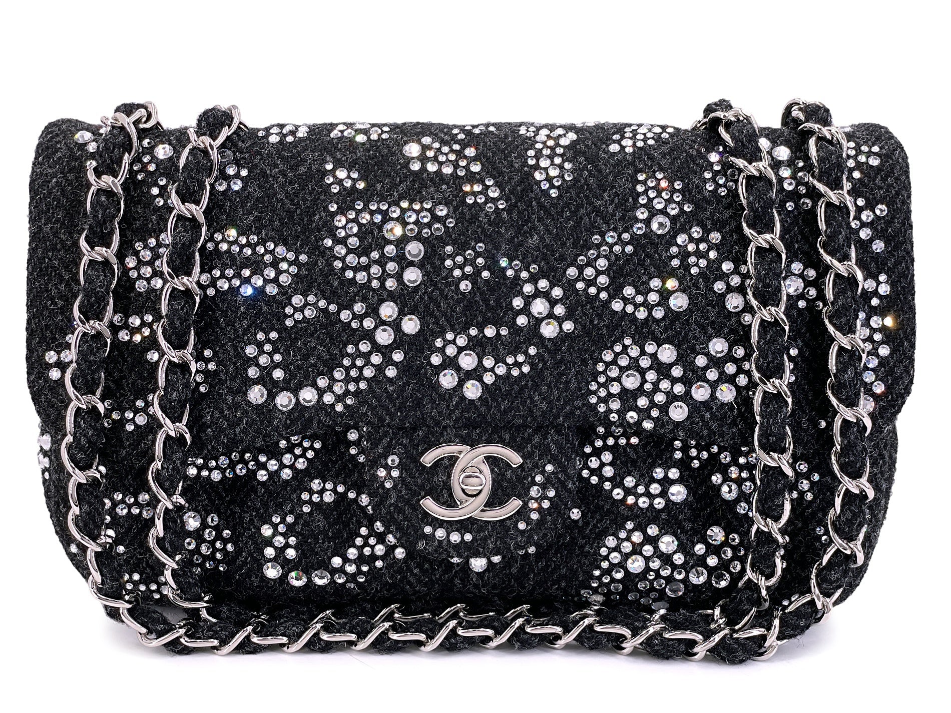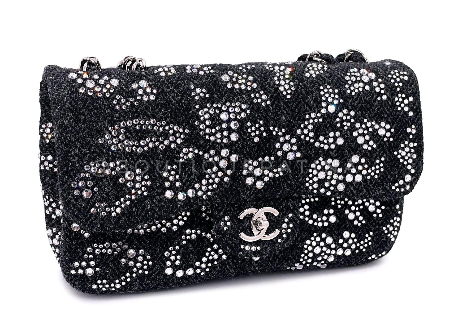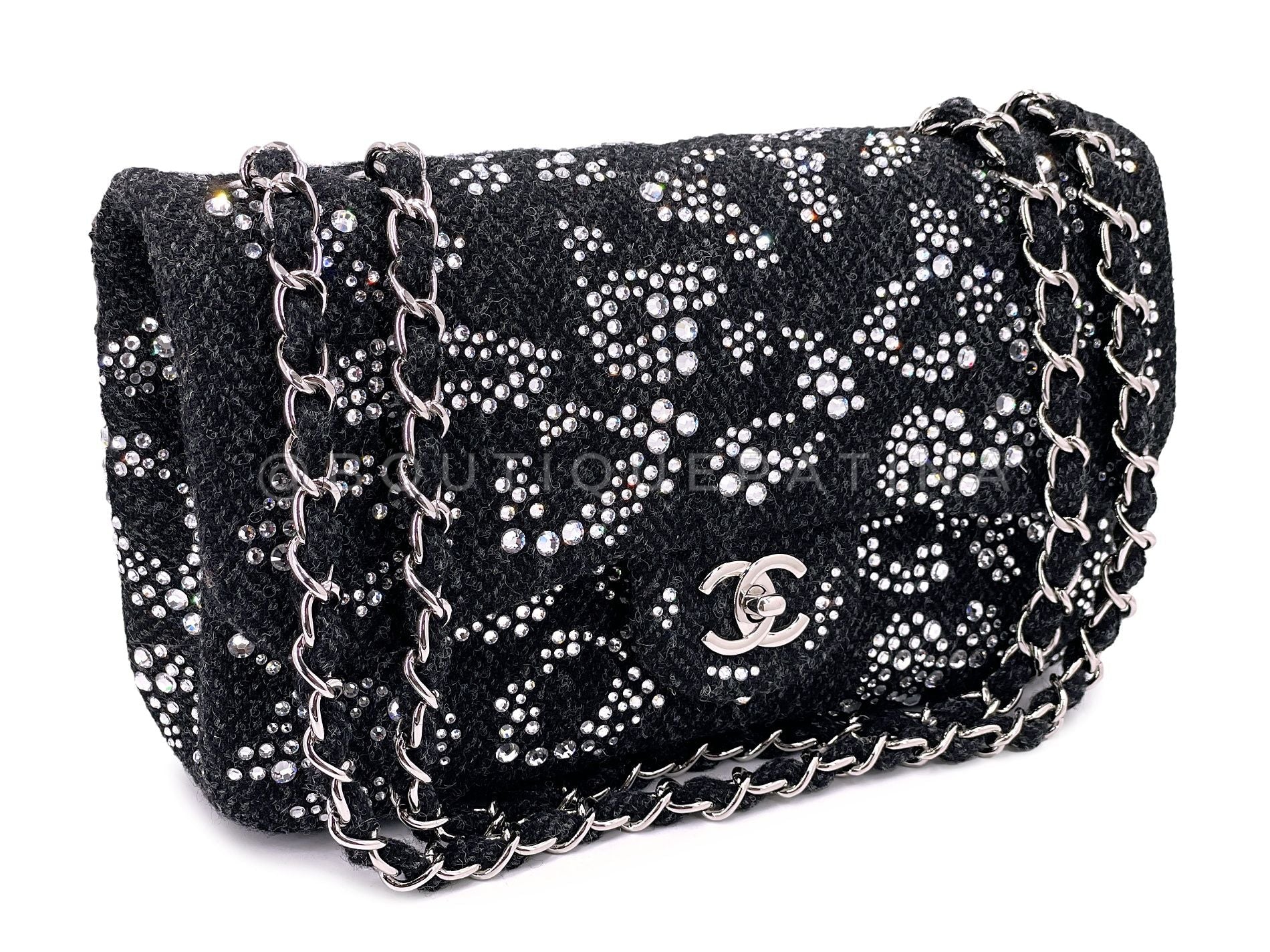 Chanel 2010 Leopard Crystal Studded Wool Tweed Classic Flap Bag SHW MM1