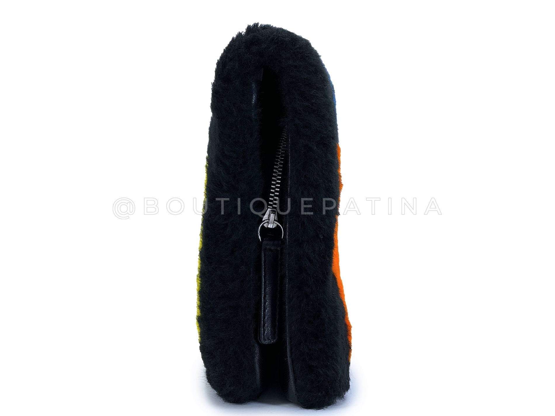 Chanel 2014 Black Supermarket Shearling Giant Clutch Bag SHW Comic Multicolor 5UH