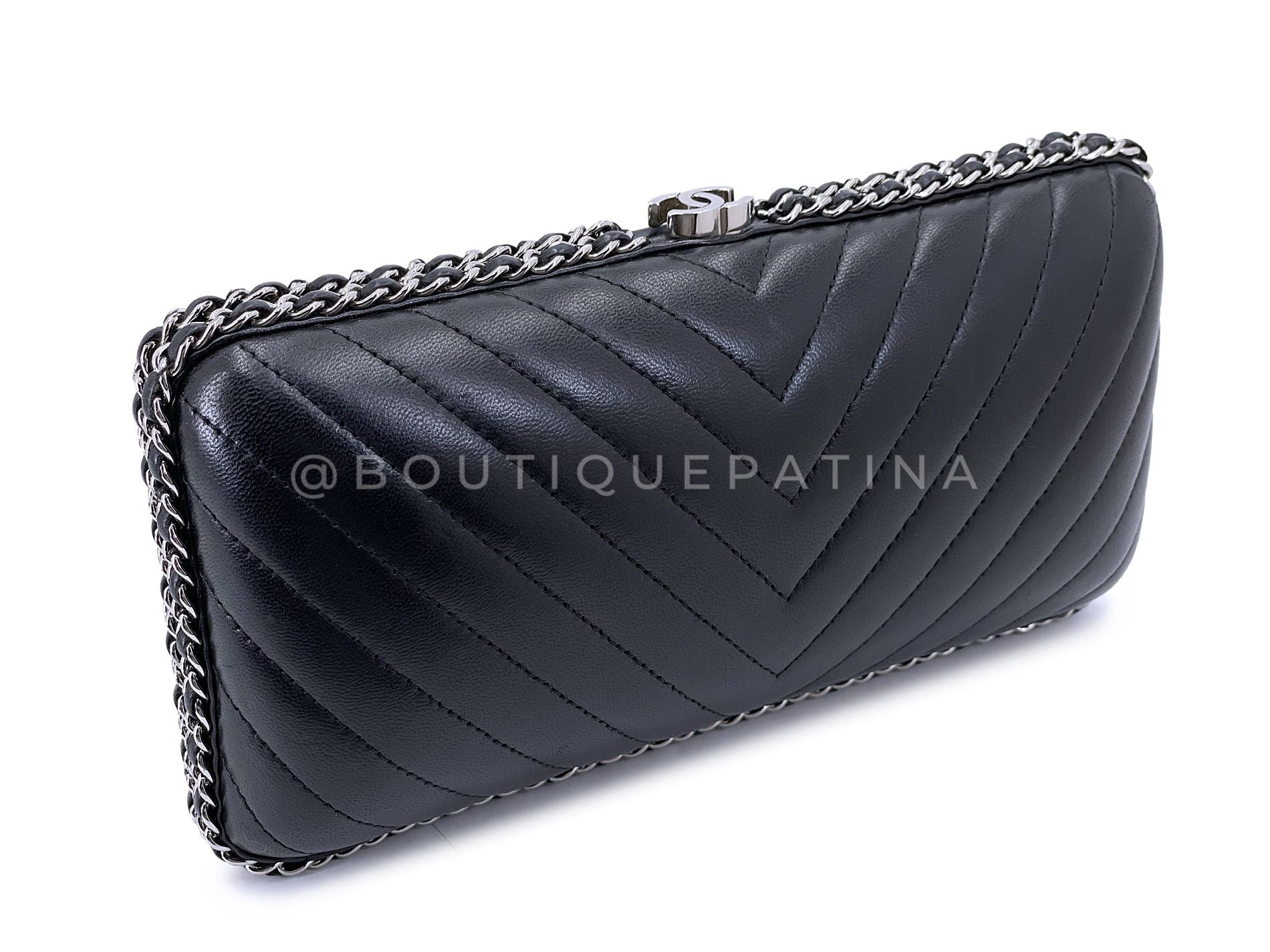 Chanel 2015 Black Chevron Hard Clutch on Chain Minaudière Evening Bag SHW JG3
