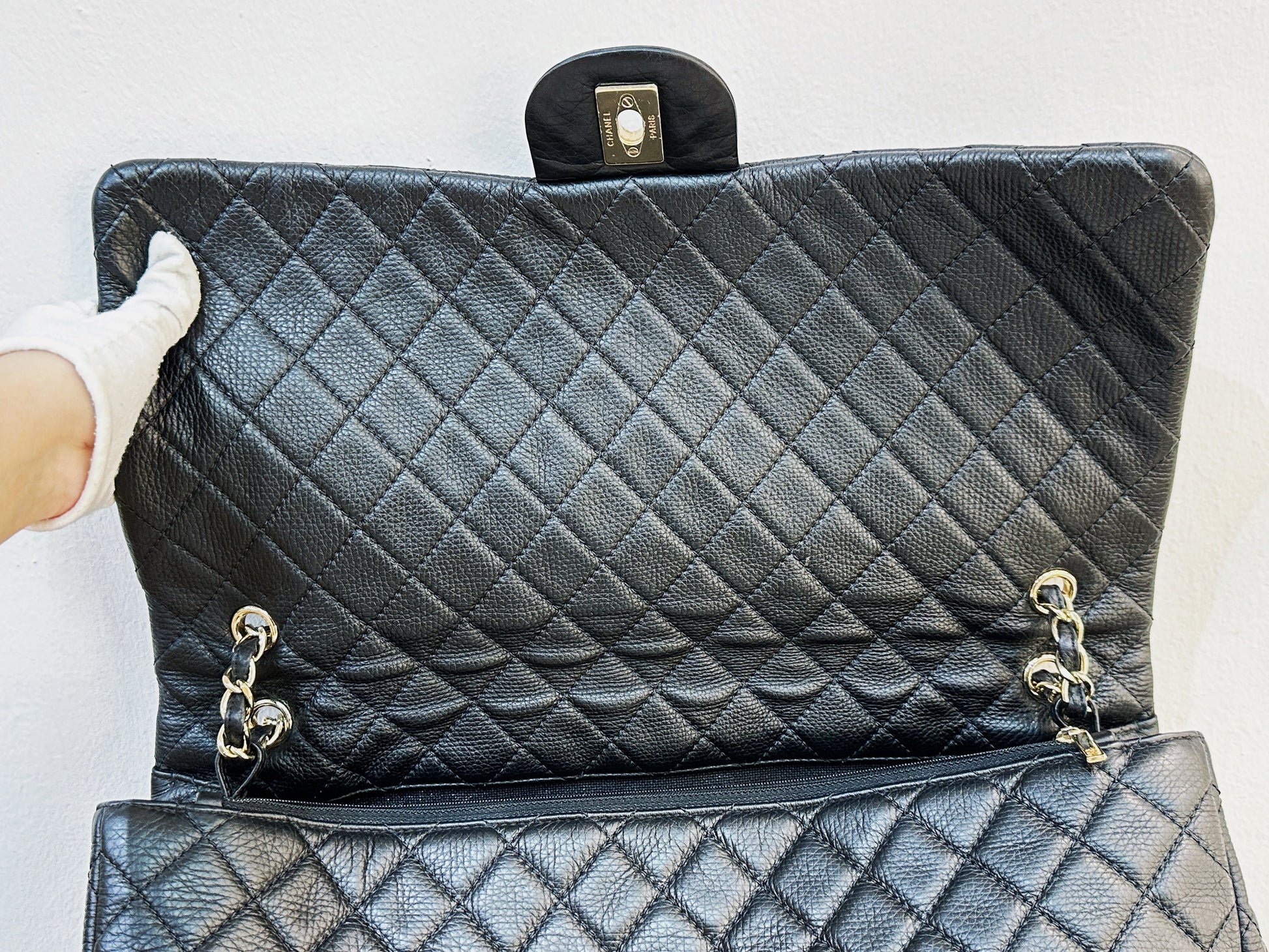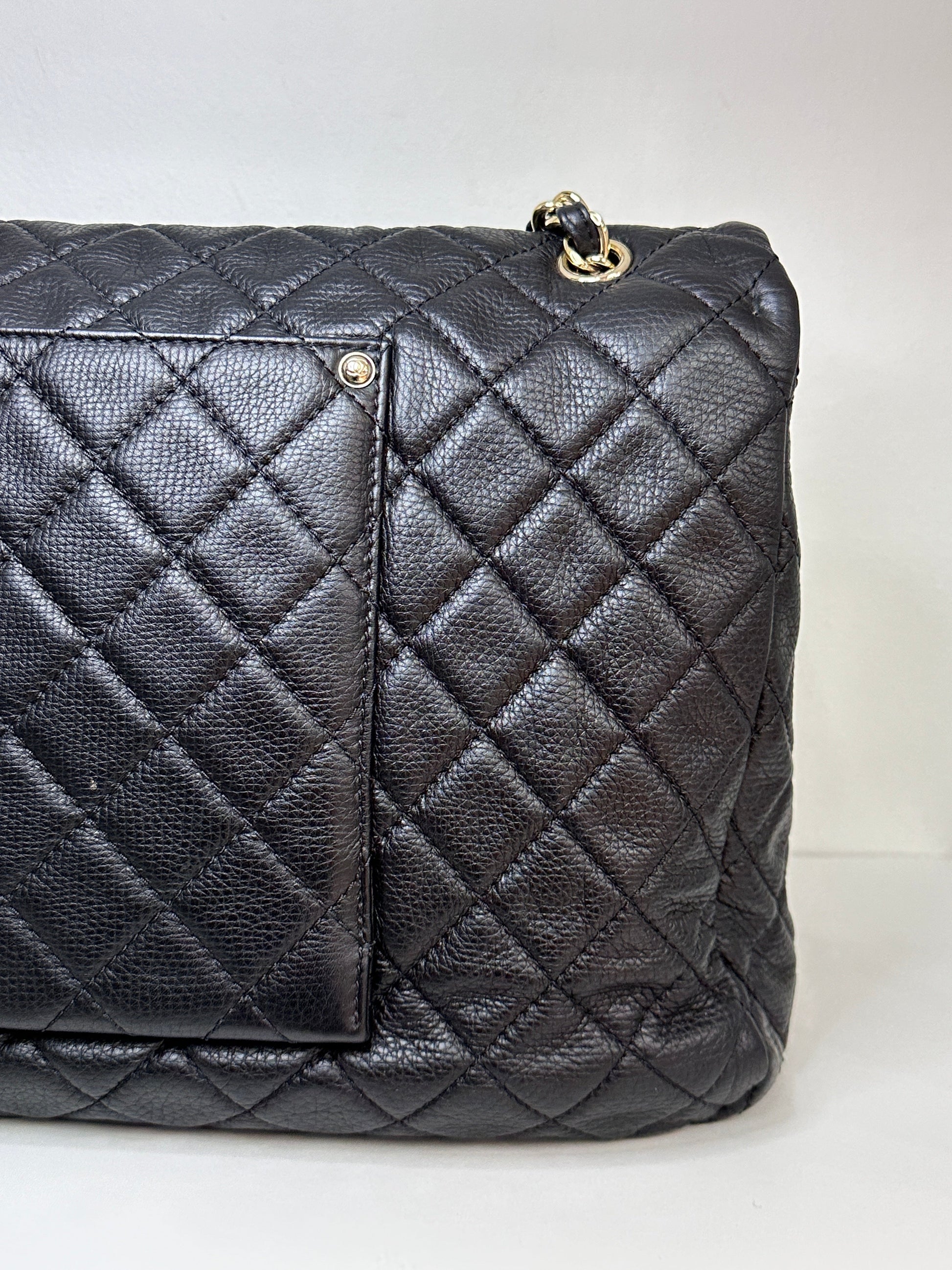 Chanel 2017 Calfskin Quilted XXL Travel Flap shoulder bag Black GHW 2382 holo card