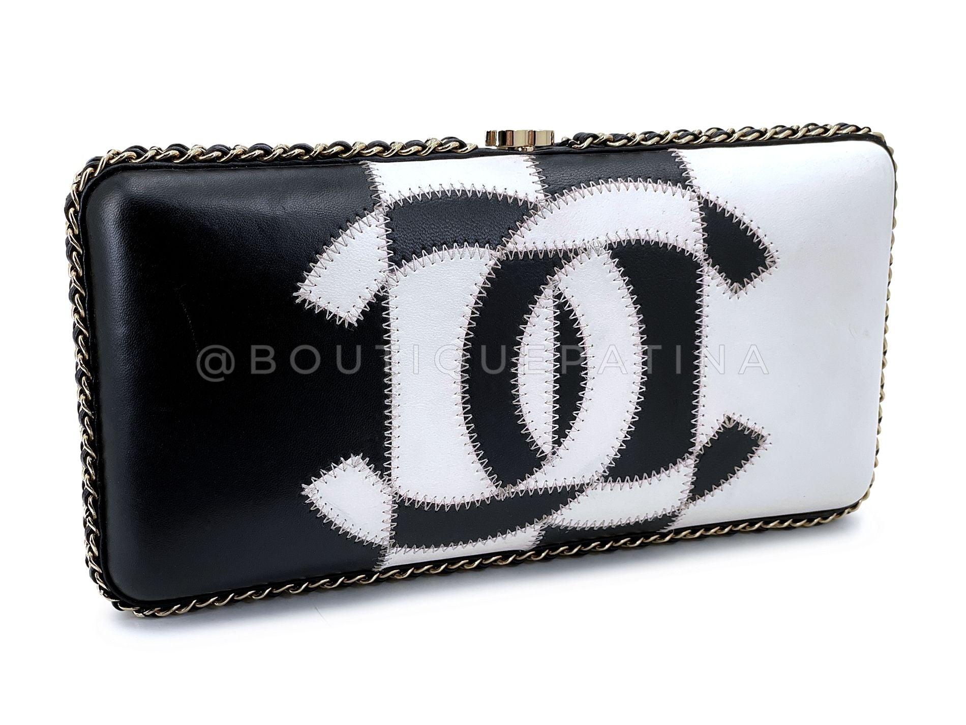 Chanel 2017 Black White Logo Clutch on Chain Bag GHW TUK