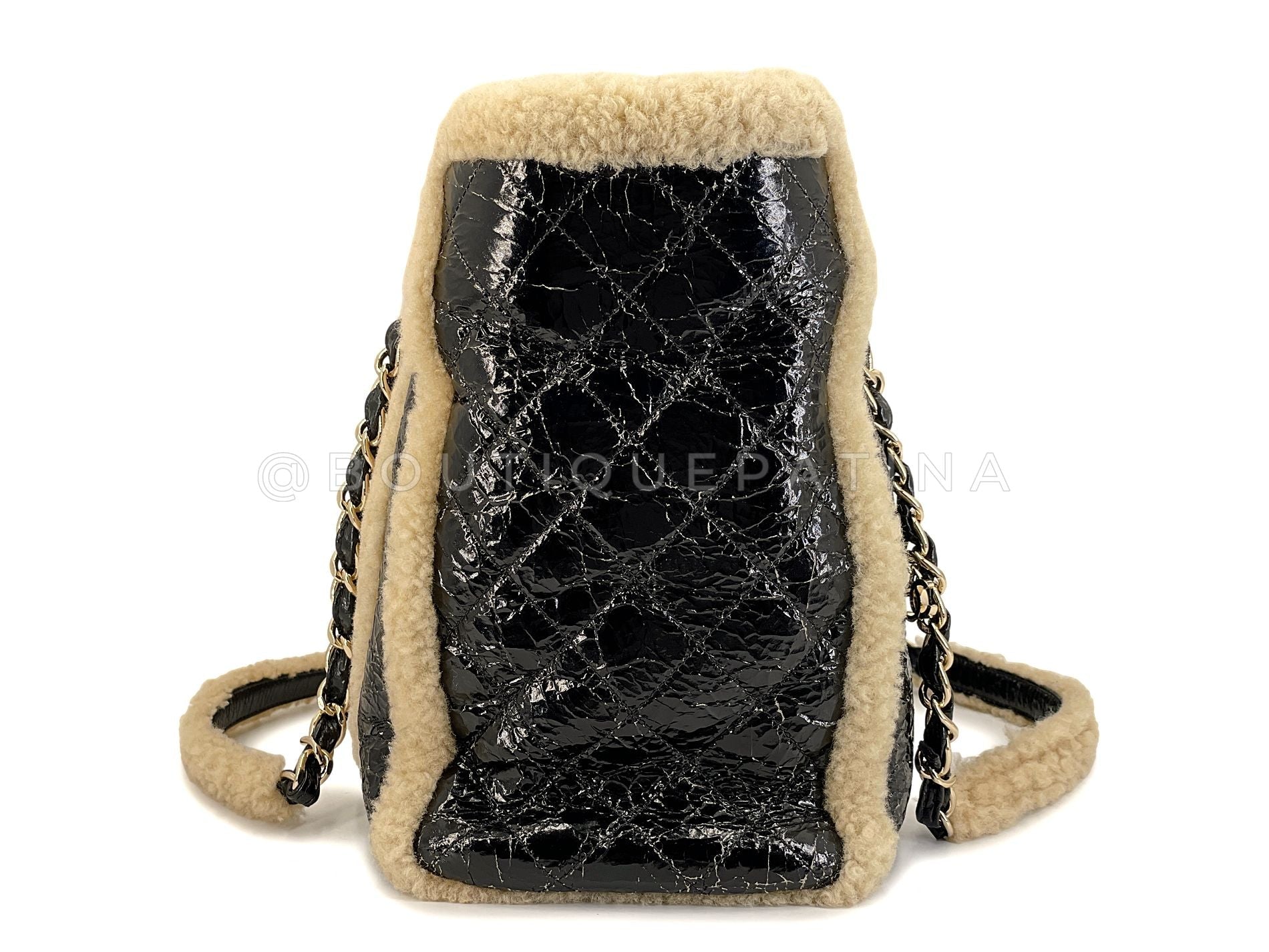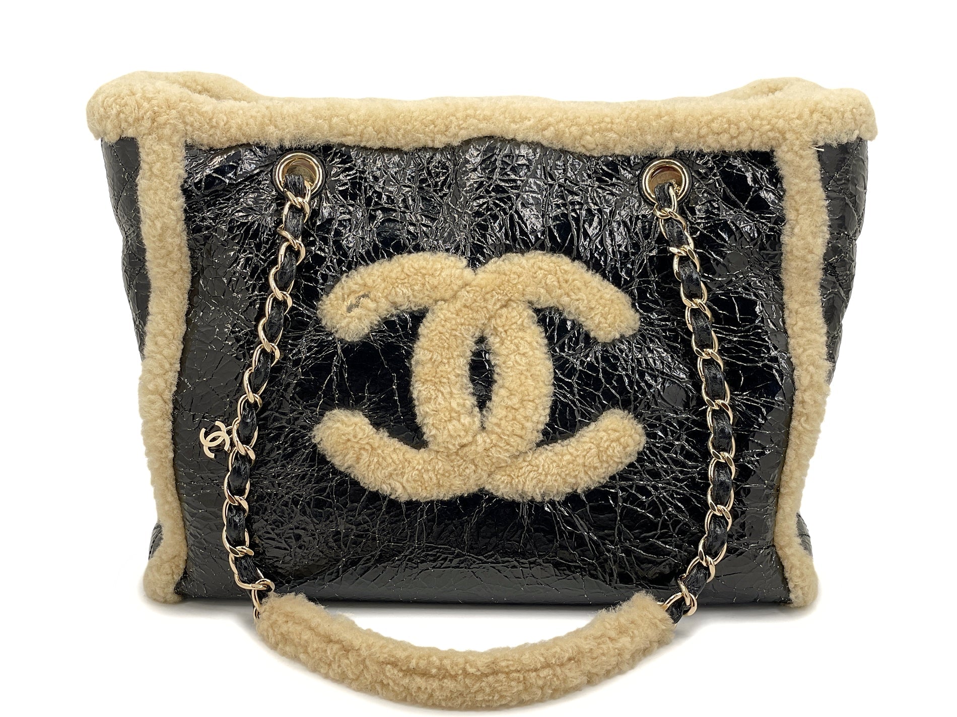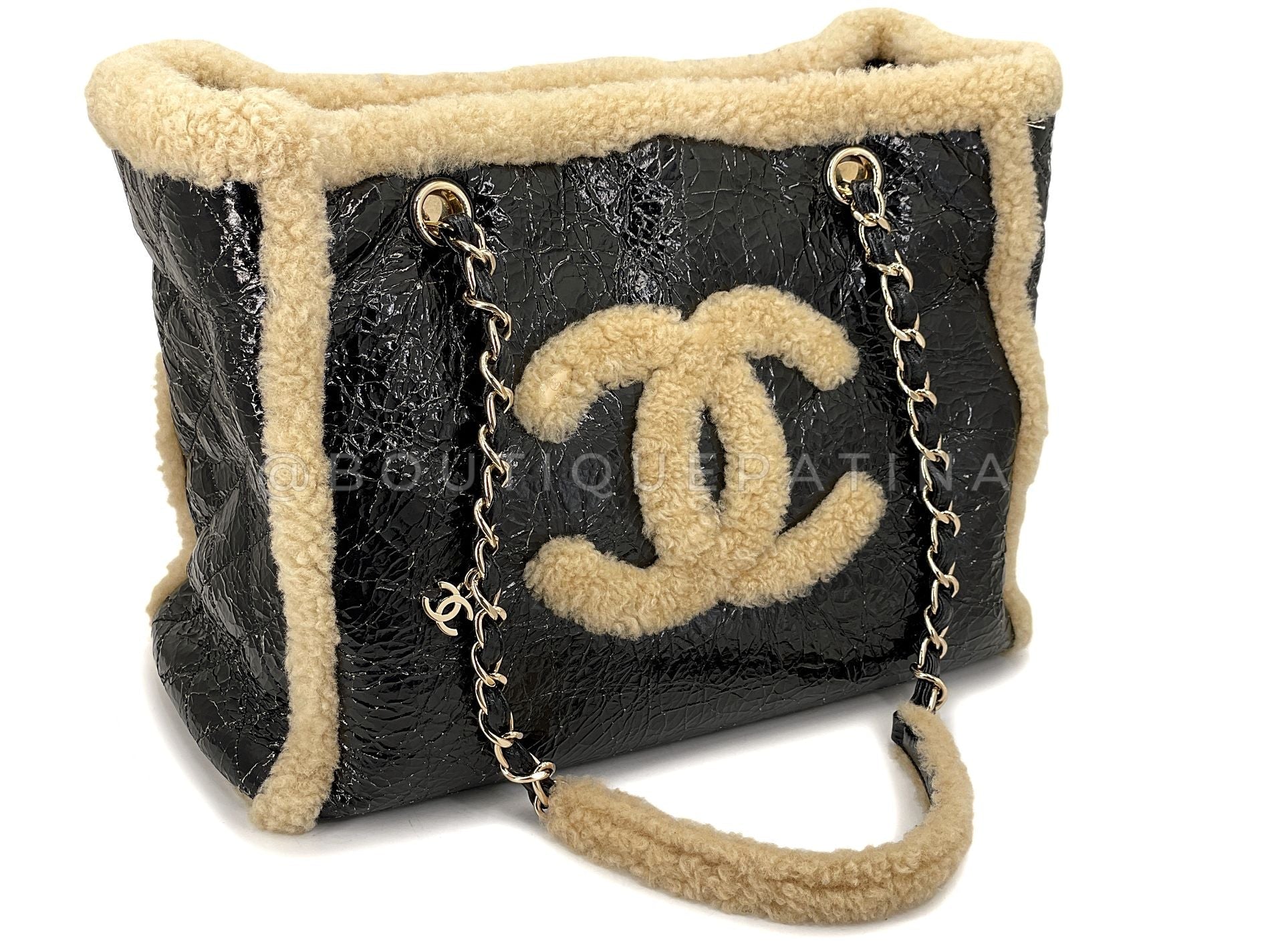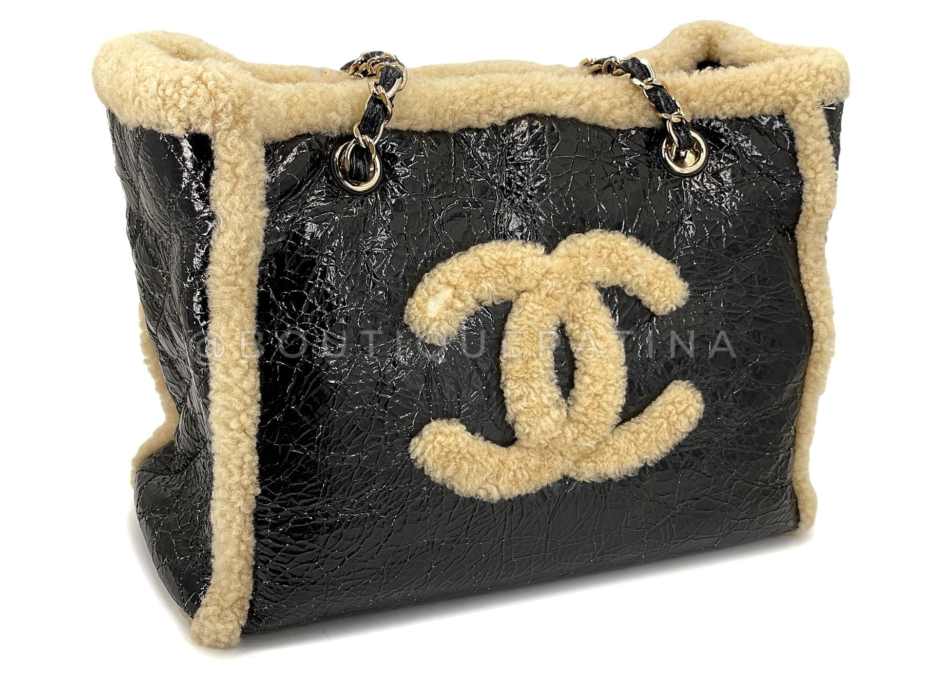 Chanel 2019 Black Shearling Shopper Tote Bag Distressed 2QI