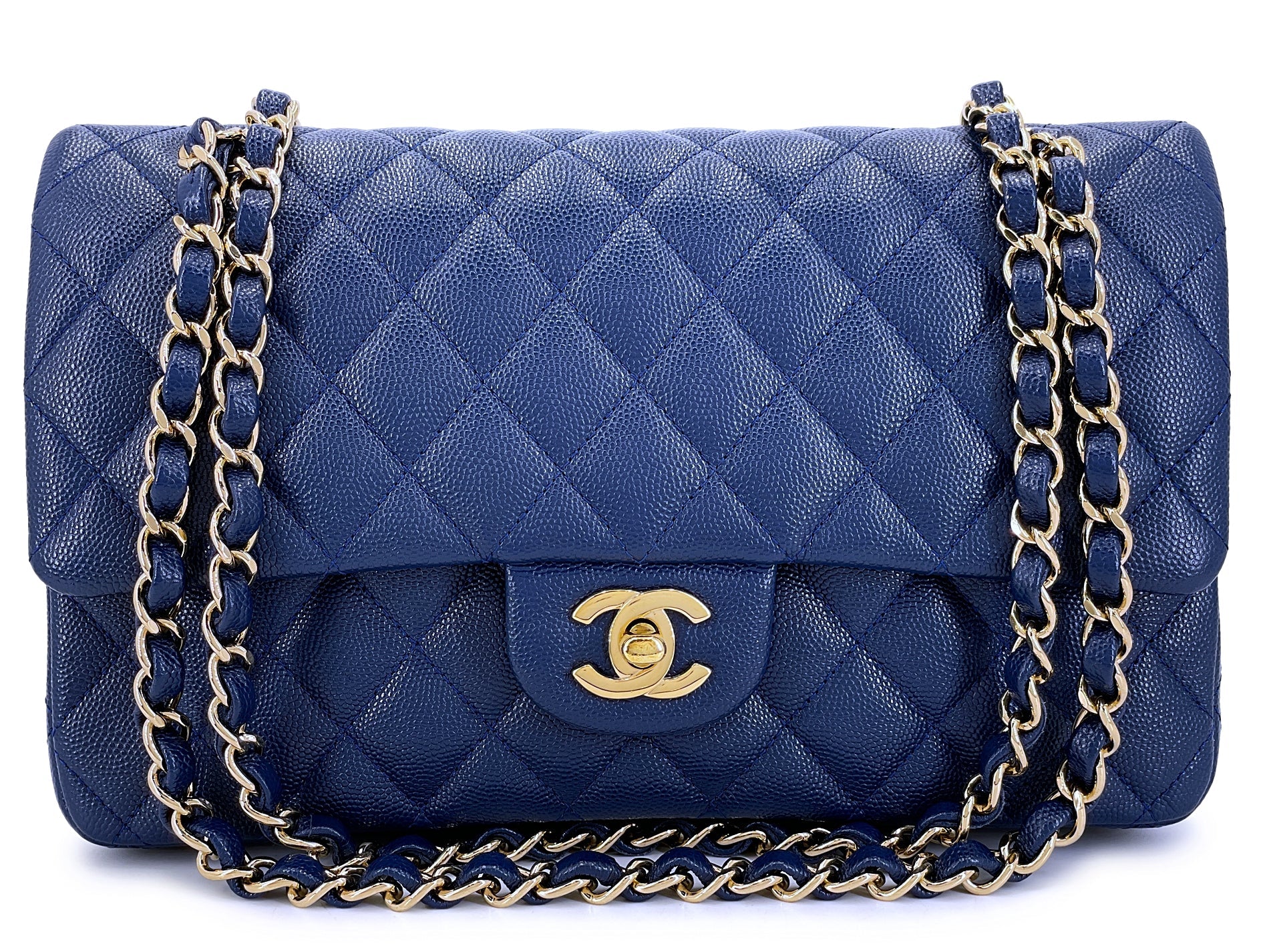 In Navy Blue caviar leather and gold hardware. For more than 20 years, Boutique Patina has specialized in sourcing and curating the most pristine vintage and collectible accessories by searching closets around the world. Produced in 2019, almost 5 years old and in stunning condition.