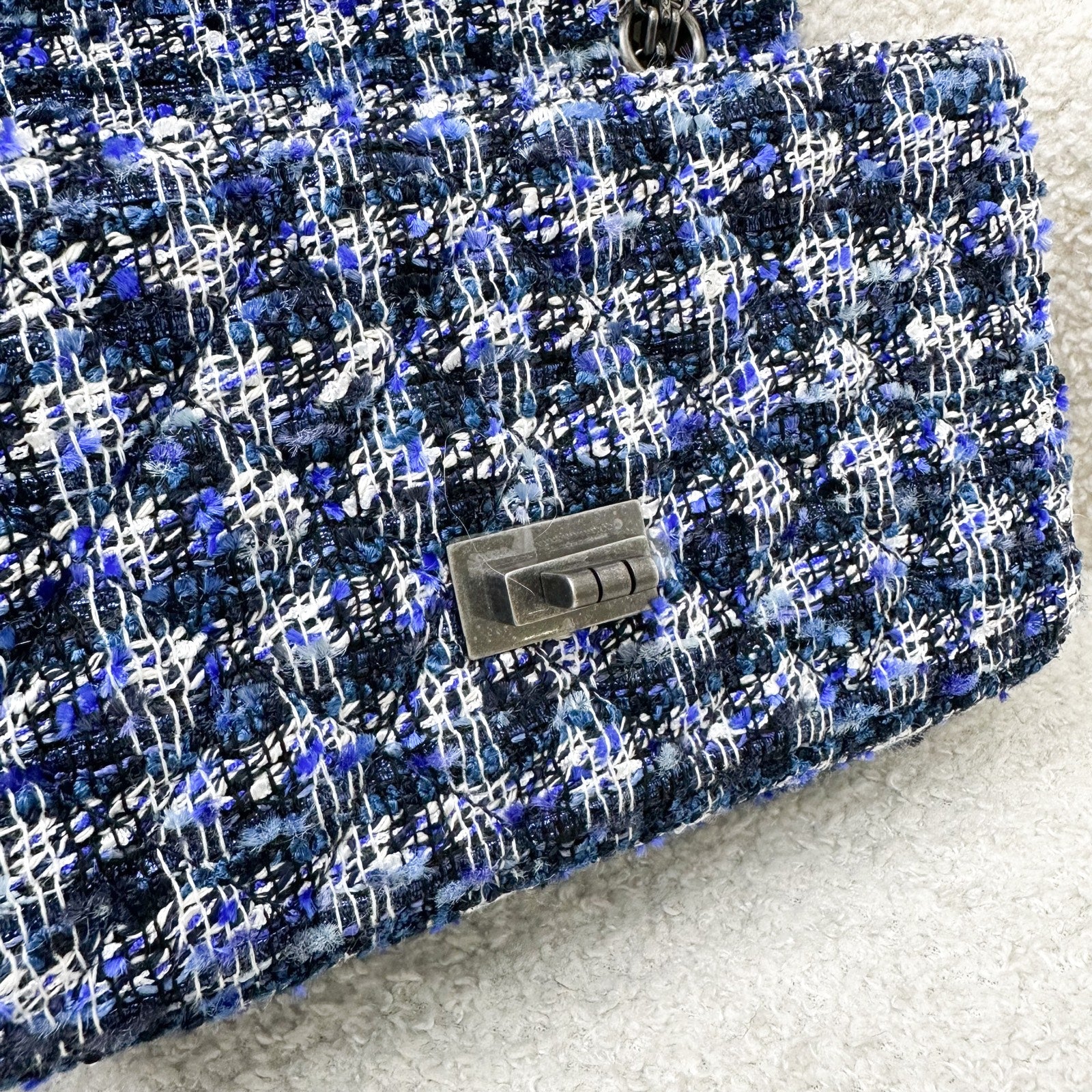 Chanel 2.55 Reissue Mini Flap in 20P Navy / Blue / Black Tweed and RHW
