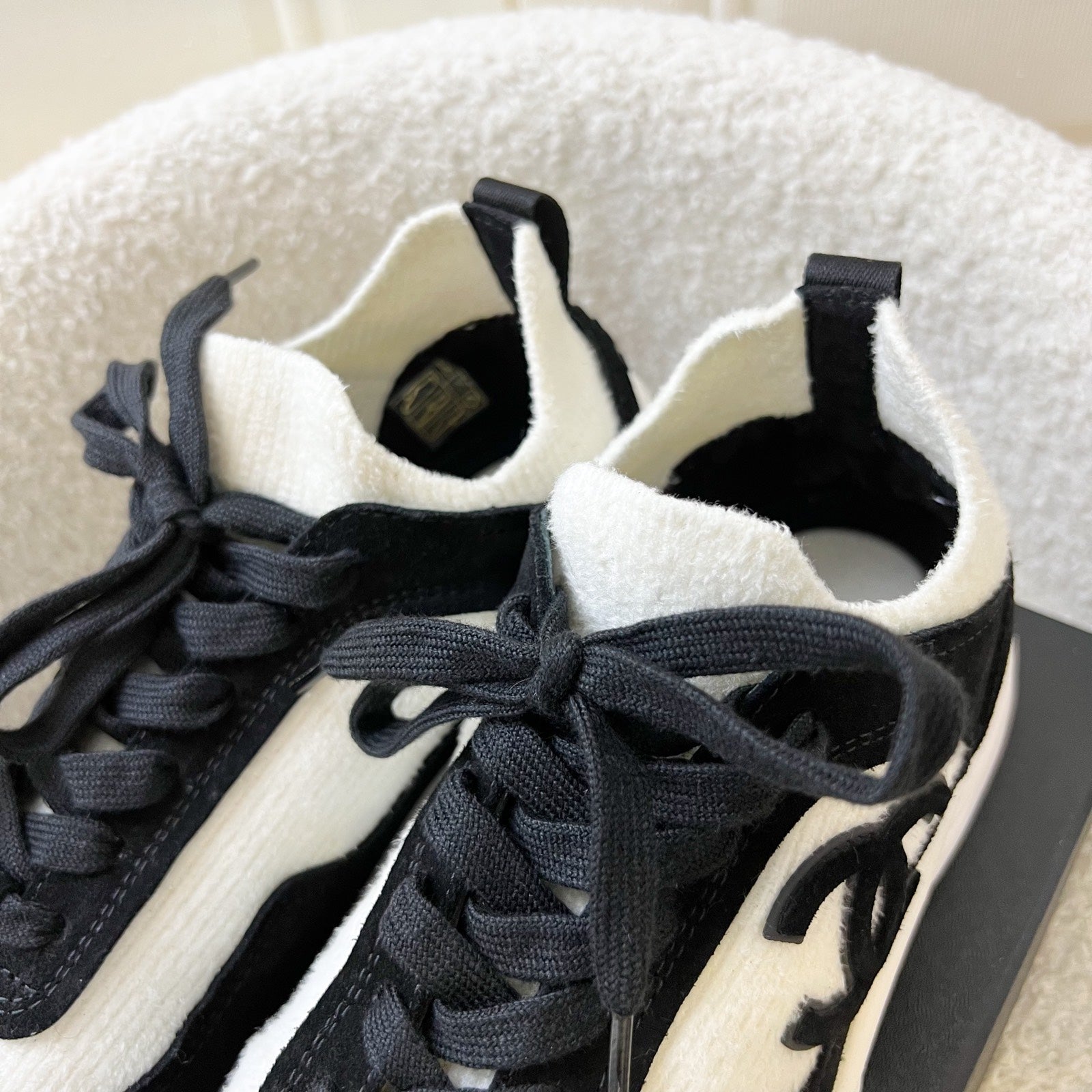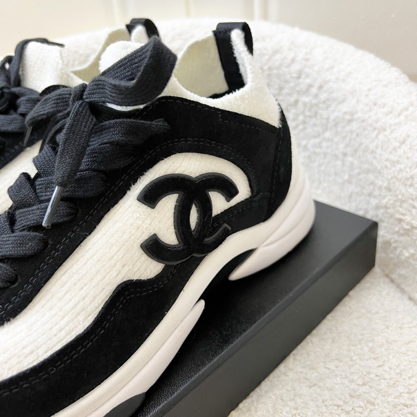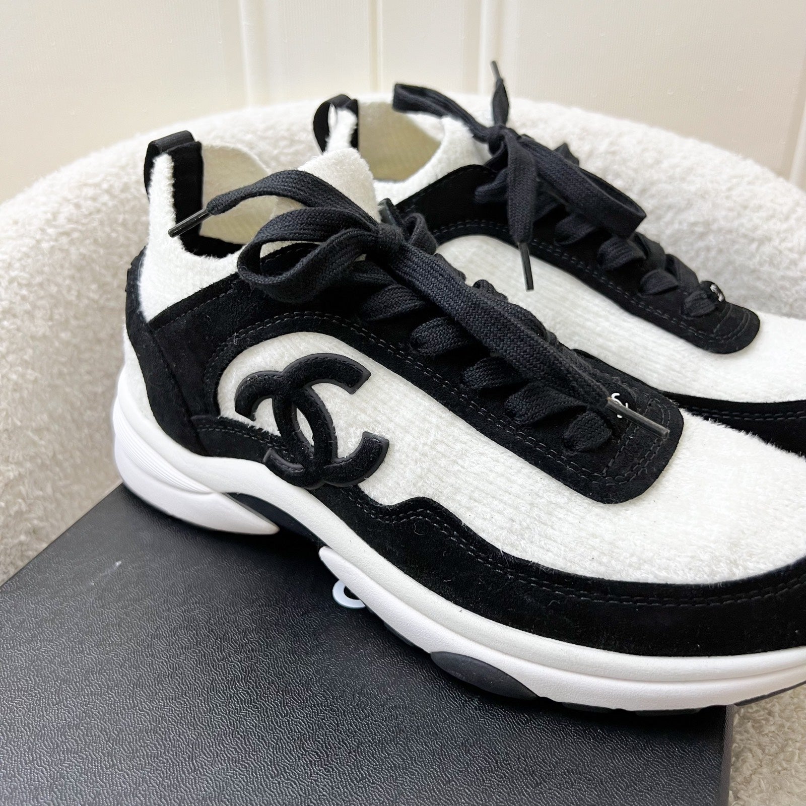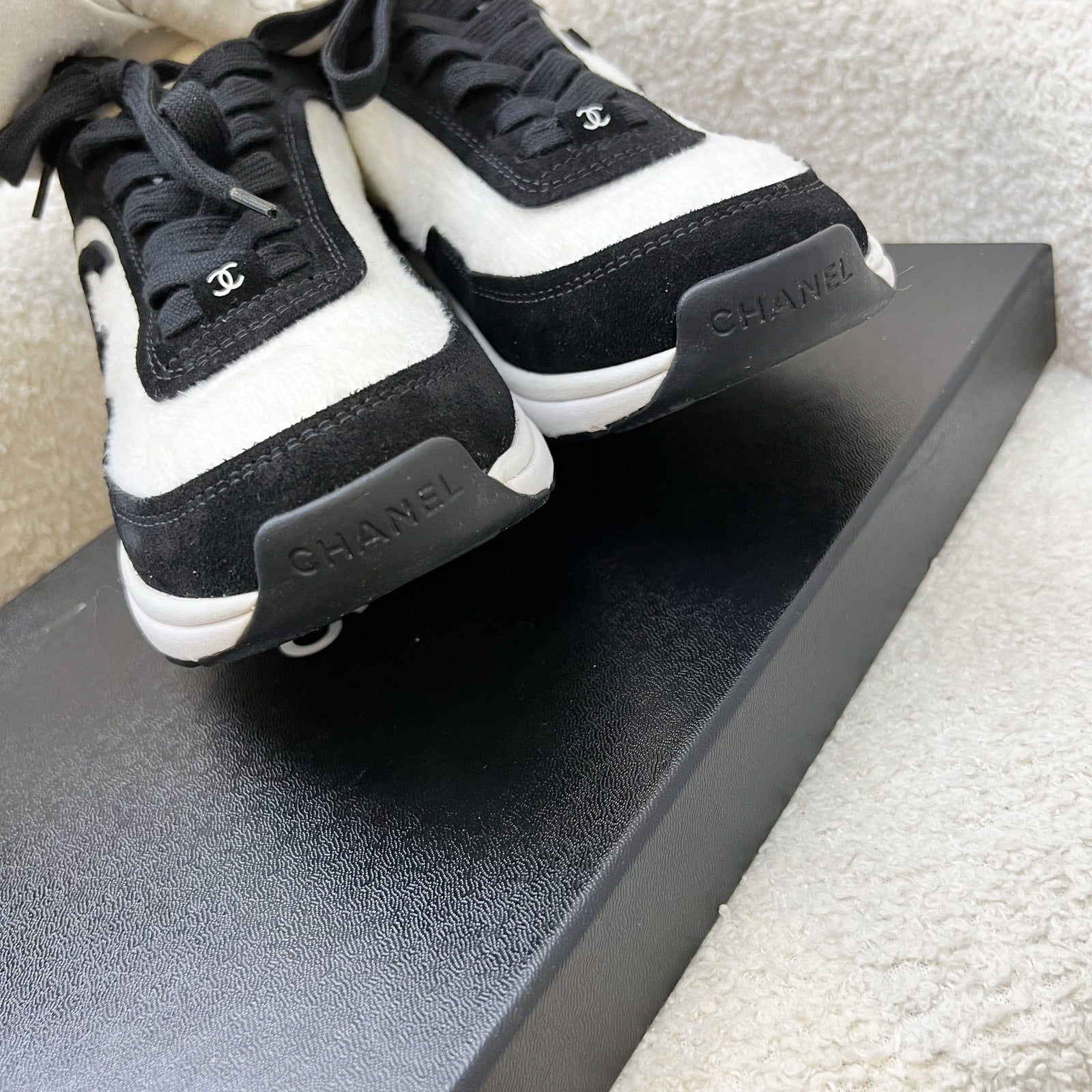 Chanel 21A Sneakers / Trainers in Black Suede and White Fabric Size 38