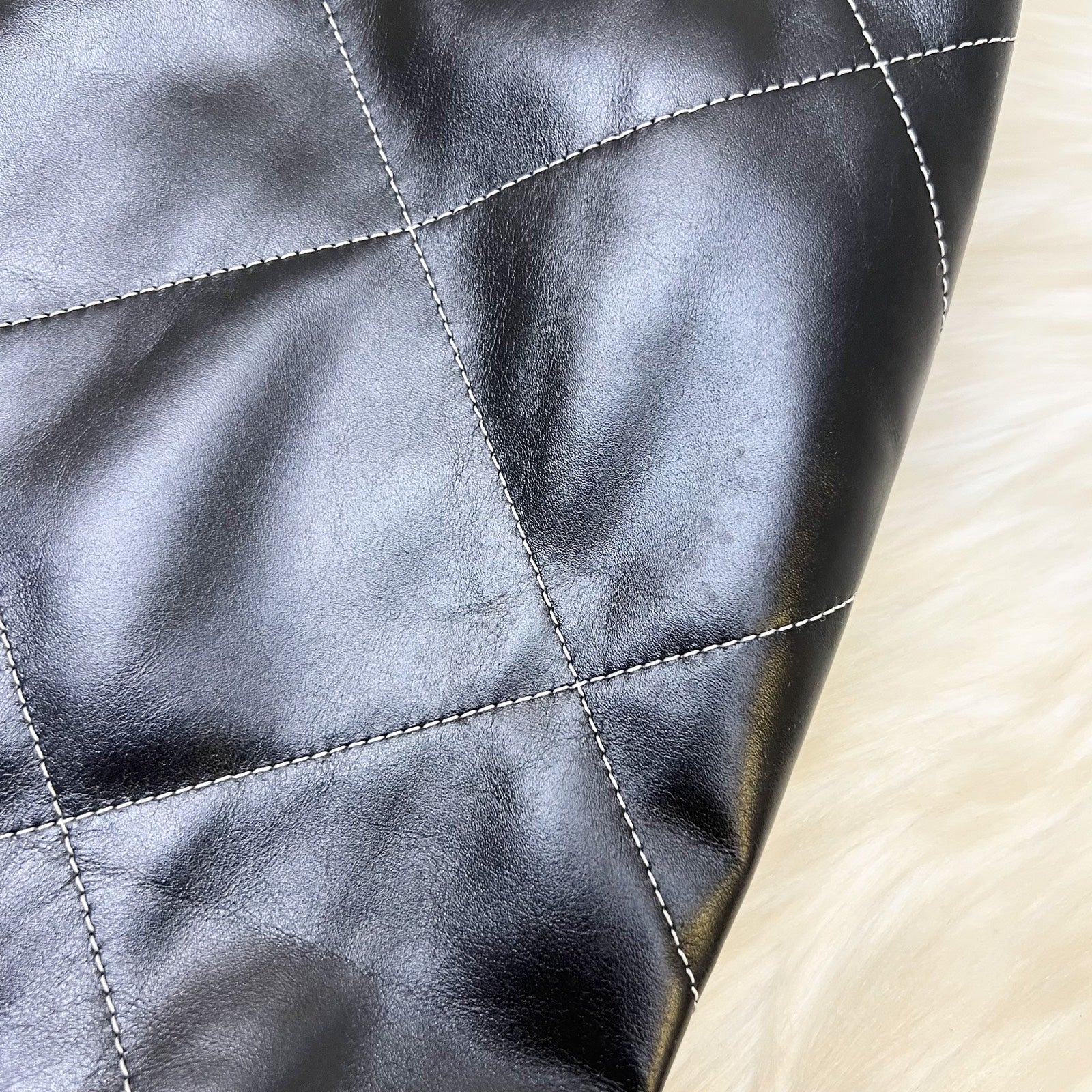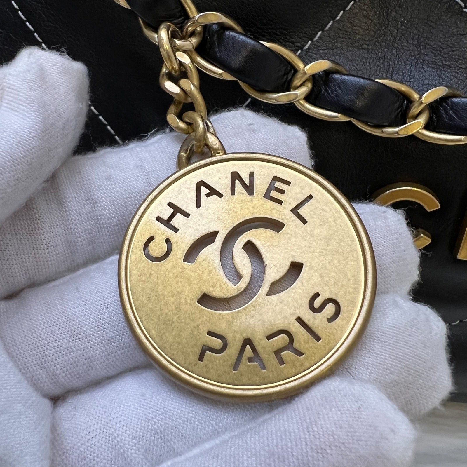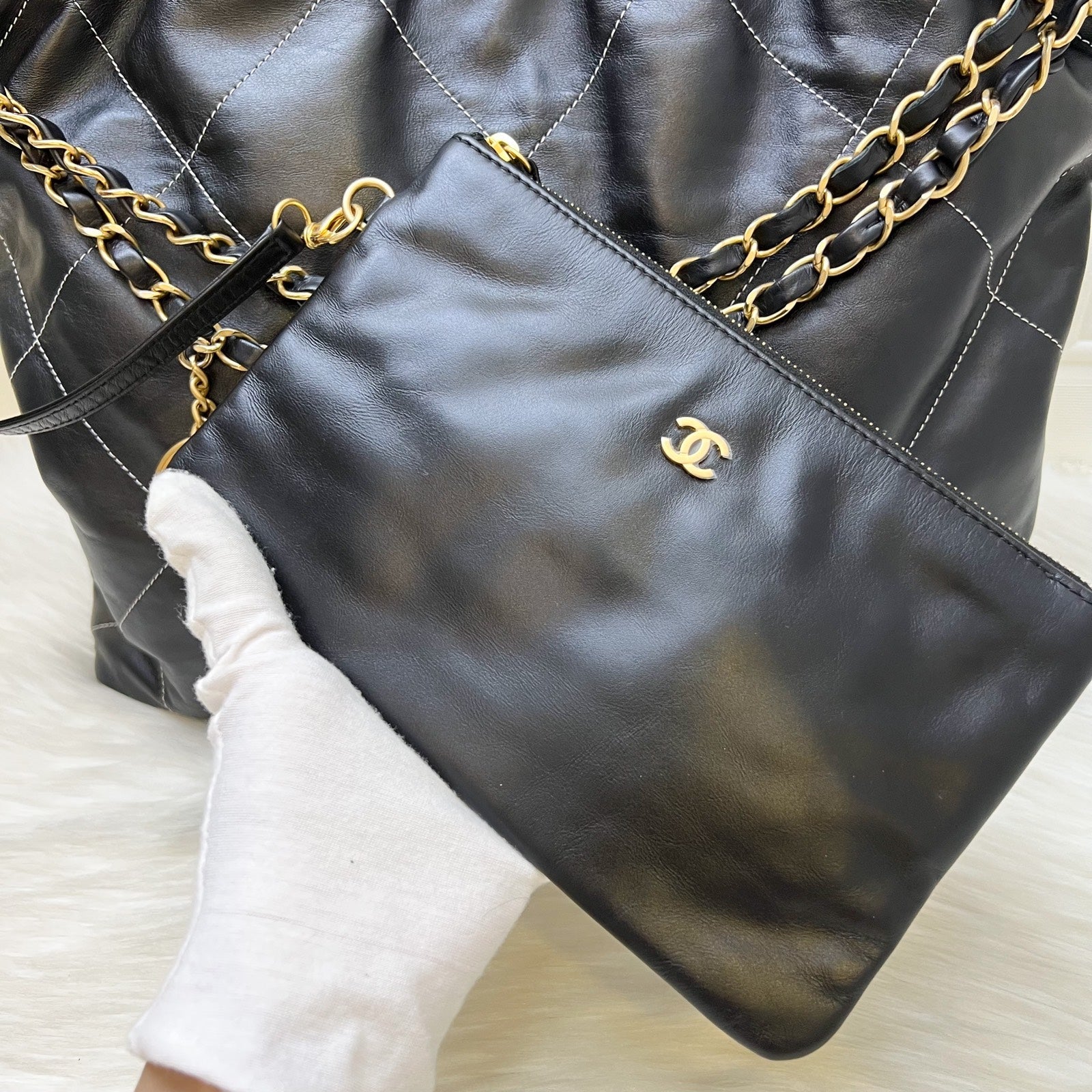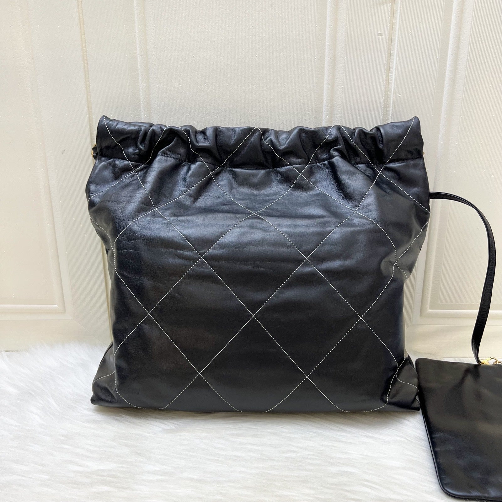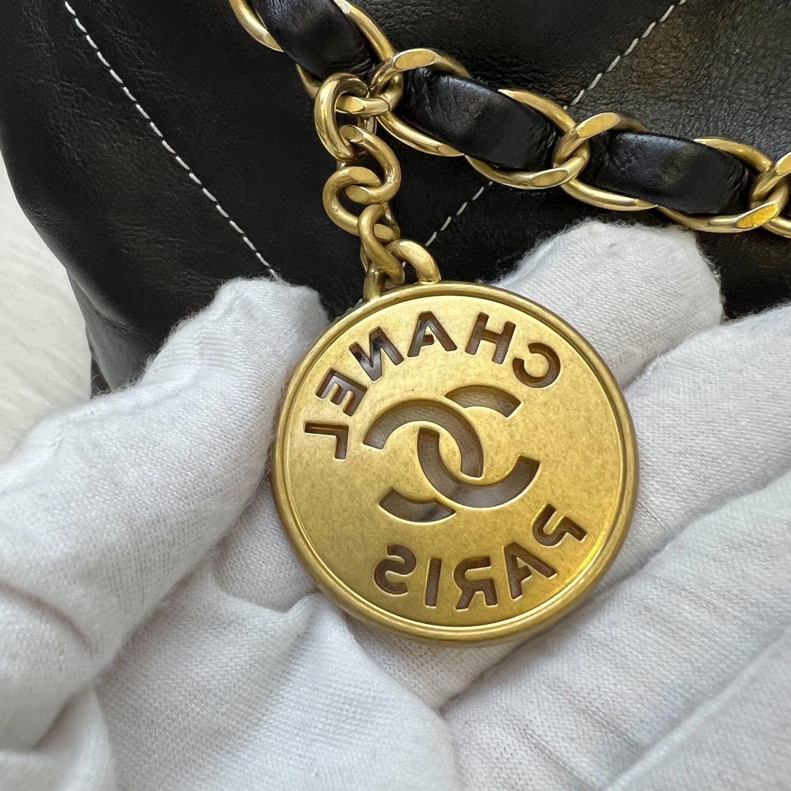 Chanel 22 Medium Hobo Handbag in Black Calfskin with White Stitch Quilting and AGHW (Model: AS3261)