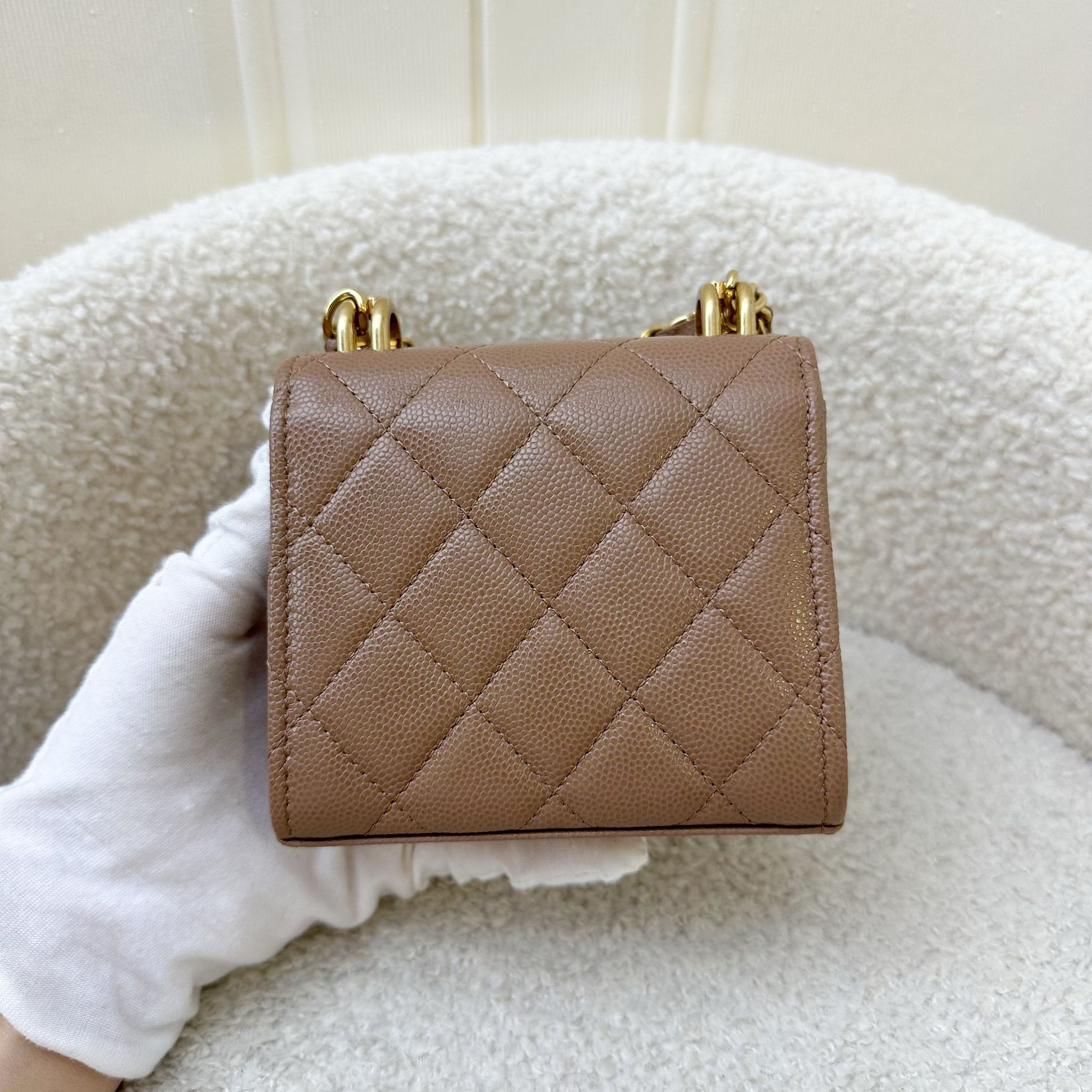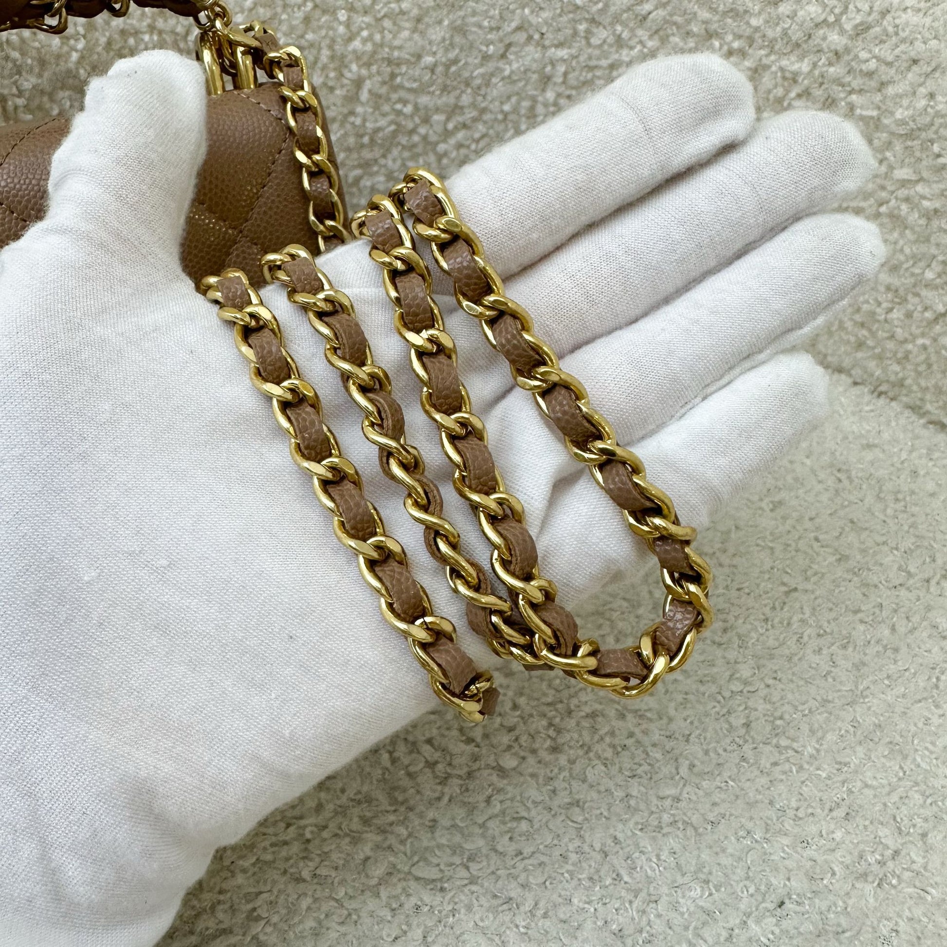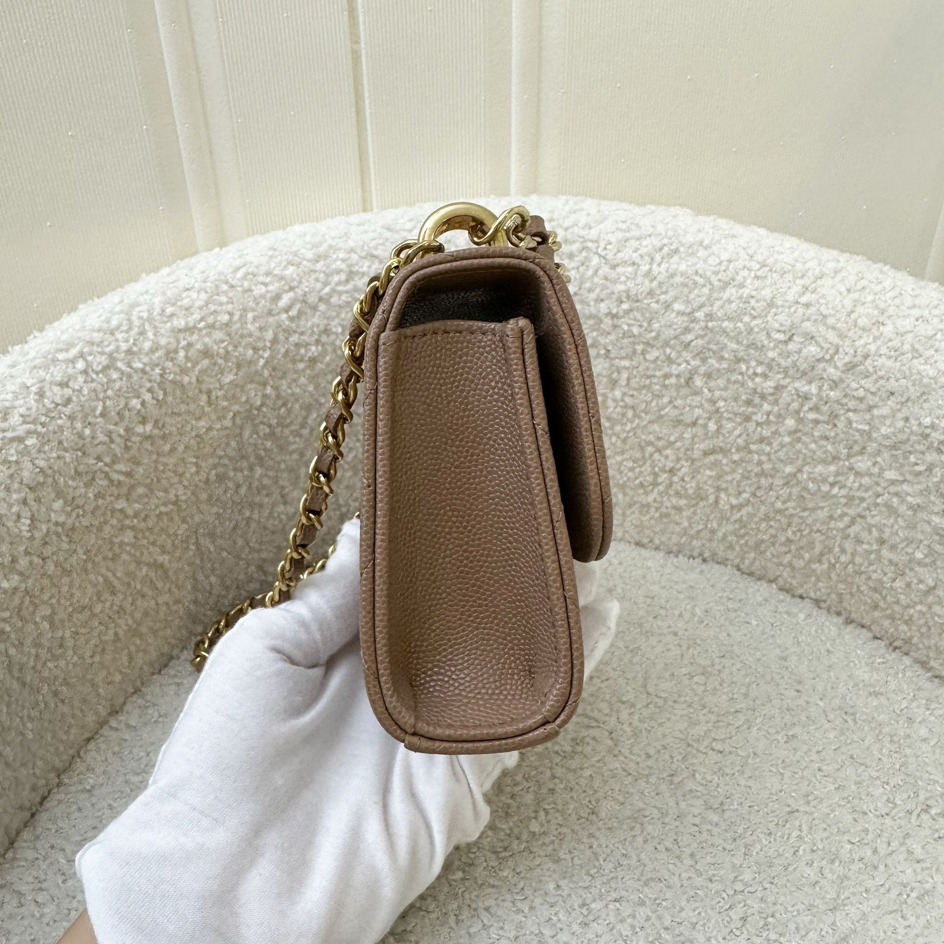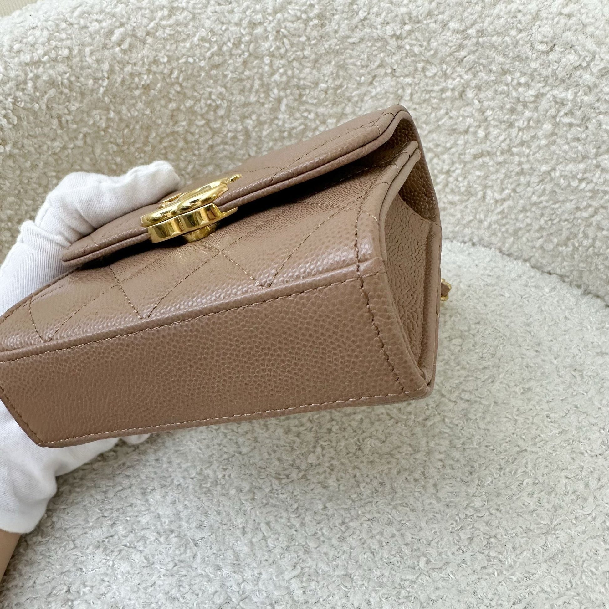 Chanel 22K Coco First Mini Clutch with Chain in Dark Milk Tea Beige Caviar LGHW