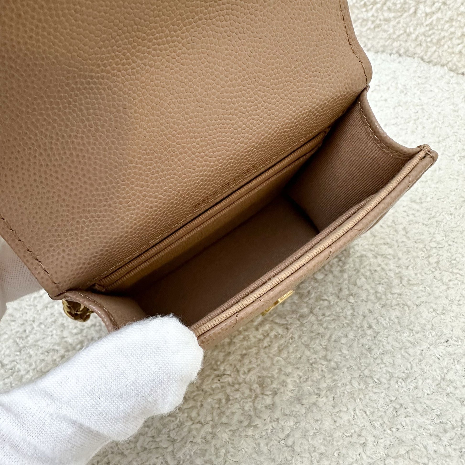 Rare and highly coveted micro bag! Super gorgeous milk tea beige caviar.