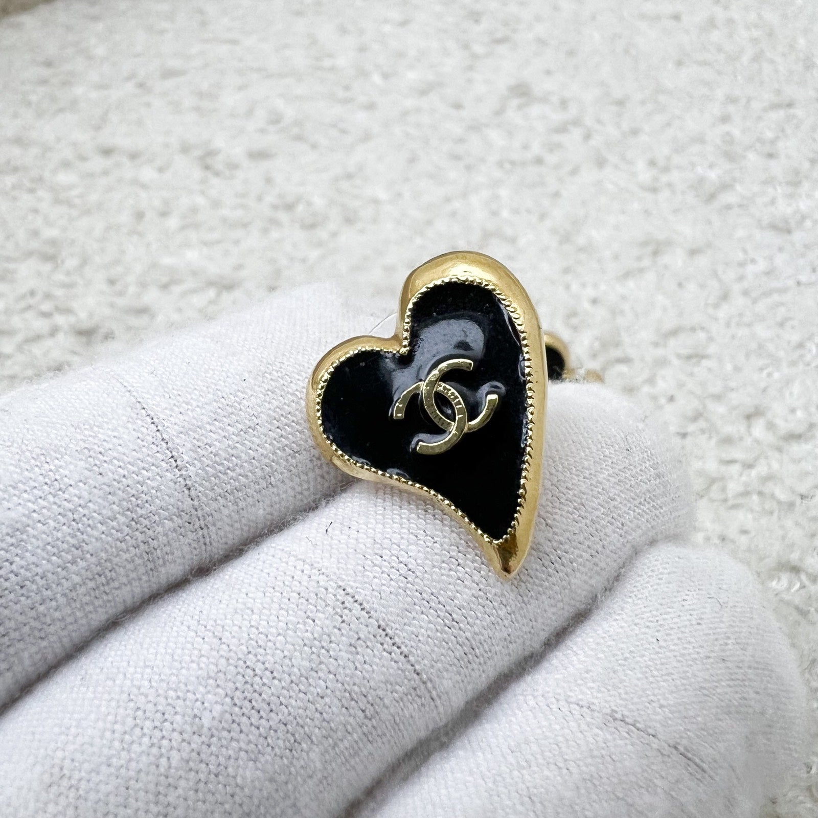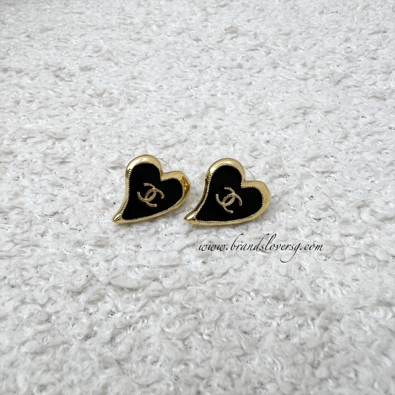 Chanel 22P CC Logo Heart Earrings in Black Enamel and AGHW