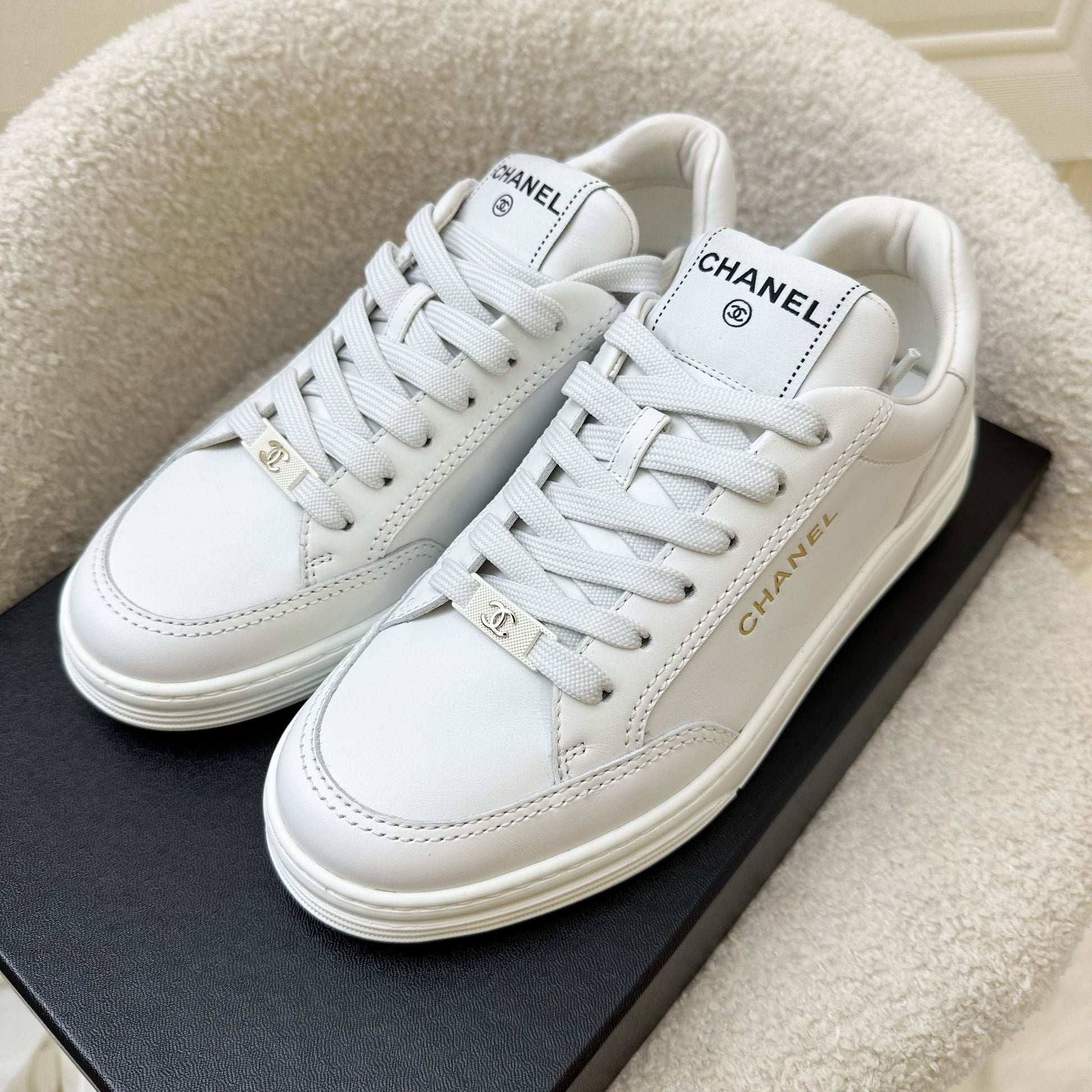 Chanel 23A Sneakers in White Calfskin Sz 37