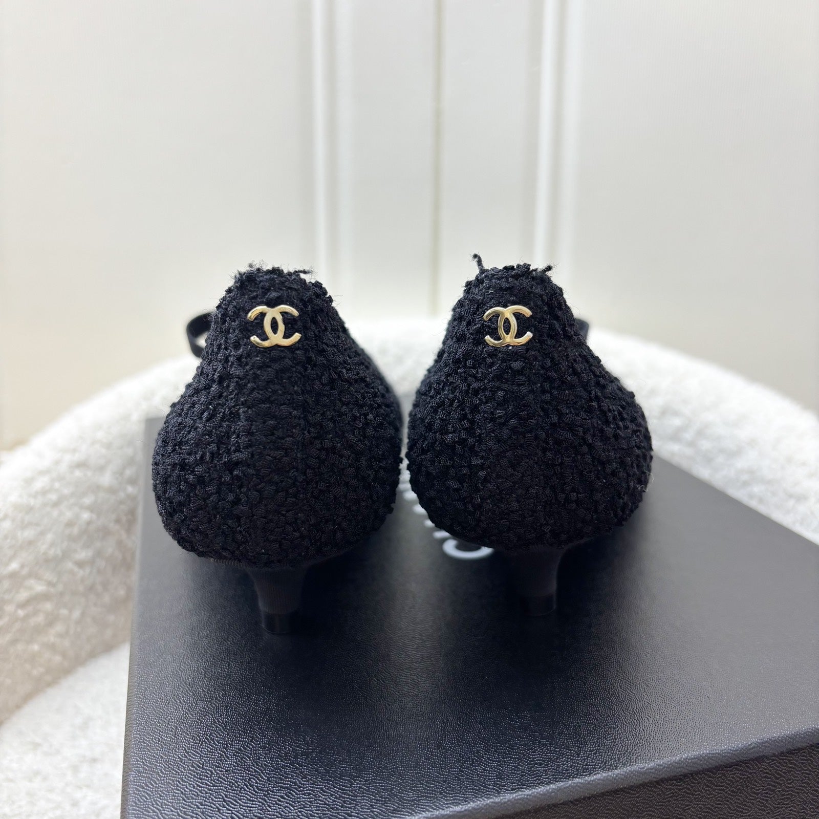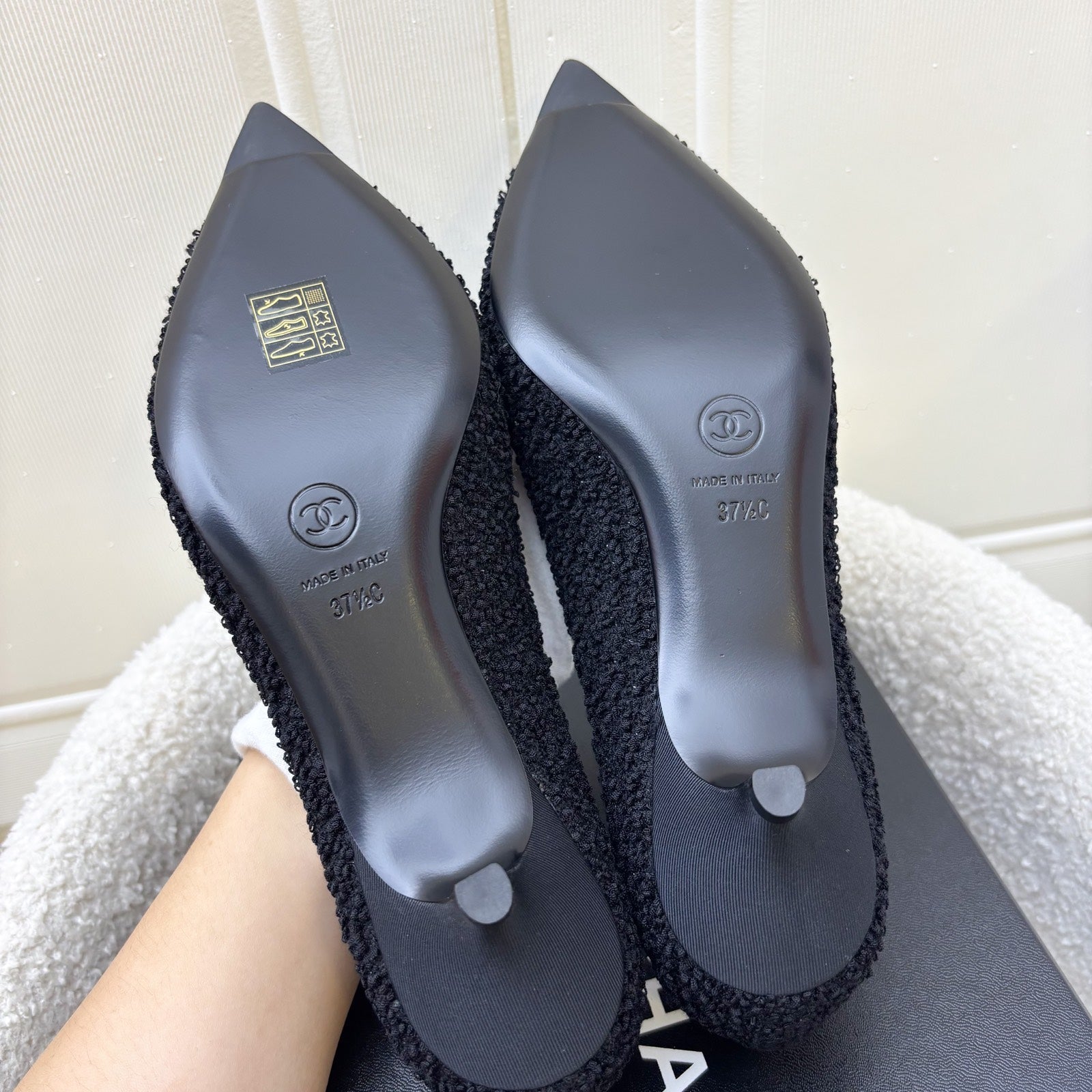 Chanel 24A Mary Janes in Black Tweed and Gosgrain Sz 37.5