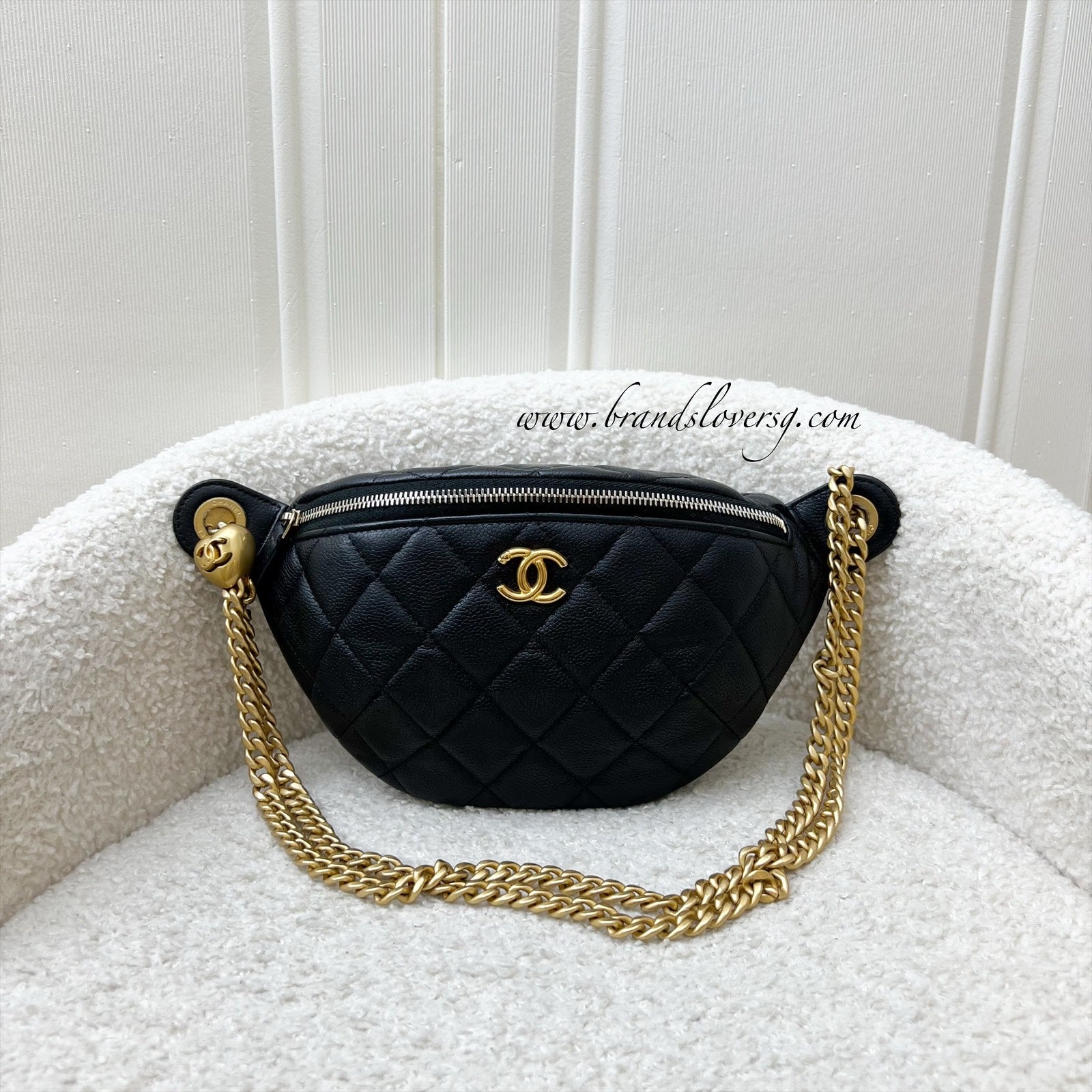 Chanel 24P Heart Adjustable Chain Waist Bag in Black Caviar and AGHW (Model: AP3761)