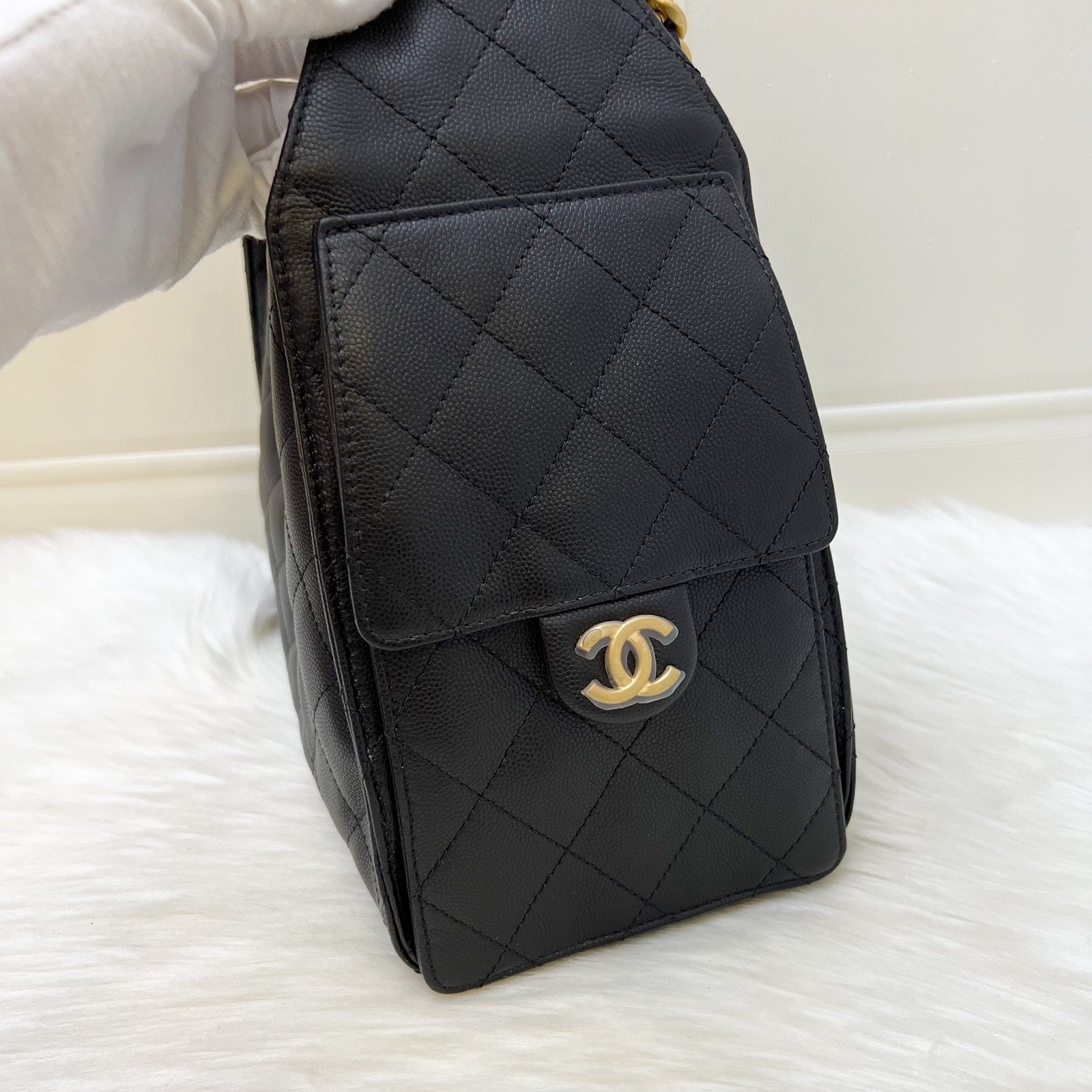 Chanel 25 Small Hobo Bag in Black Caviar and AGHW (Model: AS5293)