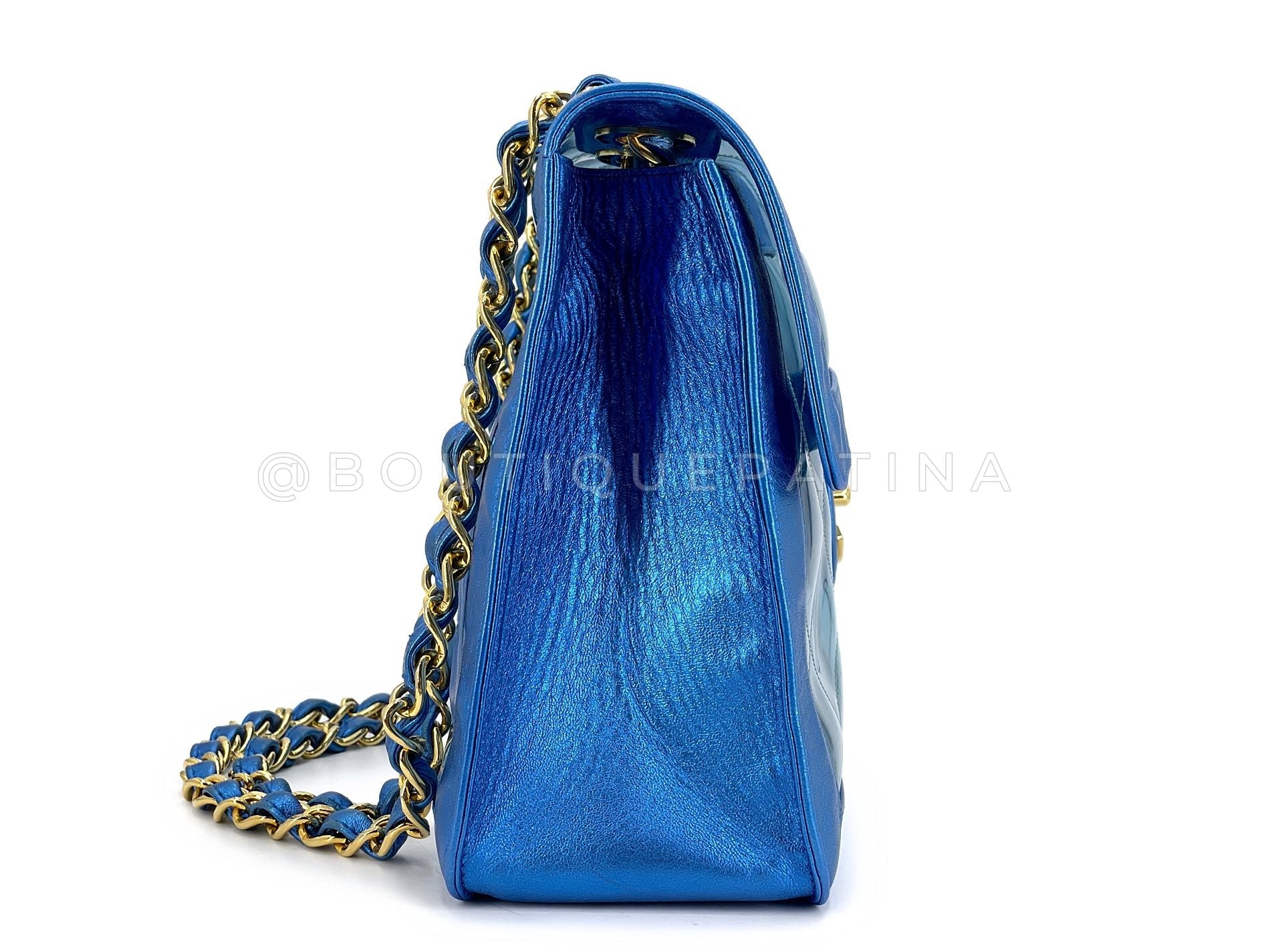 Chanel 95P Vintage "Barbie" Maxi Flap Metallic Blue Bag 24k GHW Classic PCI