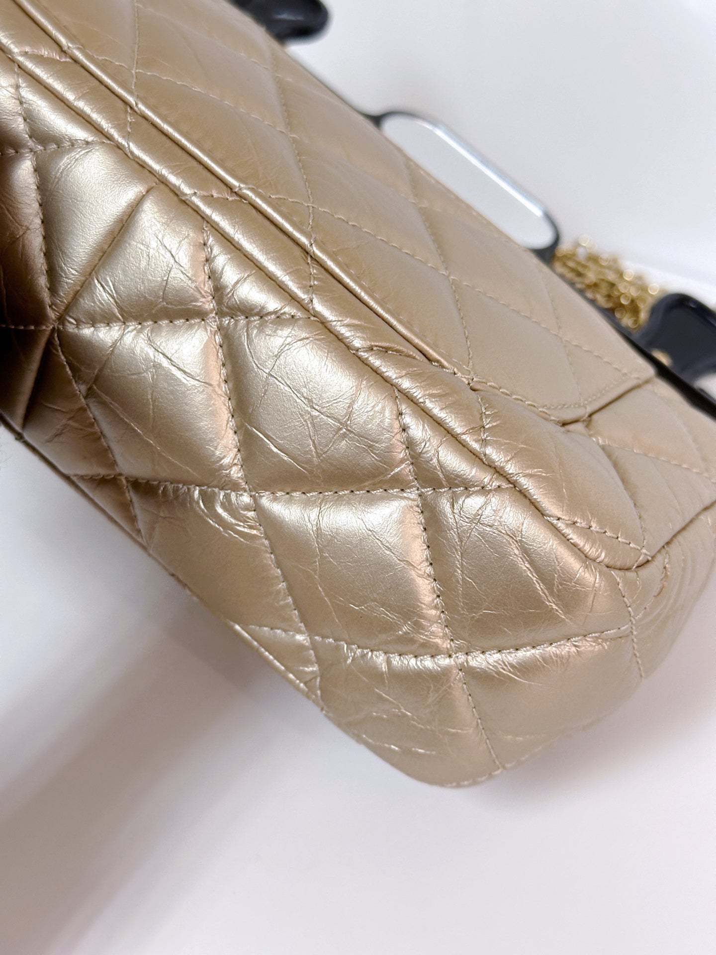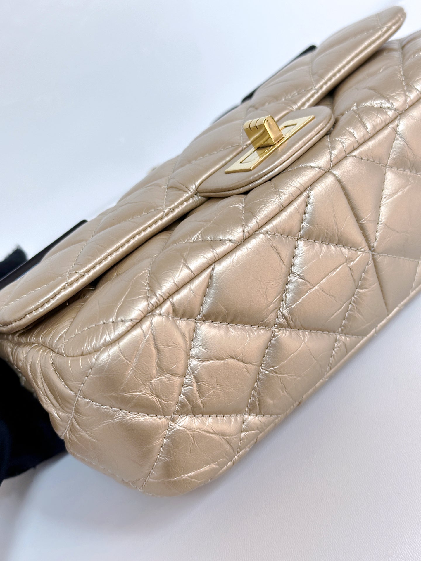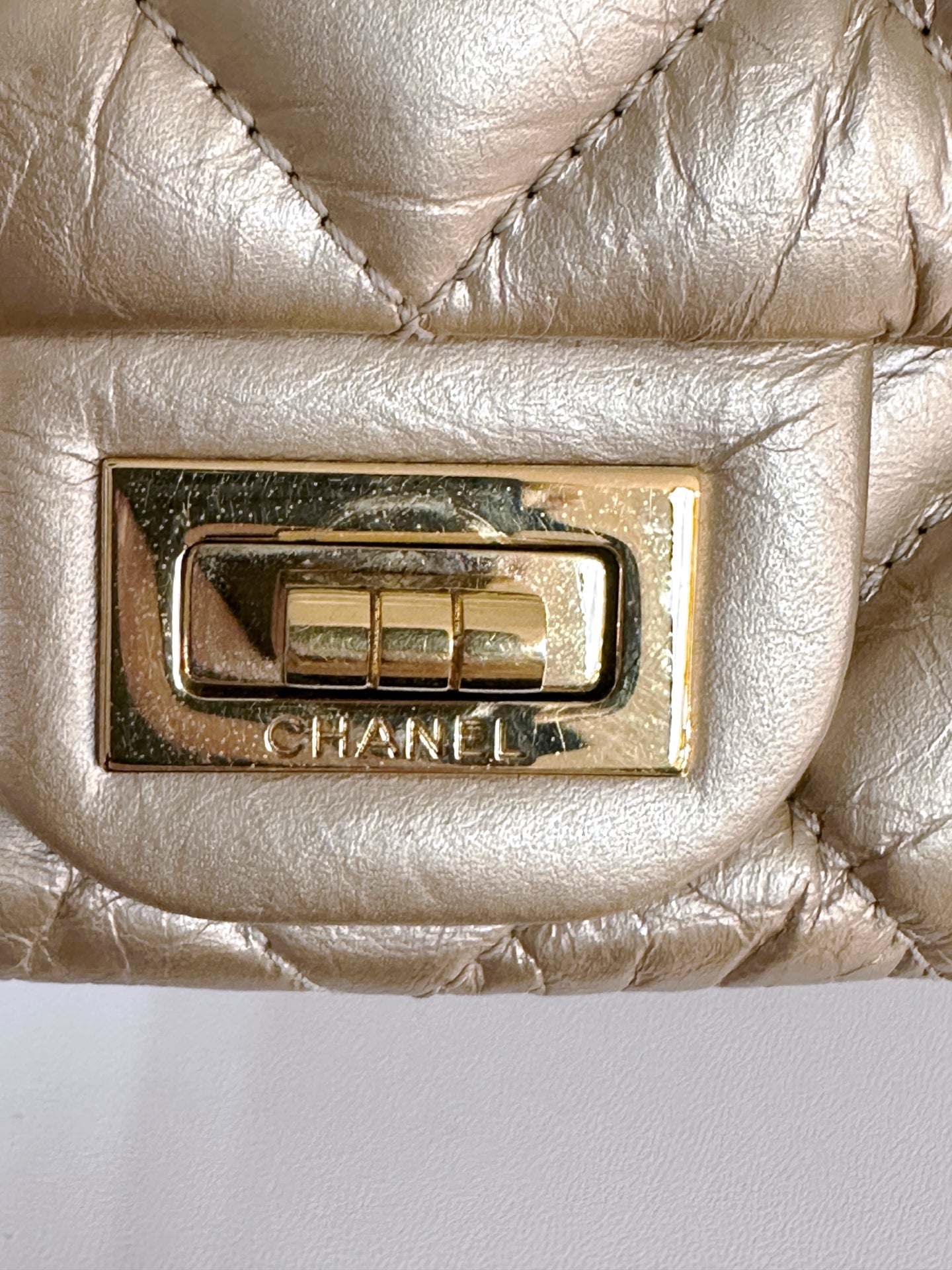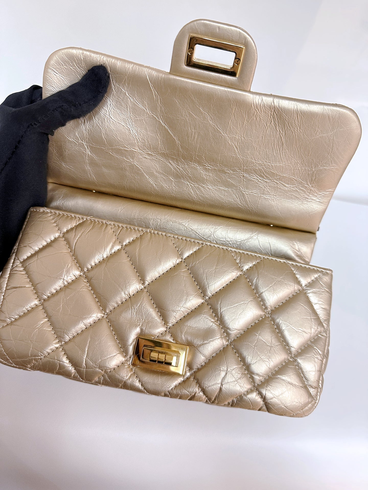 Chanel Aged Calfskin Quilted 2.55 Reissue Mini Hanger Flap Gold 2355 holo card