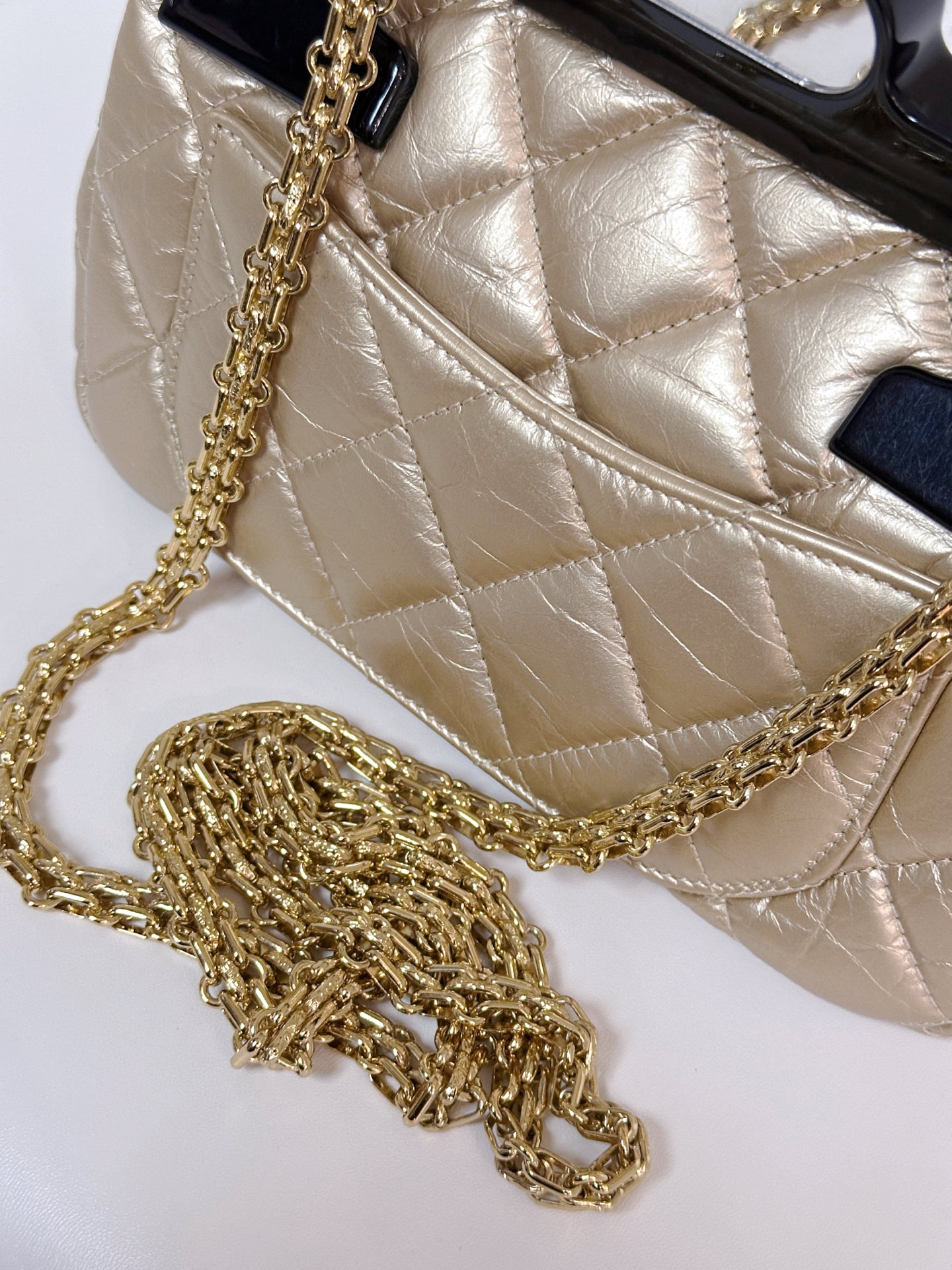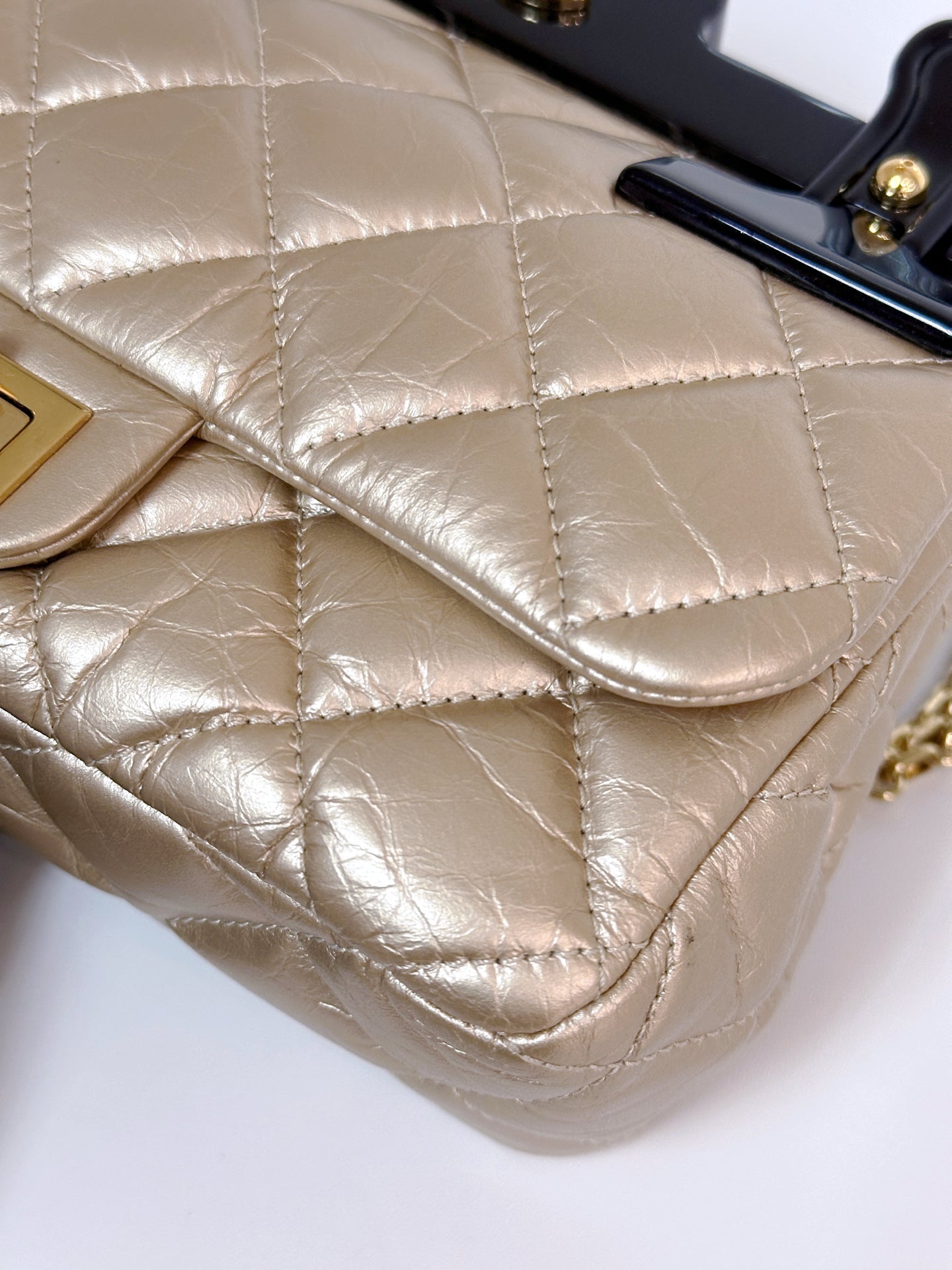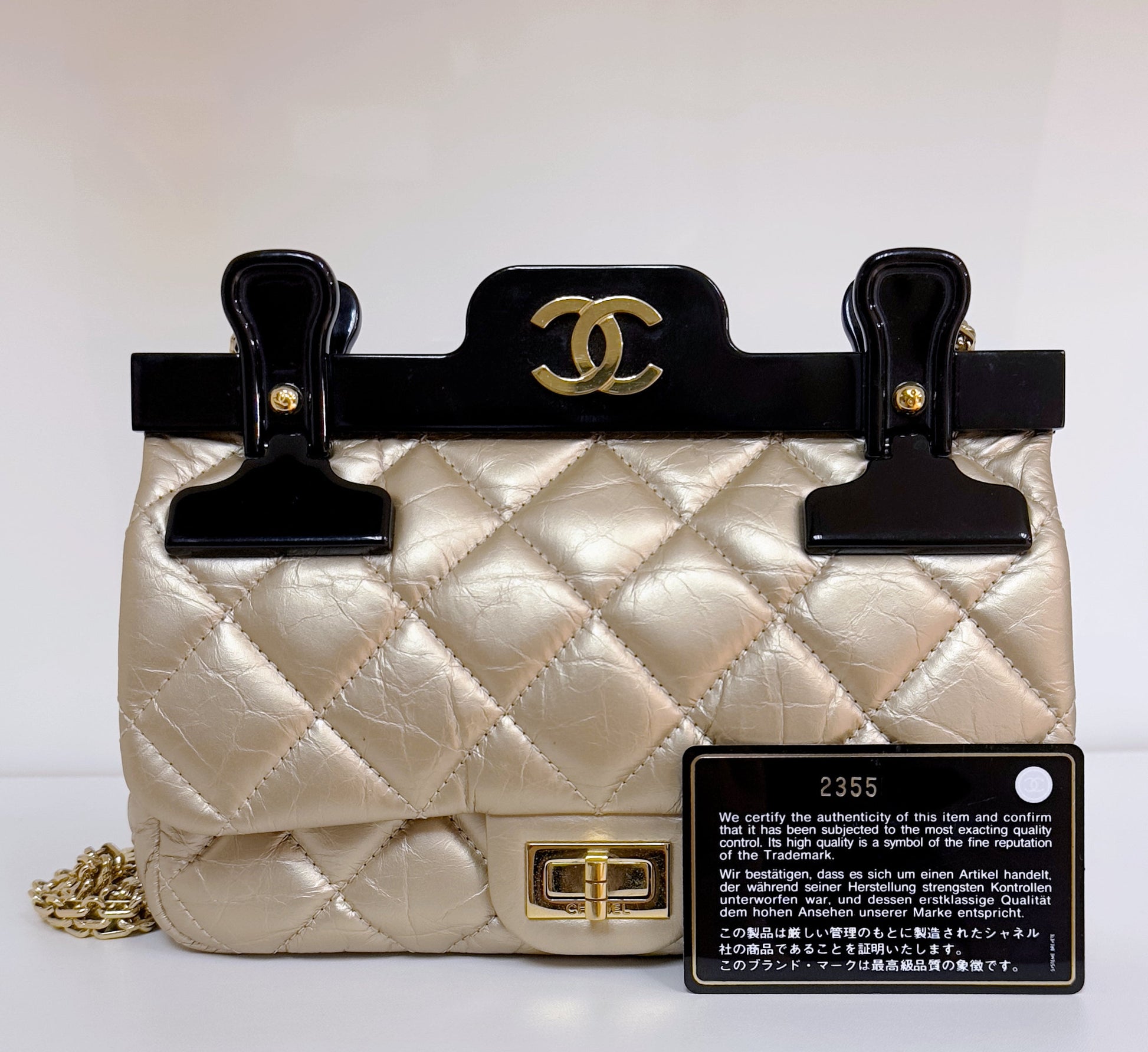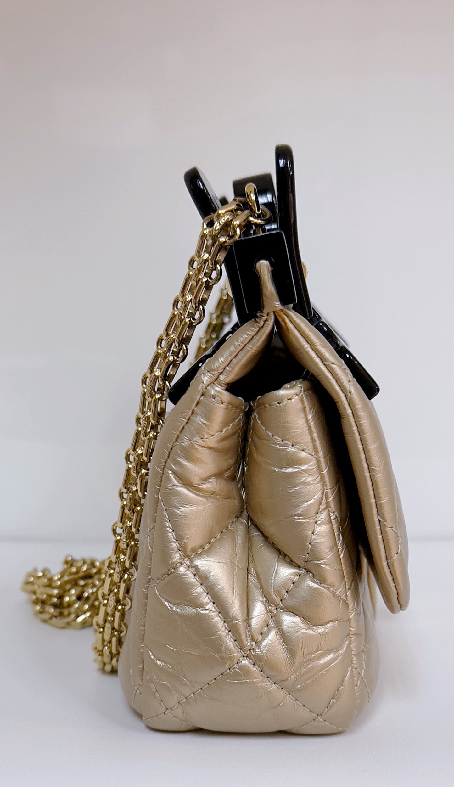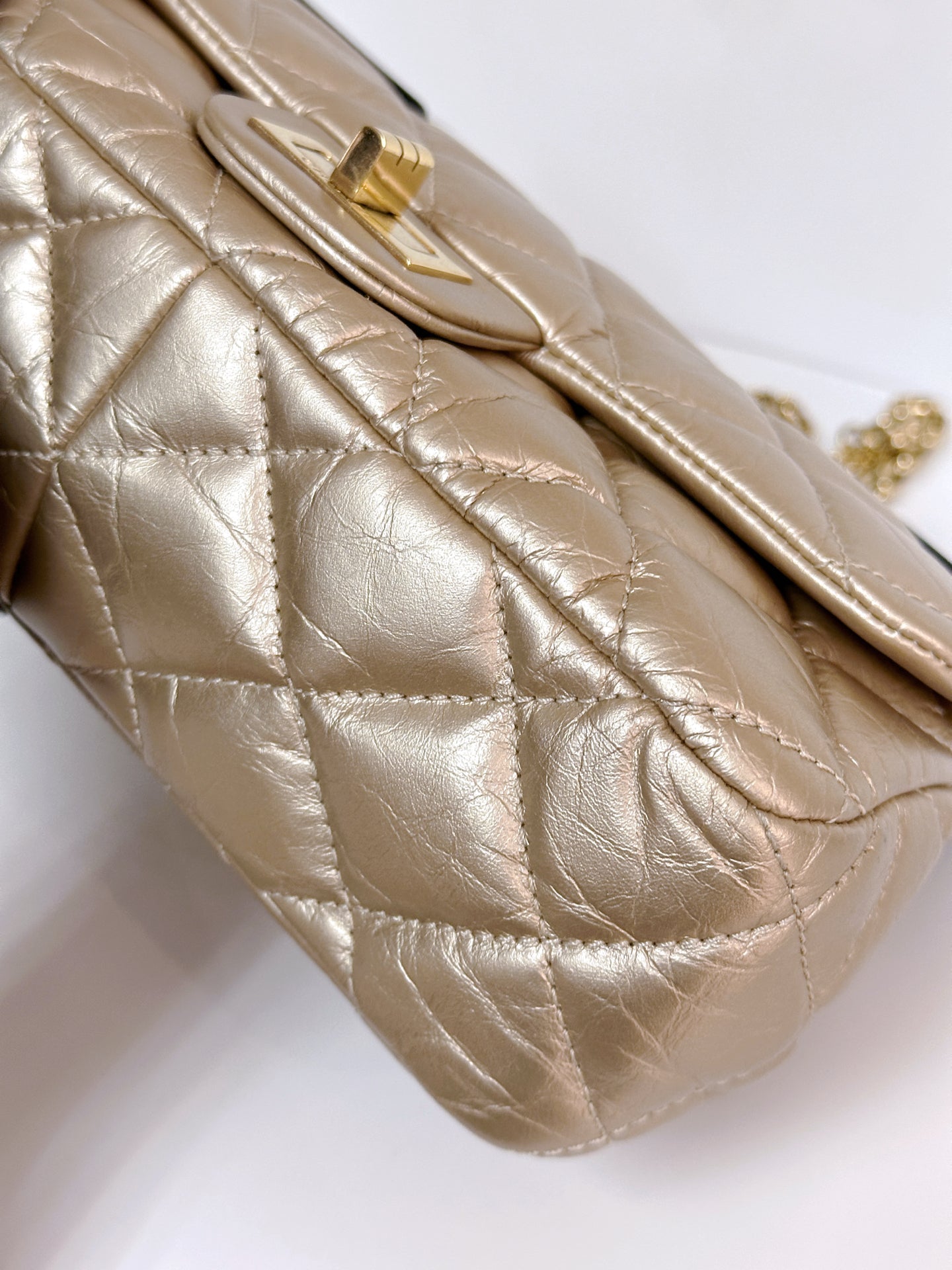 Chanel Aged Calfskin Quilted 2.55 Reissue Mini Hanger Flap Gold 2355 holo card