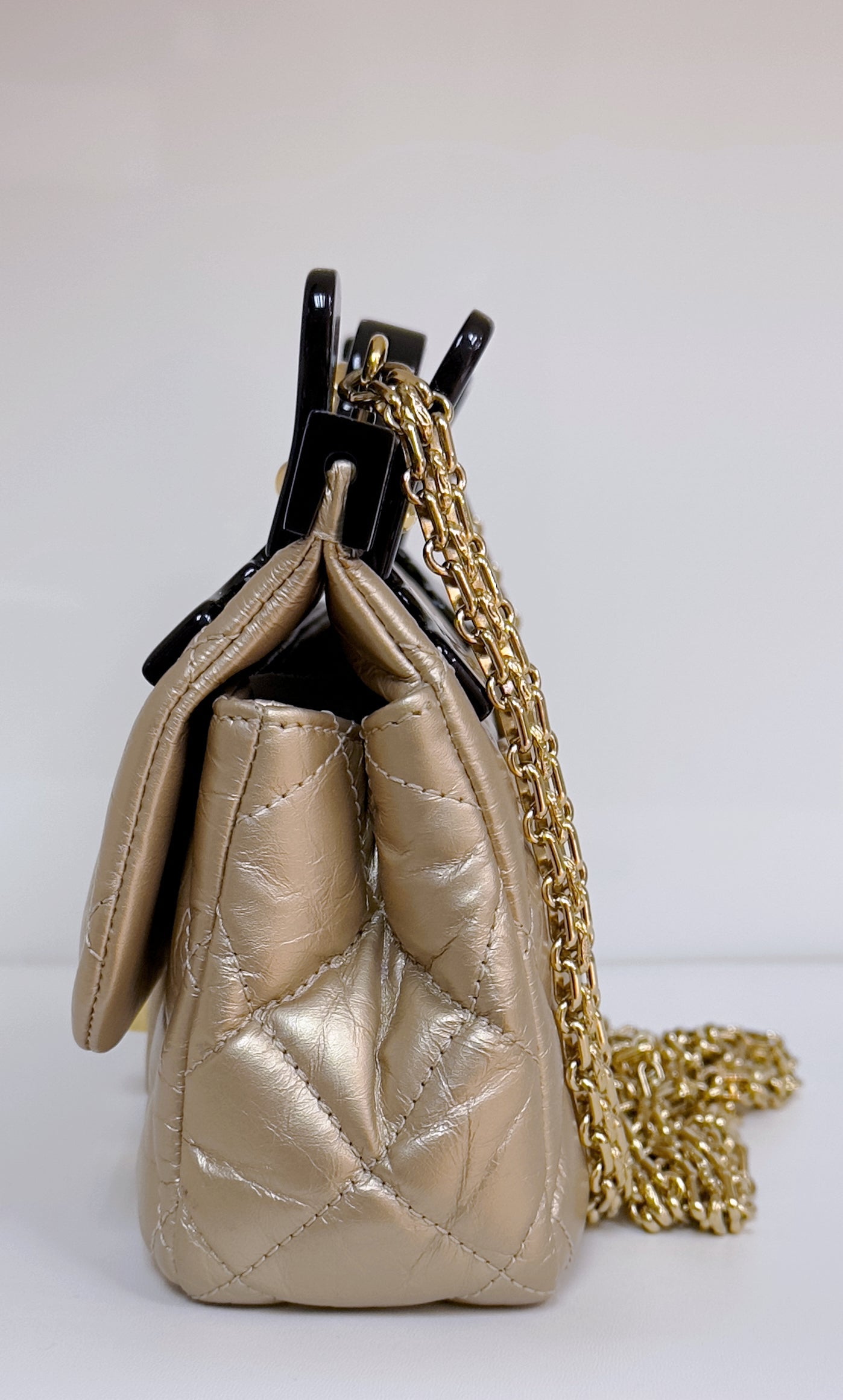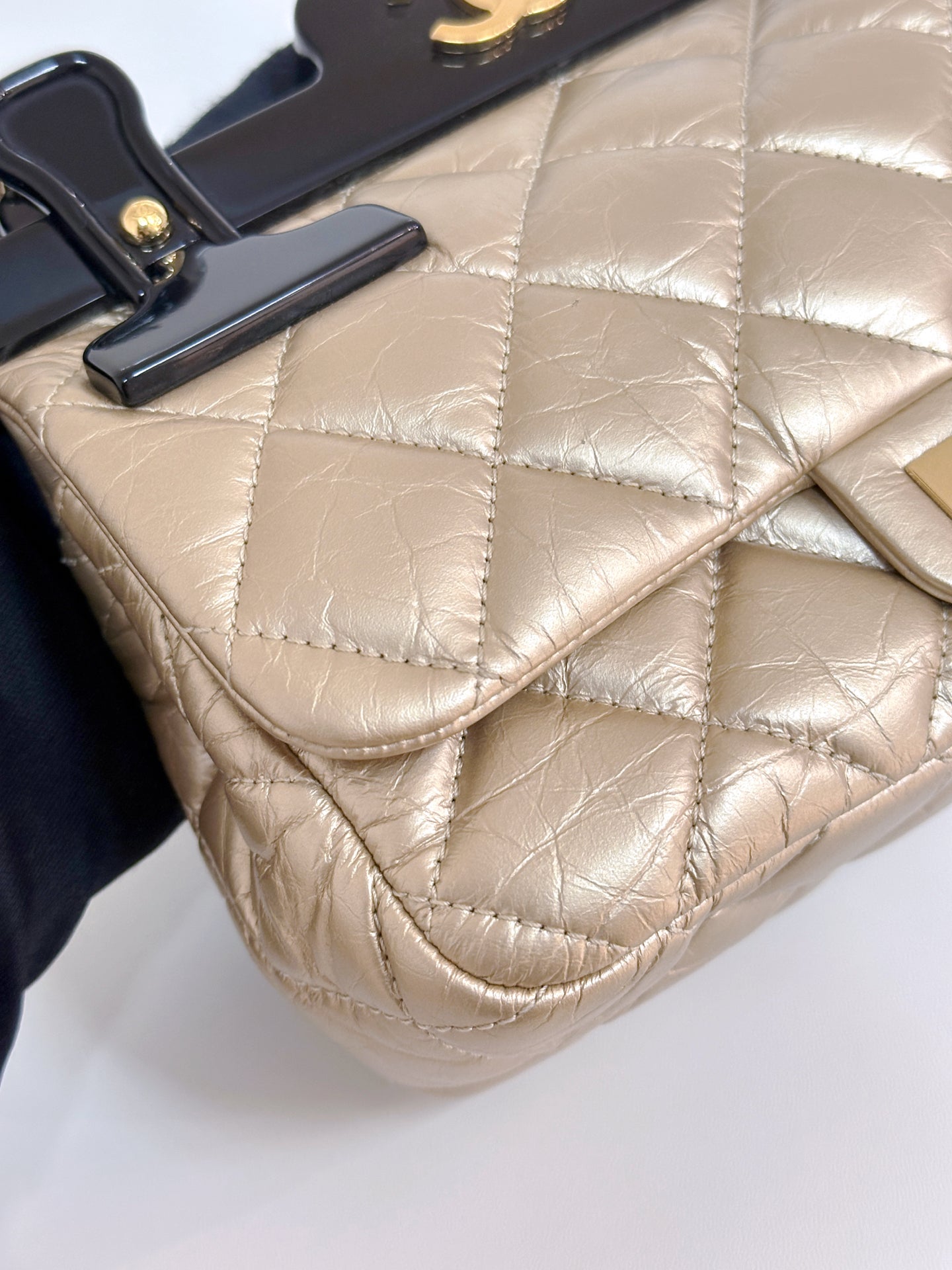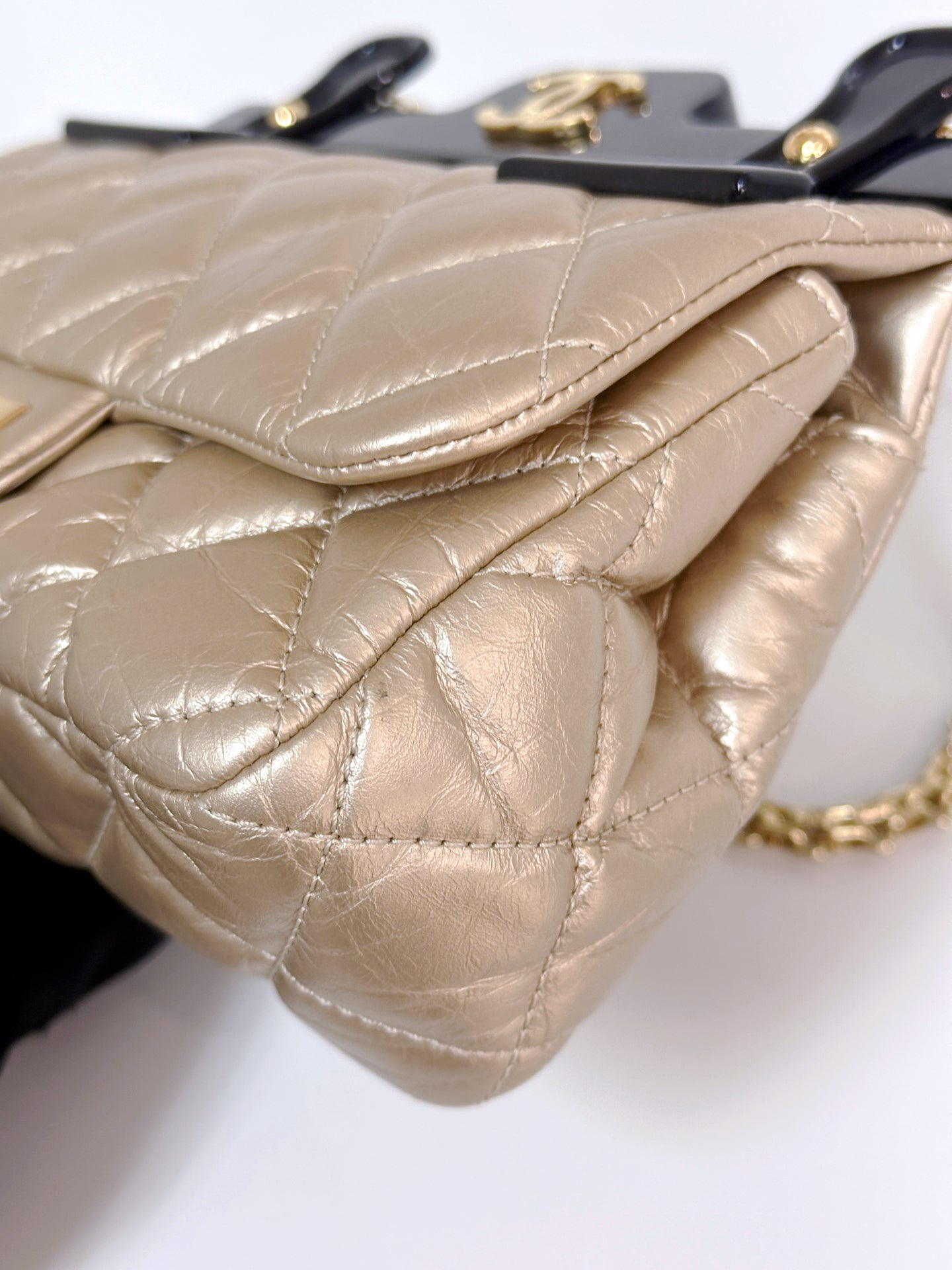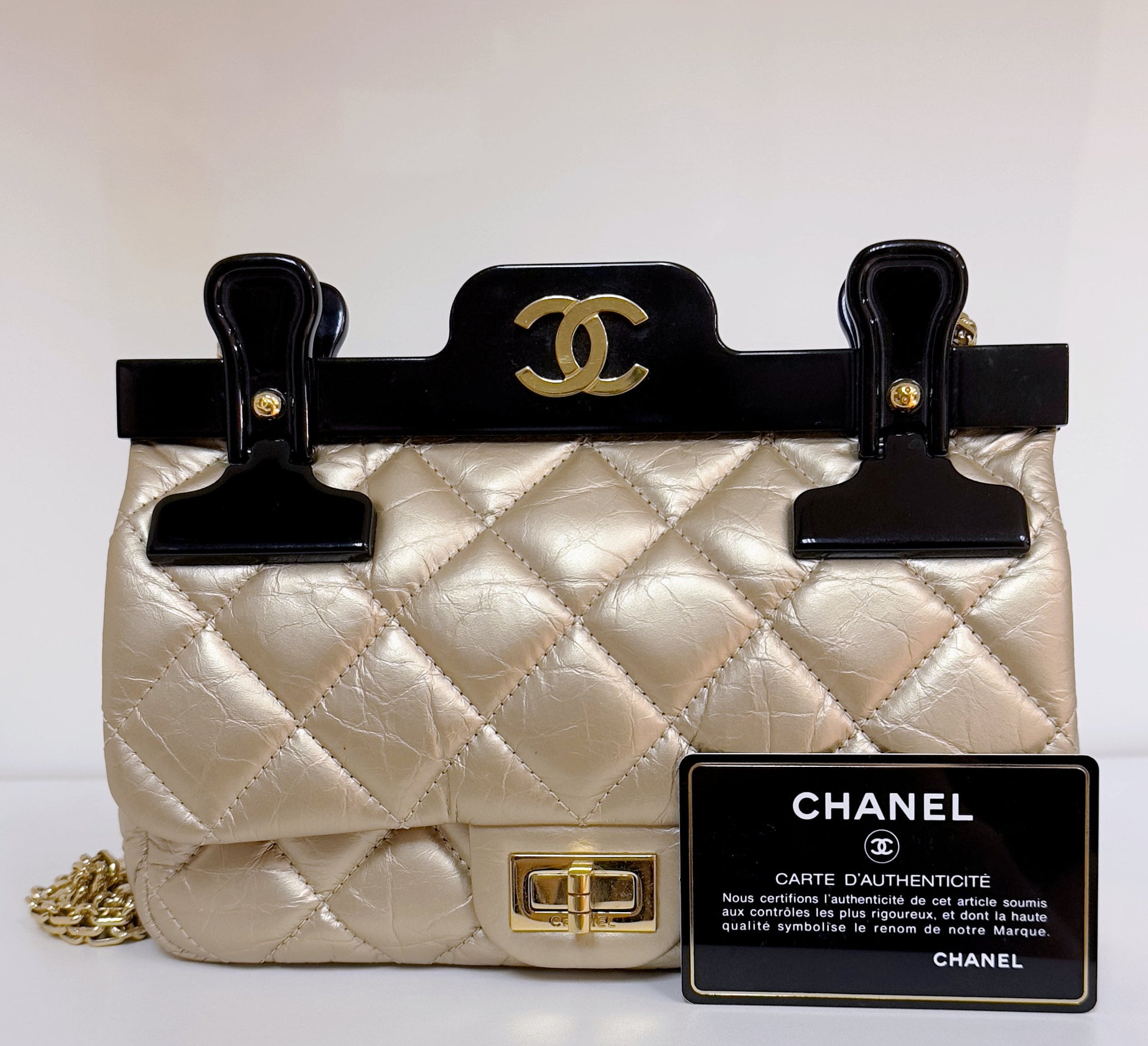 Chanel Aged Calfskin Quilted 2.55 Reissue Mini Hanger Flap Gold 2355 holo card